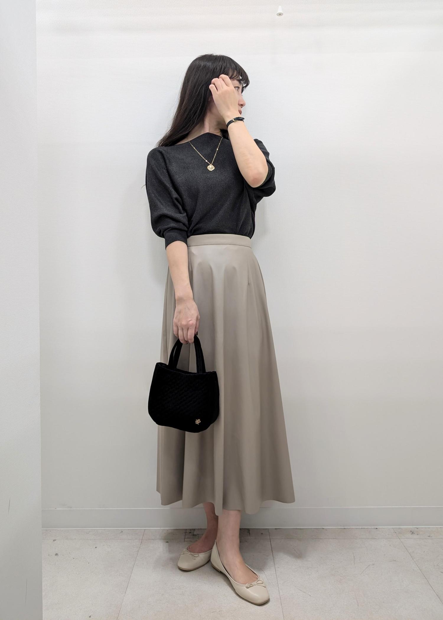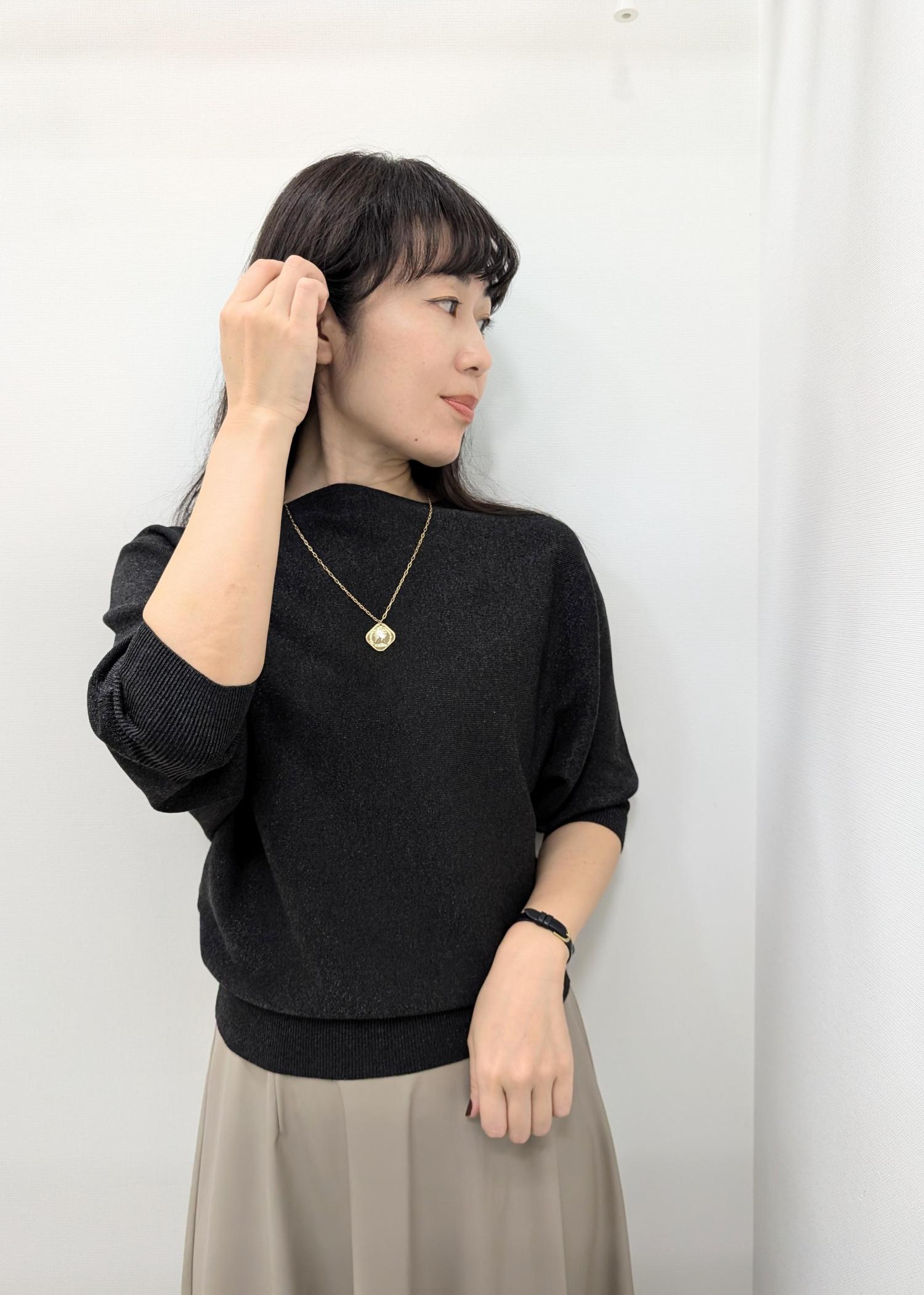 ROPÉ PICNICラメ混ドルマン7分袖ニットチャコール / F¥3,993レビュードルマンスリーブなので、肩、胸、身幅と全体的にゆったりめで着やすいです!