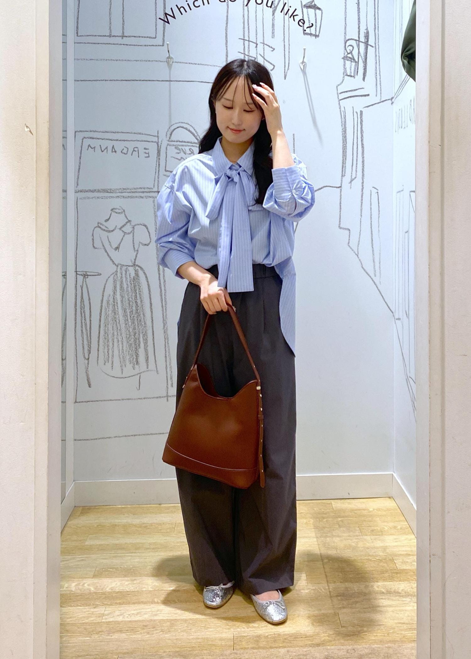 リボンシャツコーデ