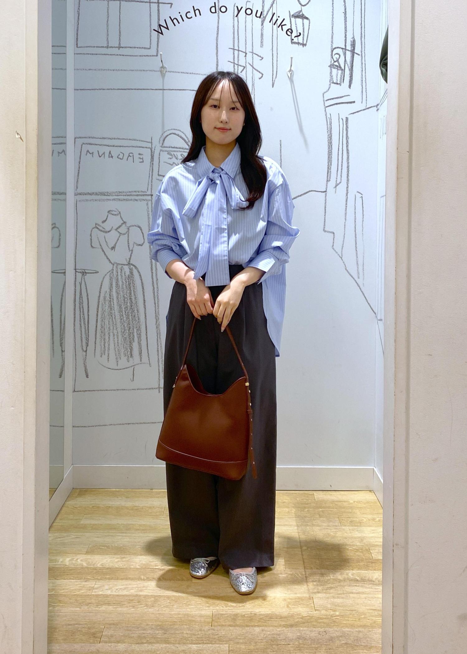 大きなリボンが特徴的なシャツはコーデを一気に華やかにしてしてくれます◎