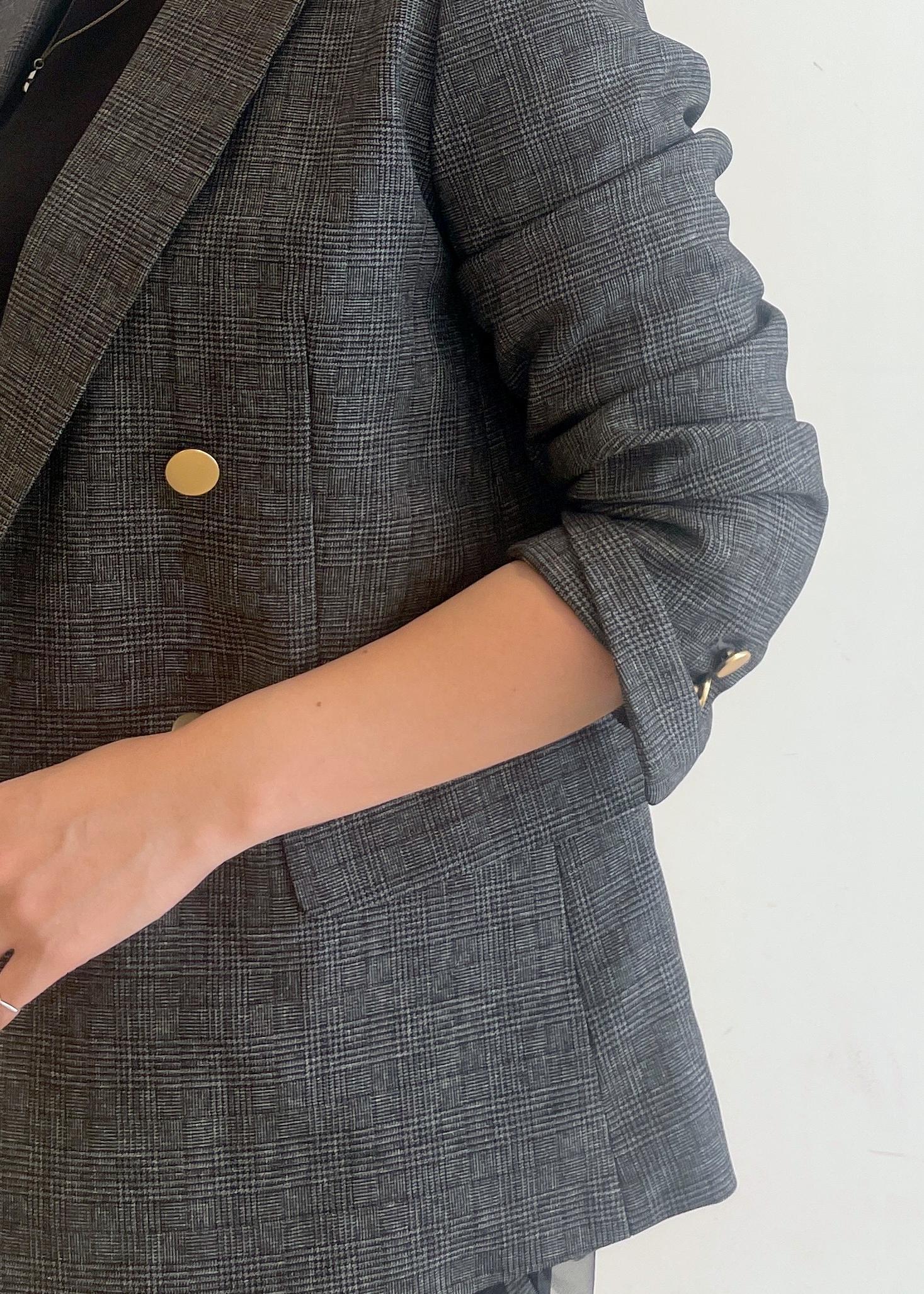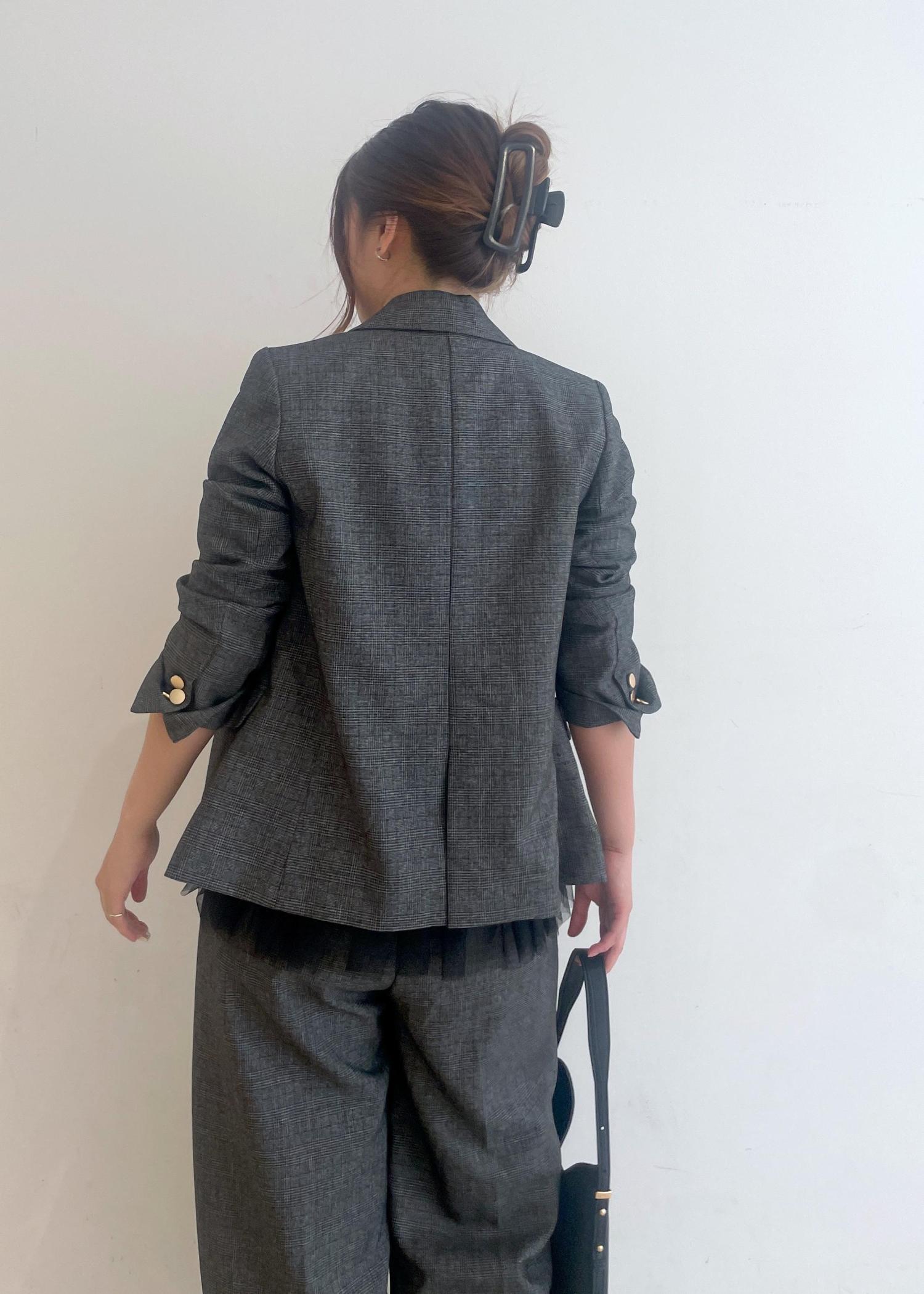 ジャケットから少しチュールを見せたかったので、小柄さんサイズのジャケットを合わせたのがポイントです◎
