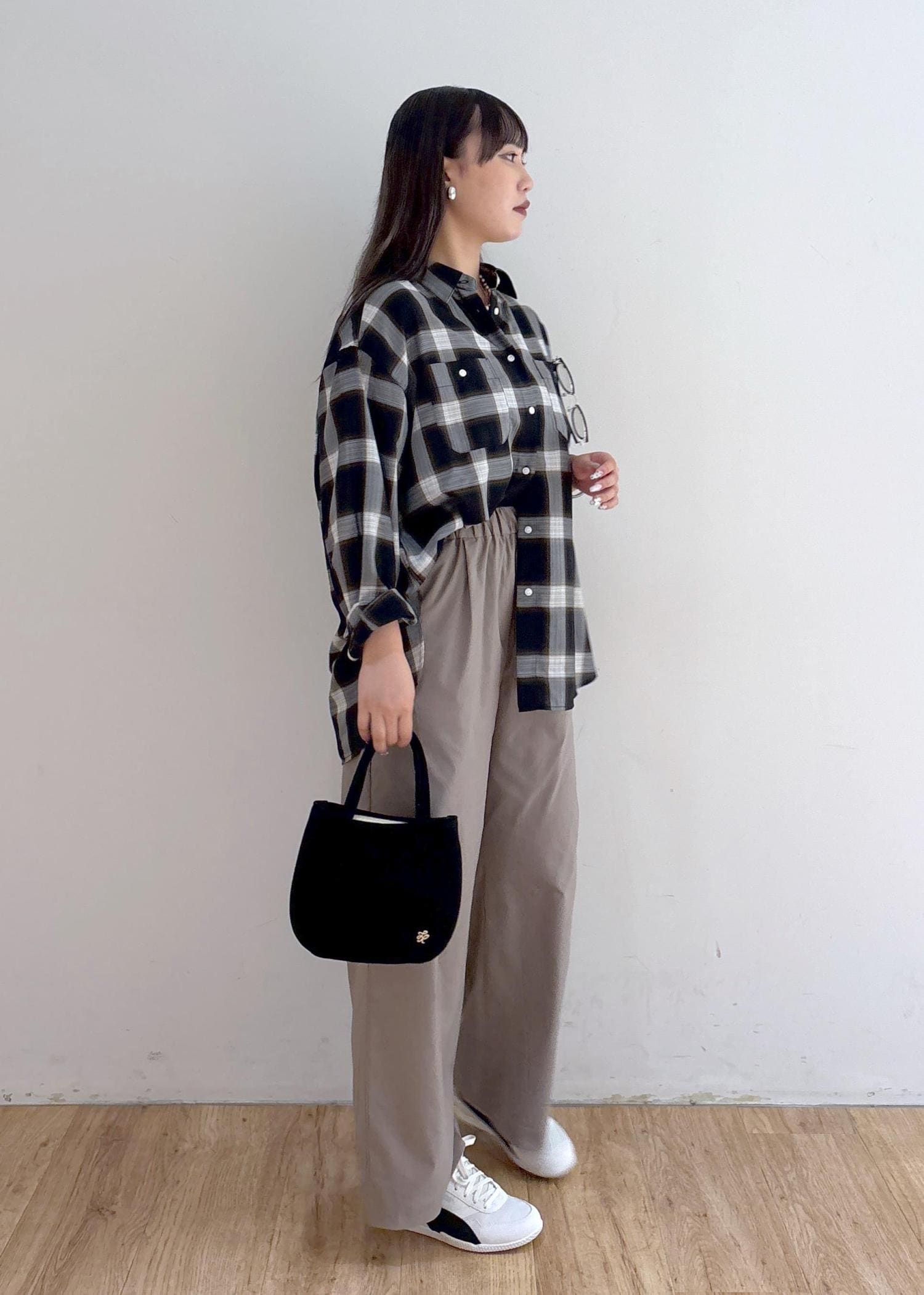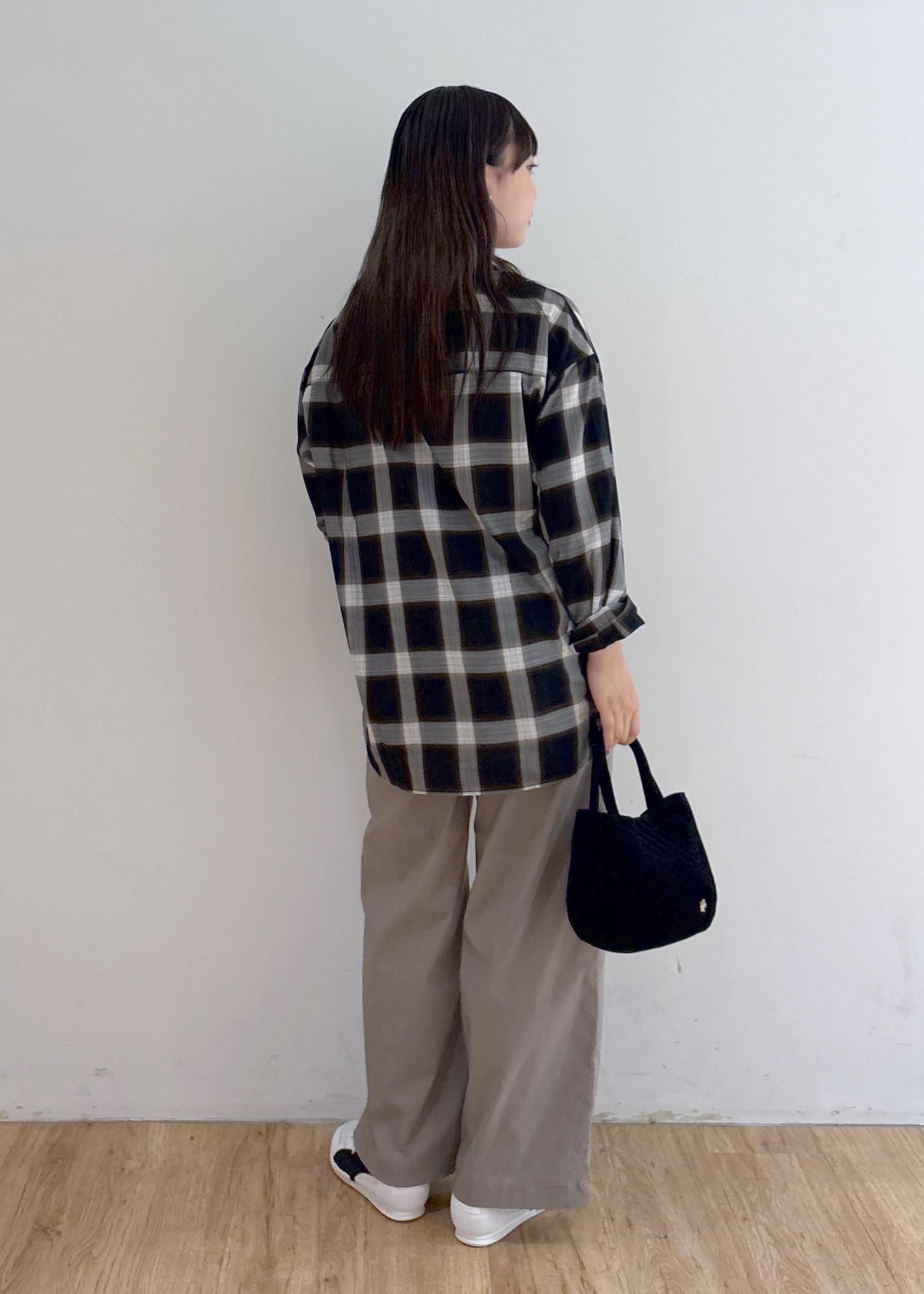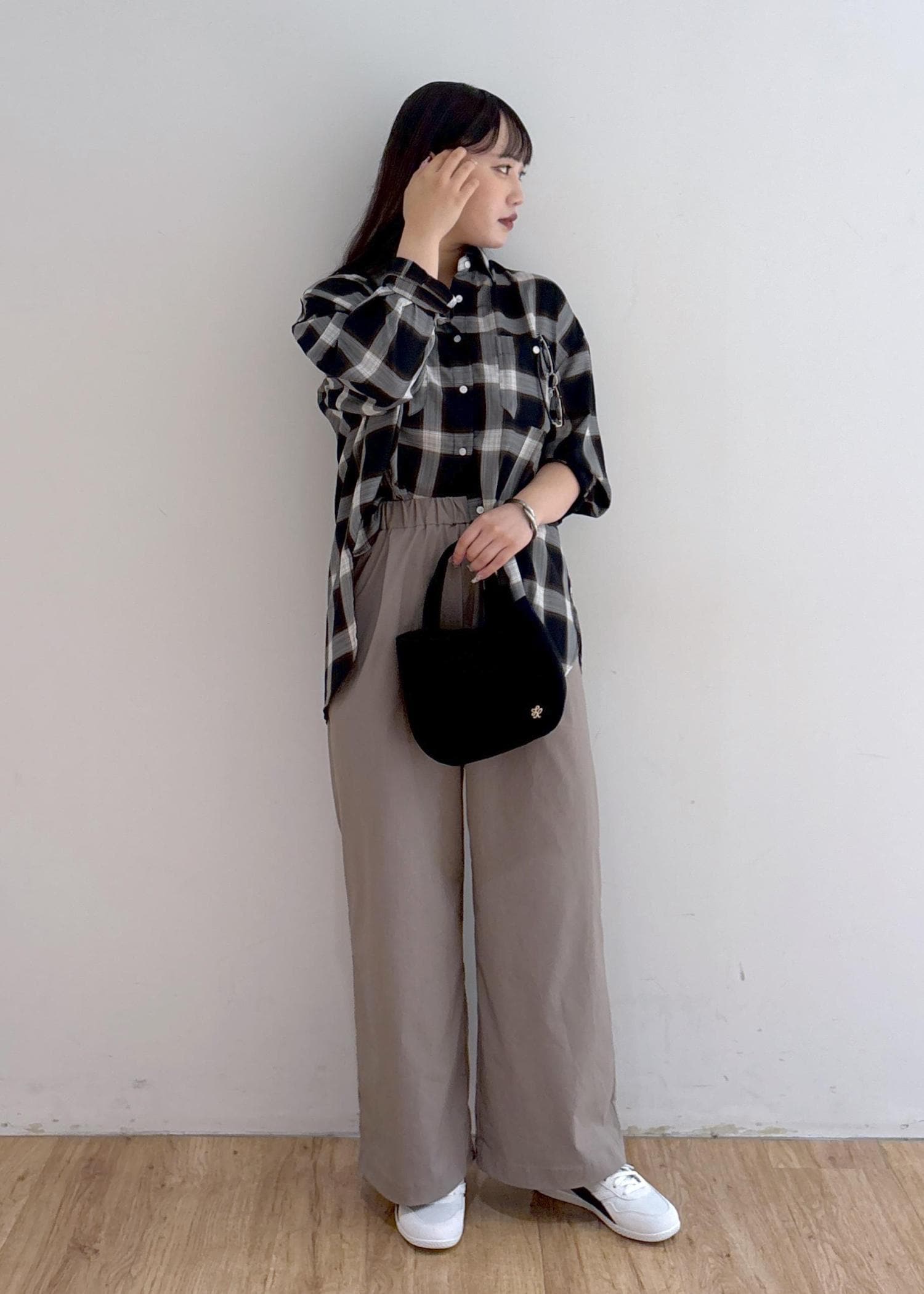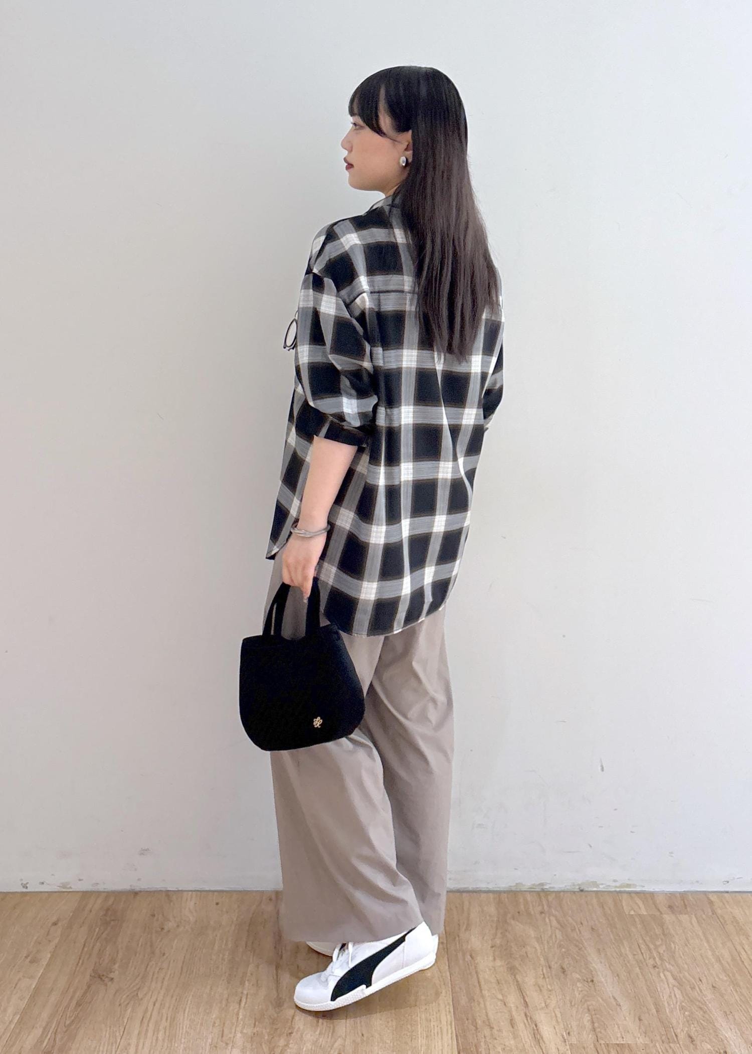 秋らしいチェックのシャツをメインに、ラクに着用しながら今っぽさもあるスタイリングにしました! 履きやすいパンツとアレンジしやすいシャツで秋服を楽しみましょう♪