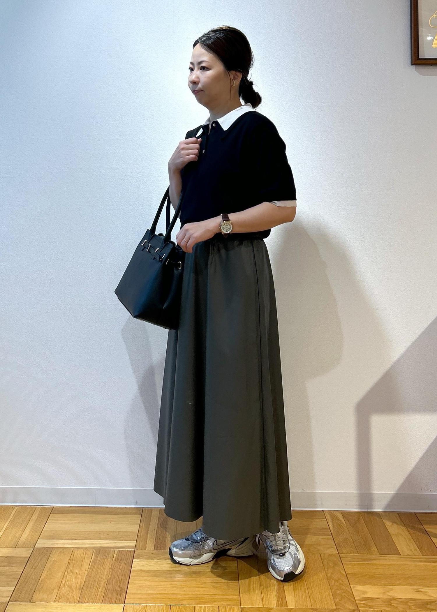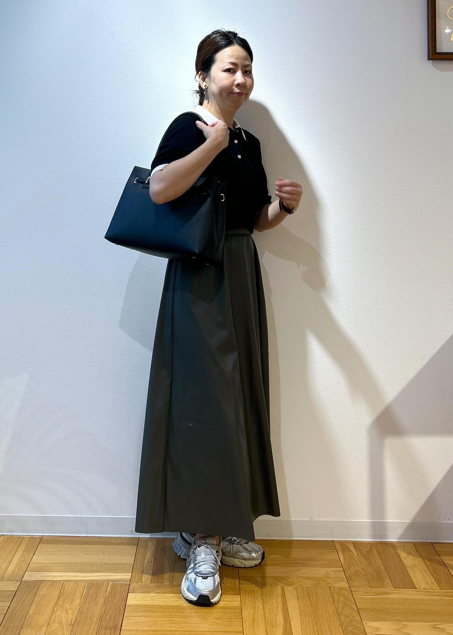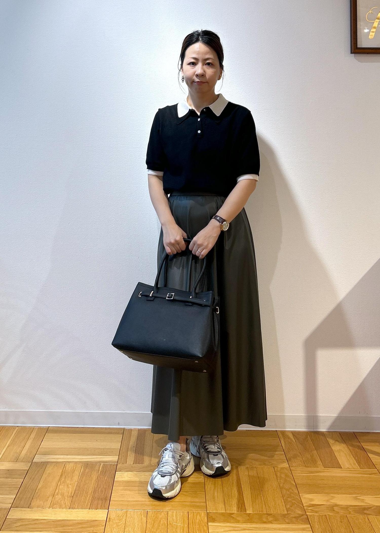 キレイめコーデにスニーカーでカジュアルダウンのミックスにしたコーデです。モノトーンなので、オフィスカジュアルでも使えるかなと思いましてコーディネートしてみました。スニーカーがダメな時は、スエードパンプスなどにして頂くといいと思います。