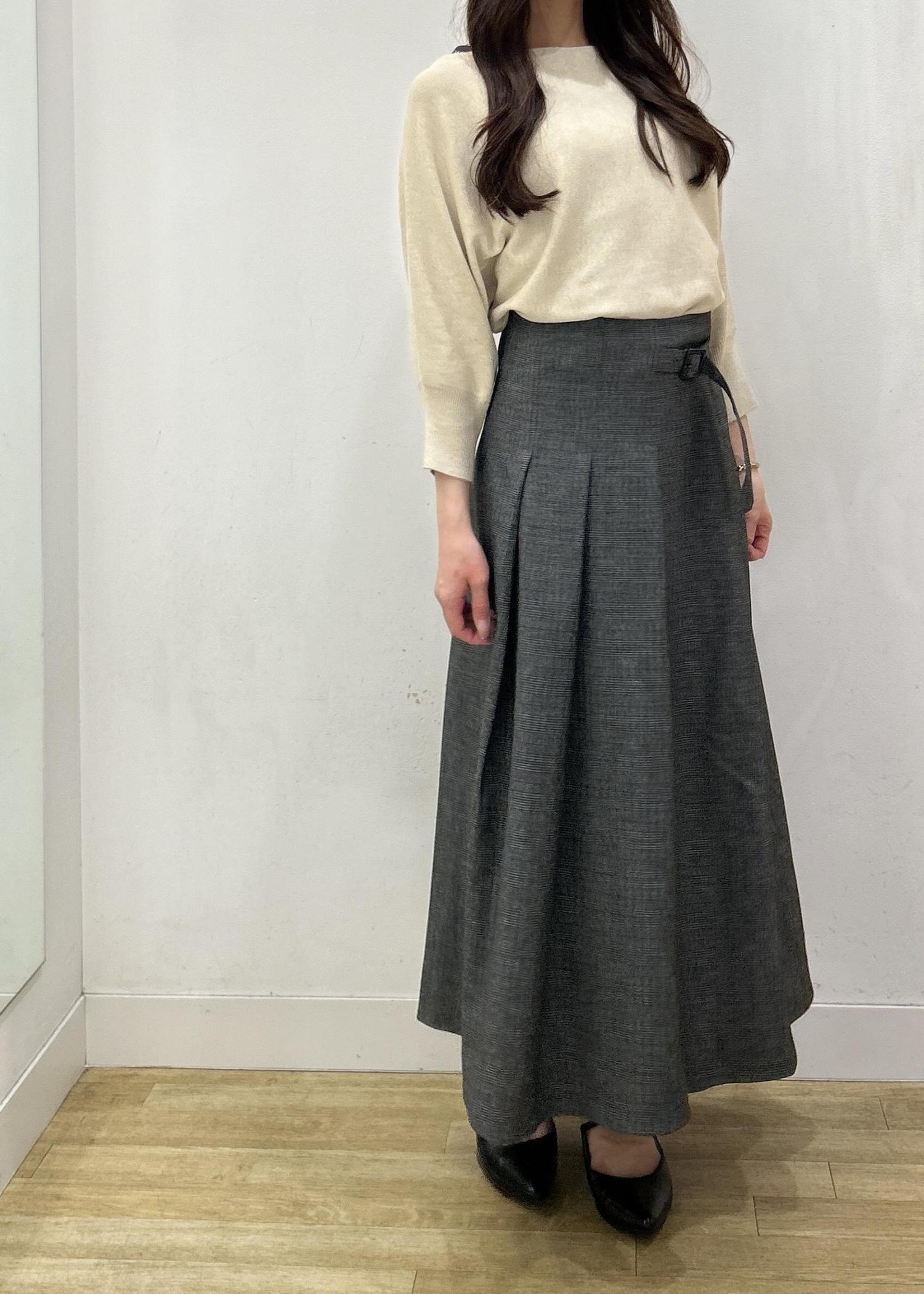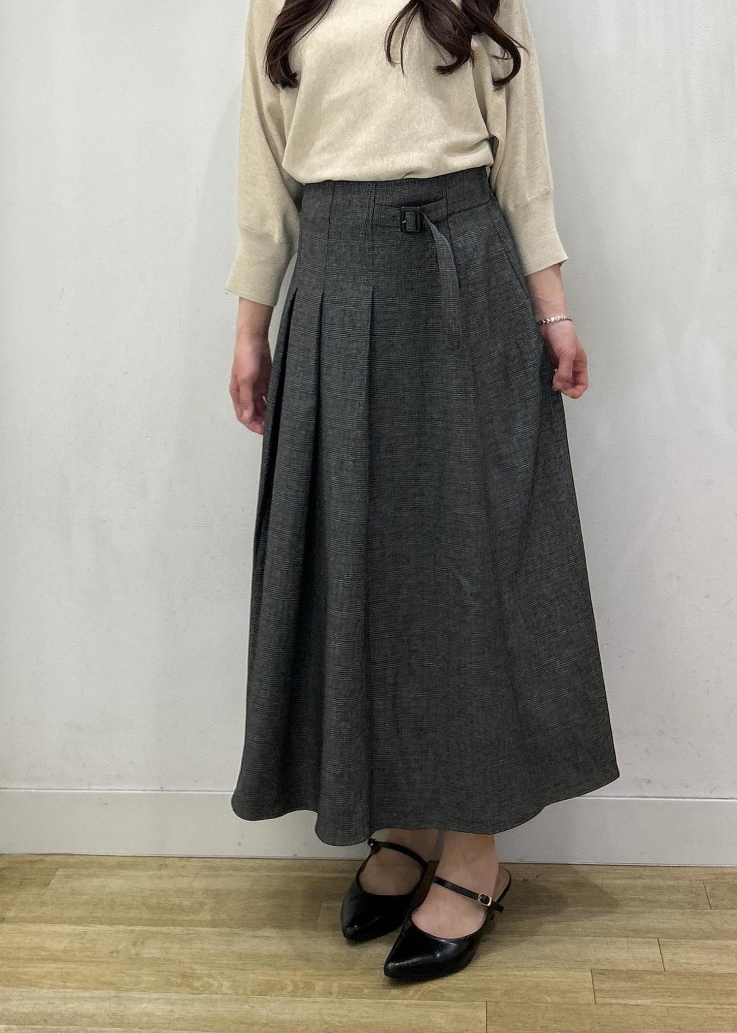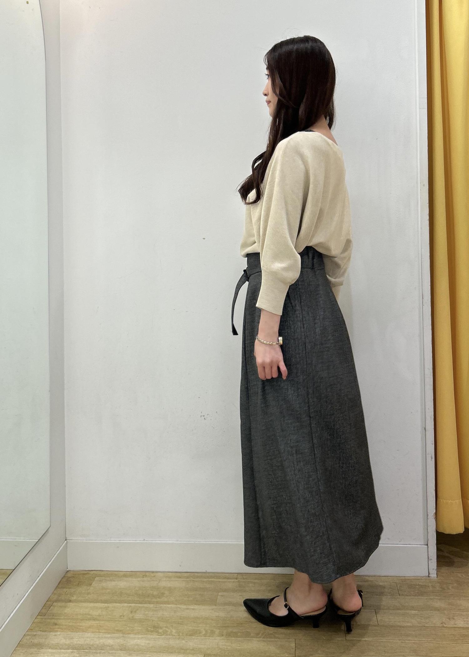 ウエストはフィット感ありロング丈で広がりすぎないすっきりシルエット。