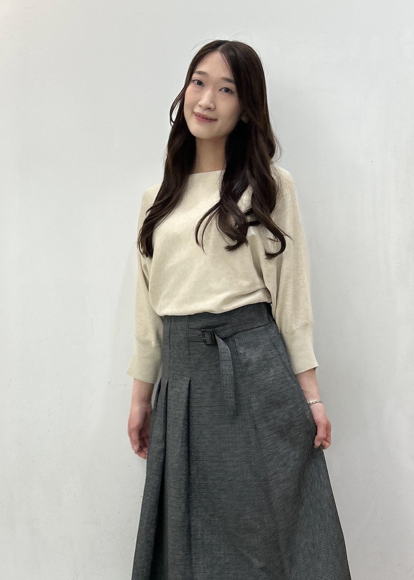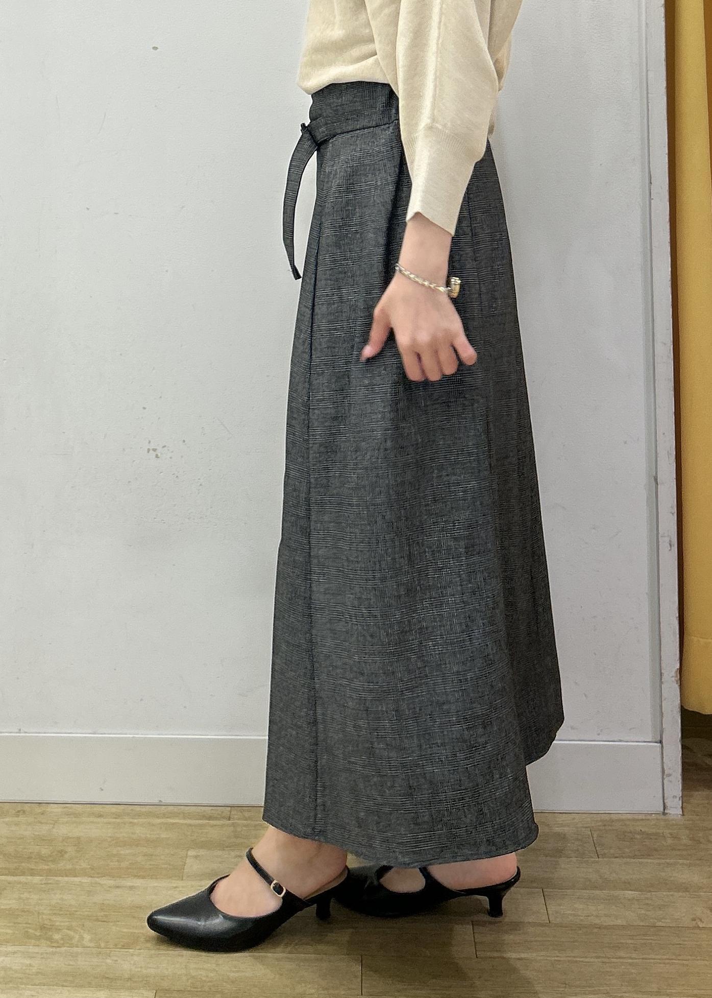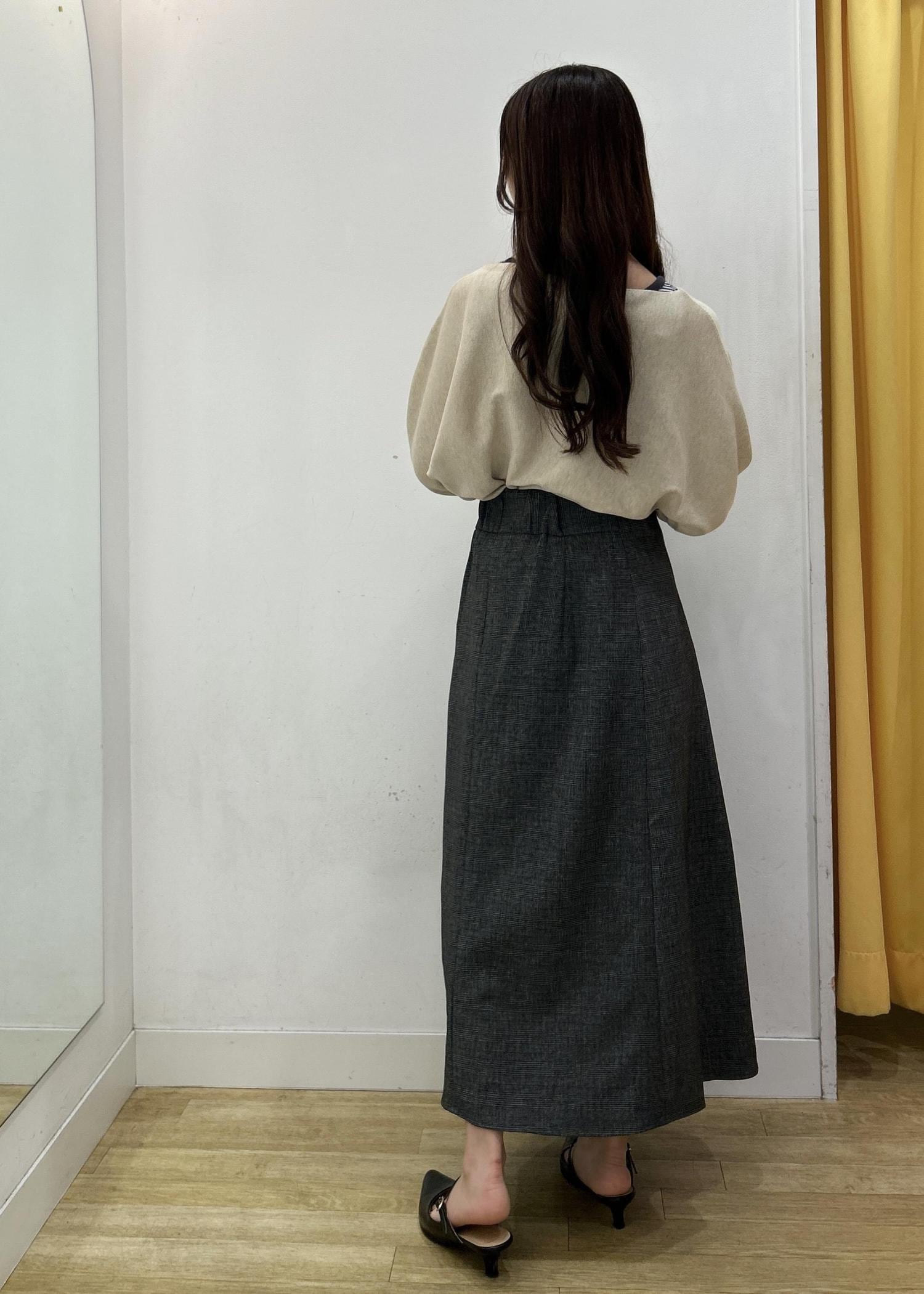 ウエストはフィット感ありロング丈で広がりすぎないすっきりシルエット。