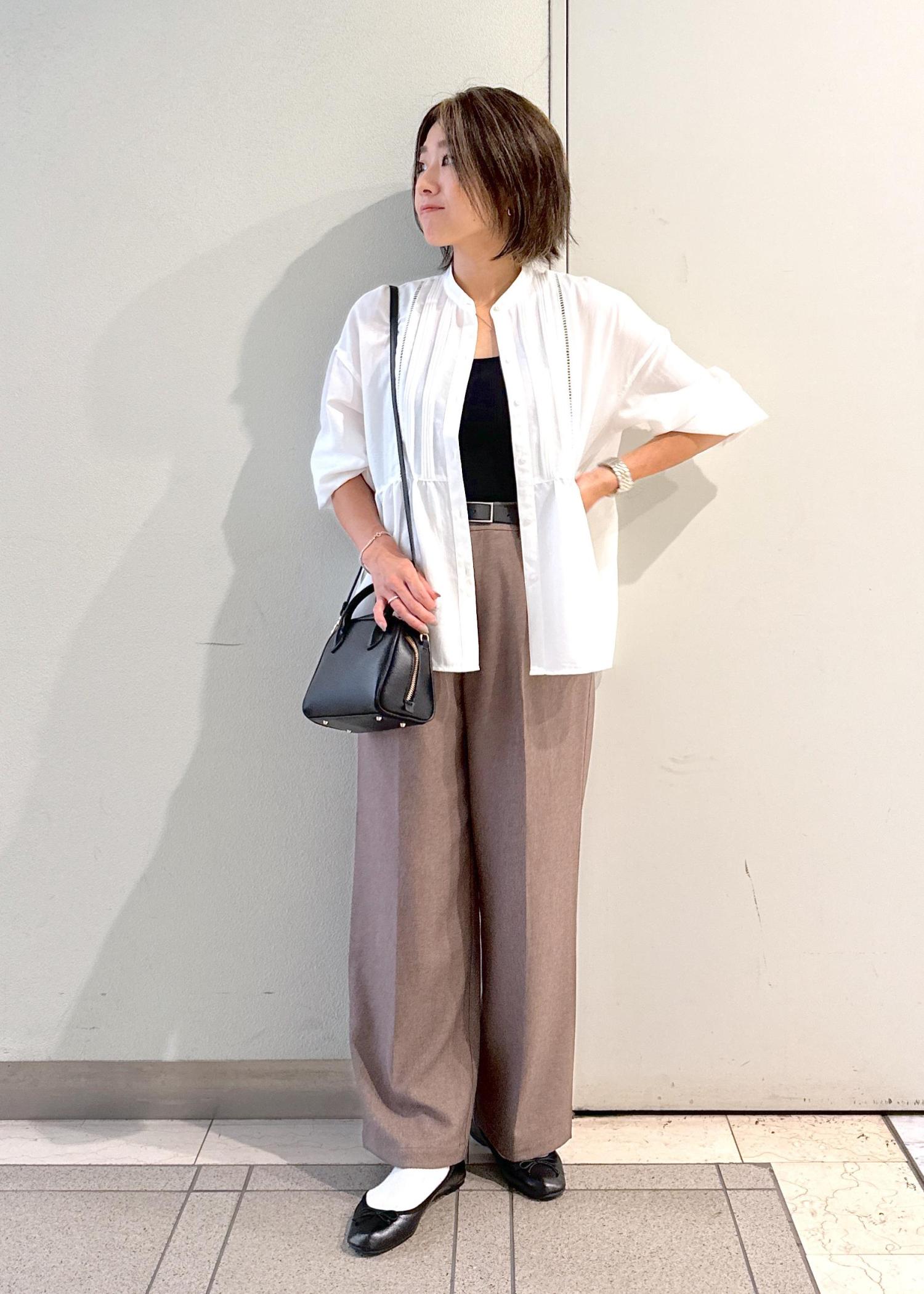シャツを羽織りとして取り入れた初秋コーディネートです。