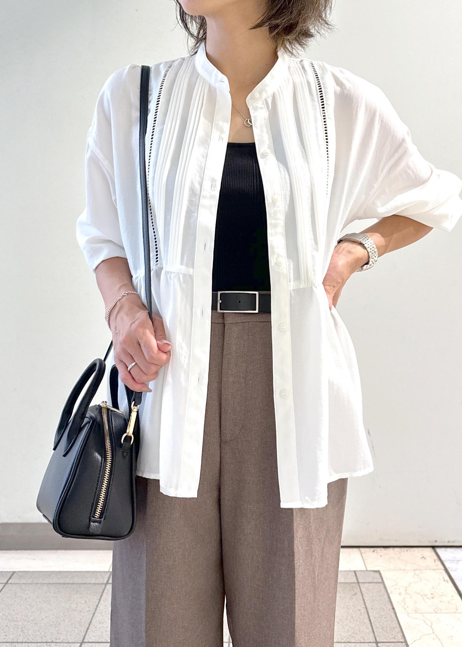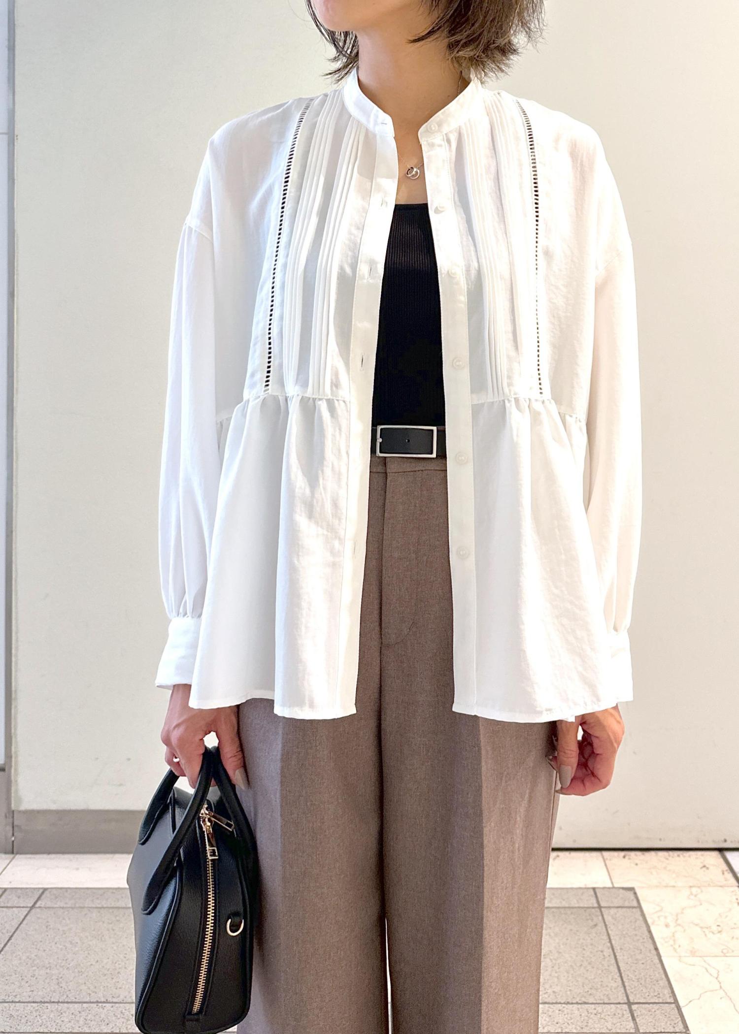 【UVケア・防シワ】羽織れるピンタックデザインペプラムシャツ