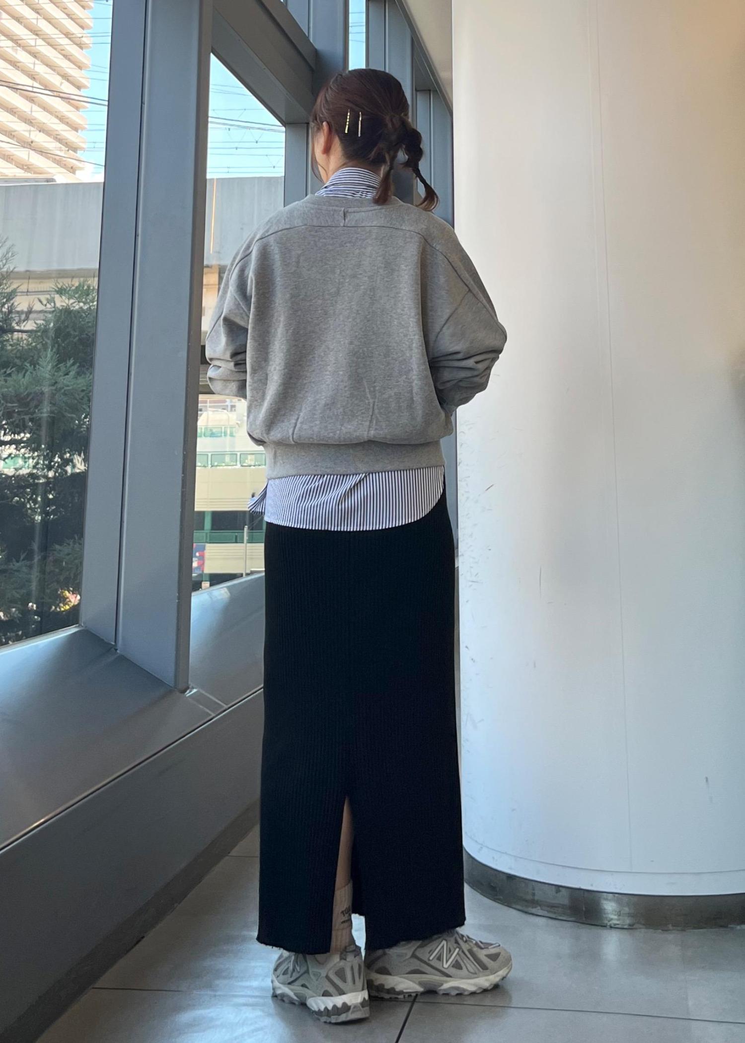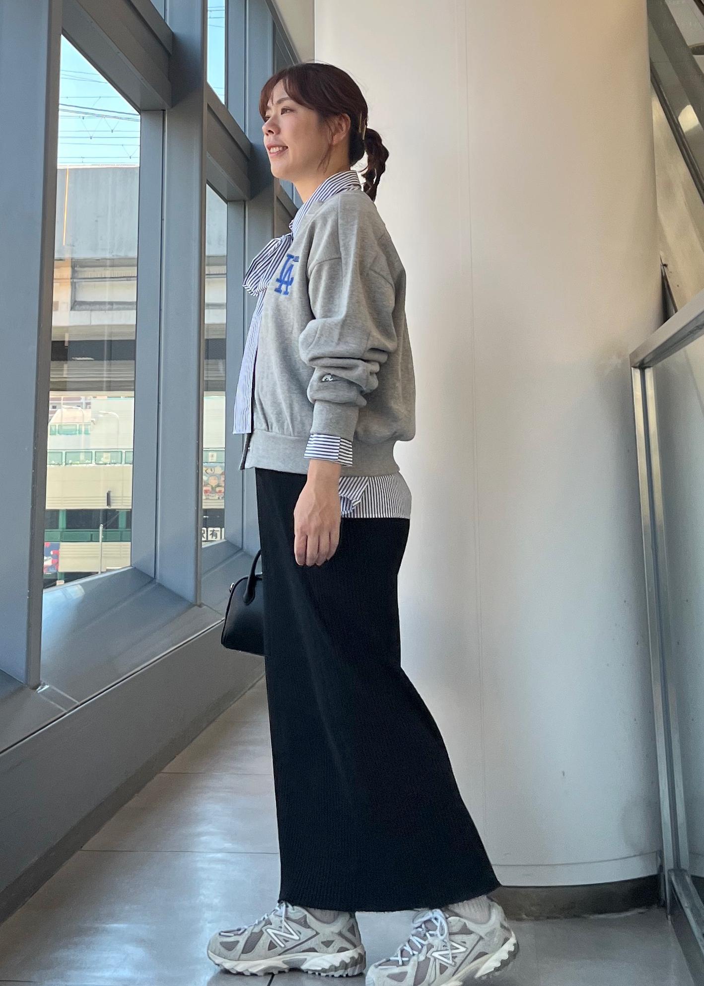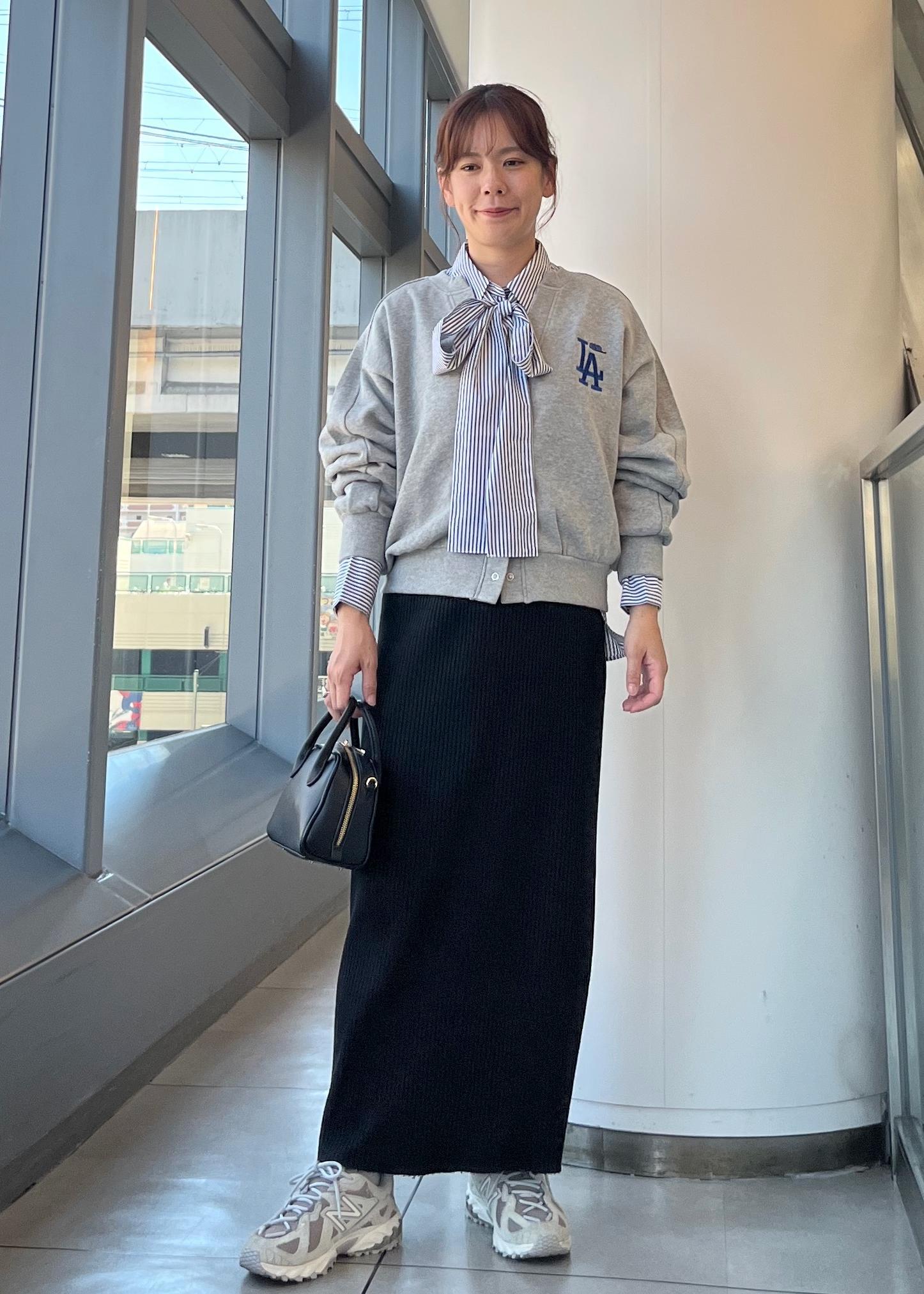 ボトムにアイラインスカートを合わせて大人な印象のスタイルです。