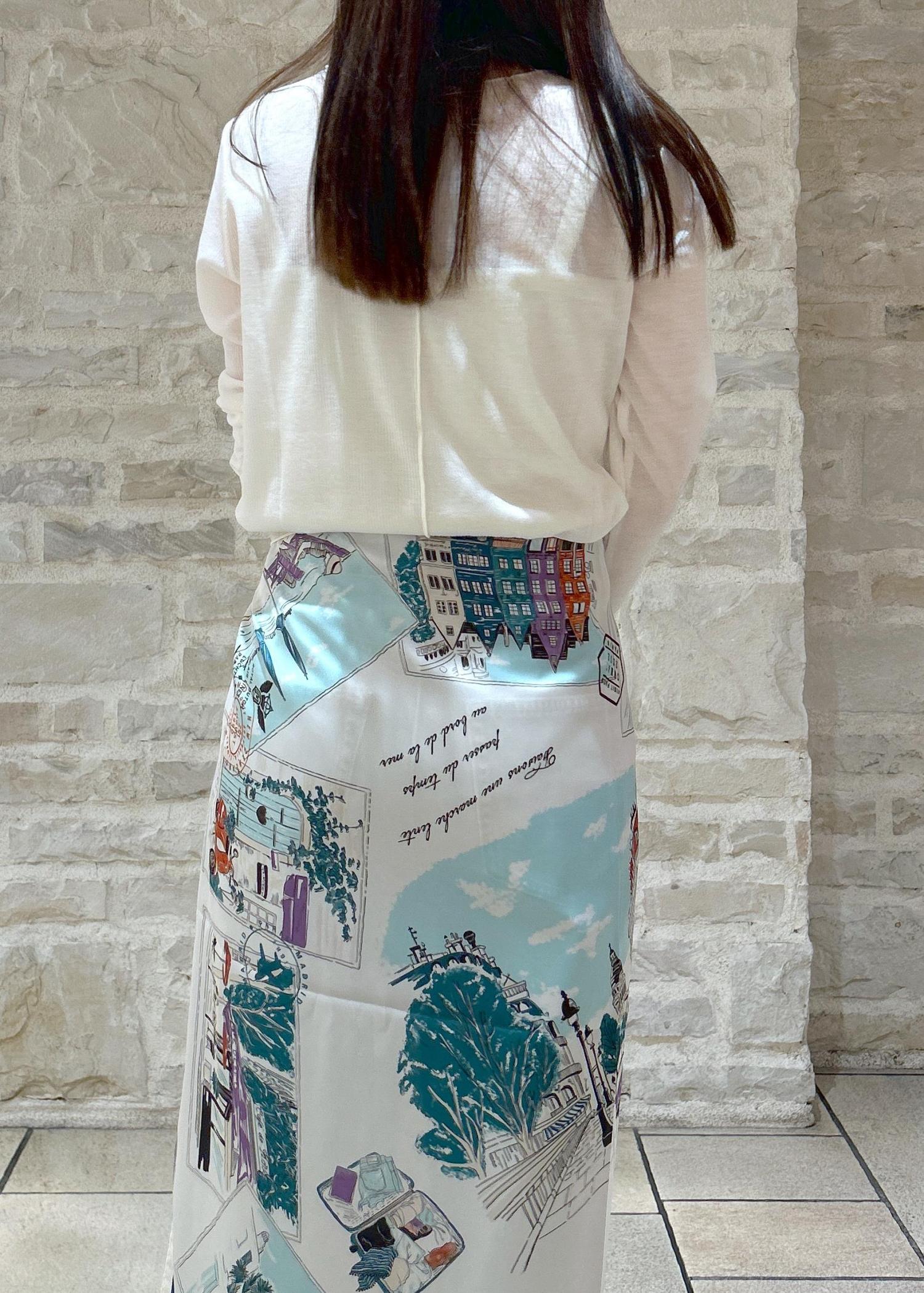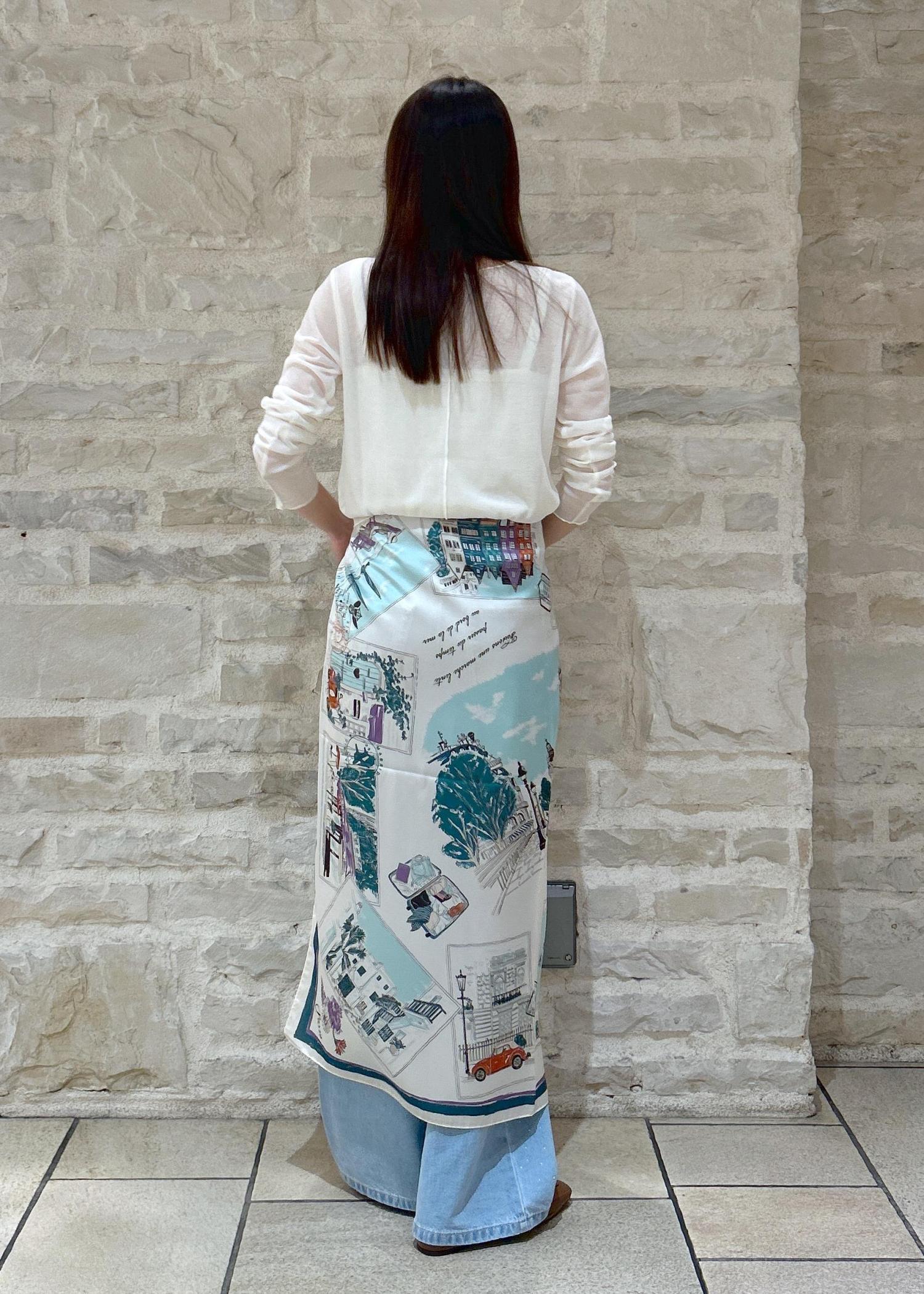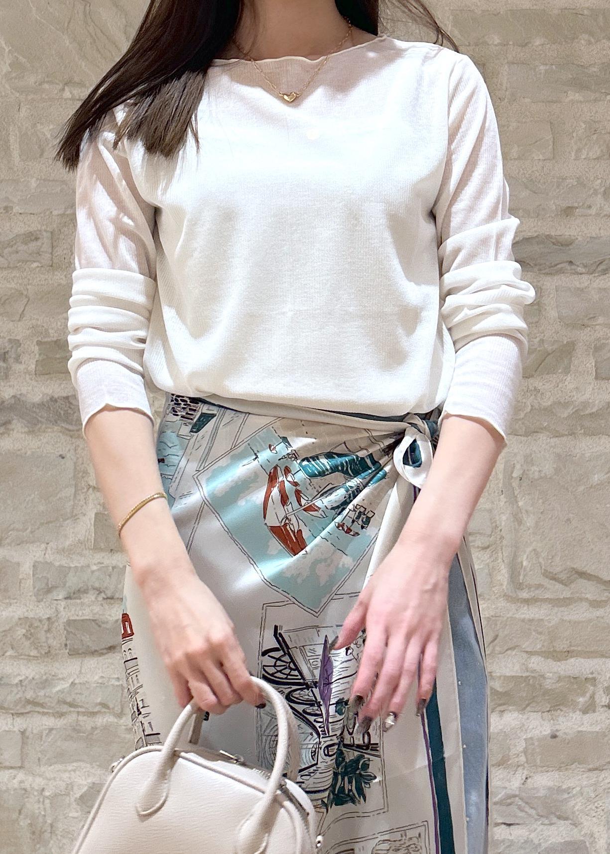大判スカーフで腰に巻くのも今年らしいトレンドスタイルです。