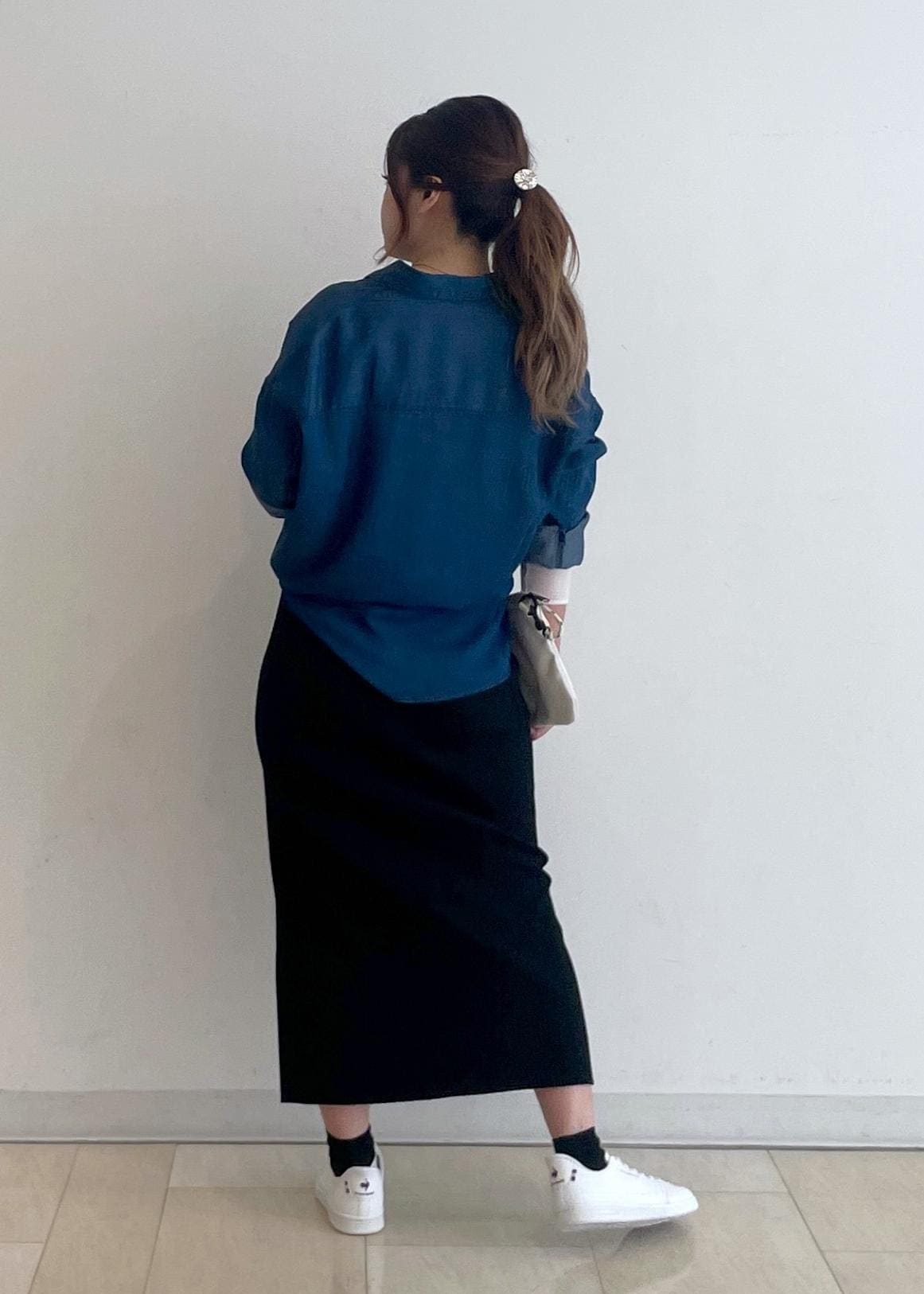やや身体のラインが出るので腰周り気になる方はサイズを上げるか、長めのトップス合わせがオススメです◎