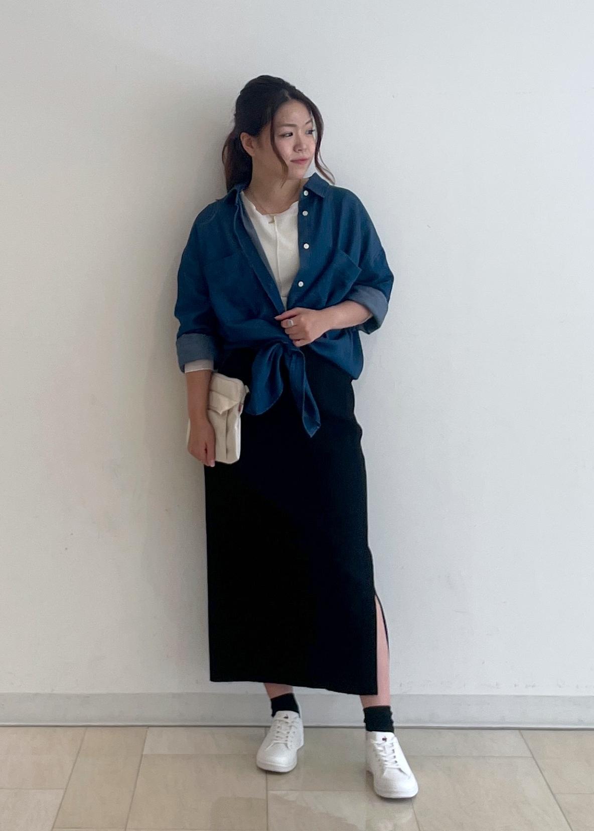 デニムシャツを合わせた大人のカジュアルコーデです!