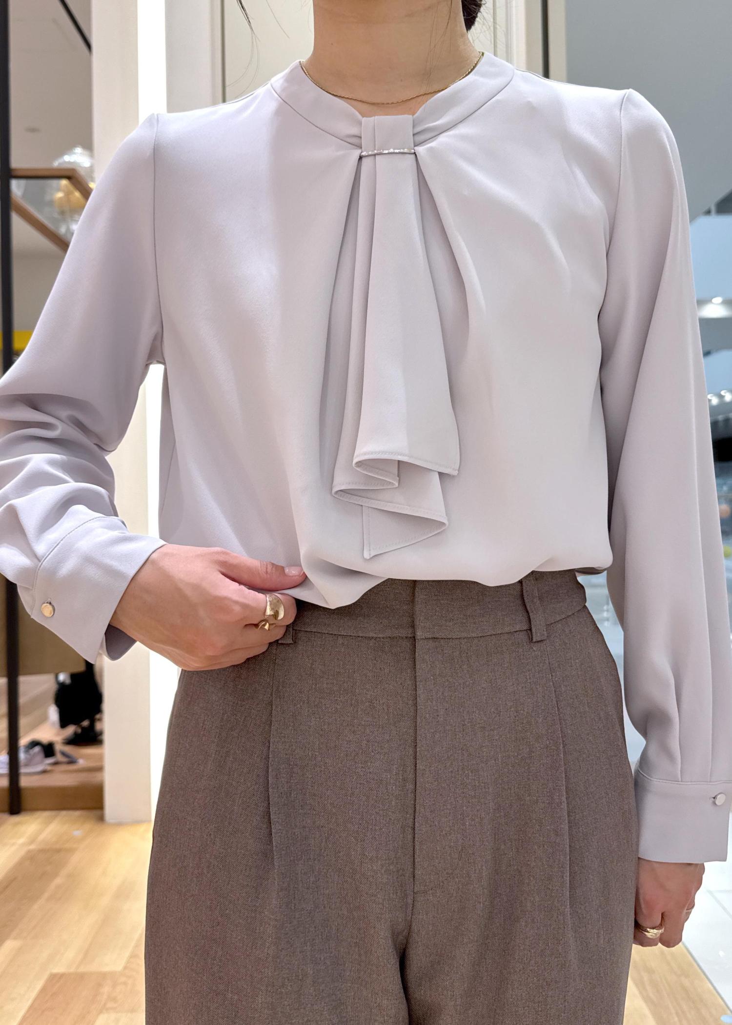 ROPÉ PICNIC【WEB限定カラー・サイズ】メタルパーツフロントフリルタイブラウス/通勤対応ピンク / S¥4,499レビュー首元が開きすぎず、着回しのしやすいデザインです。