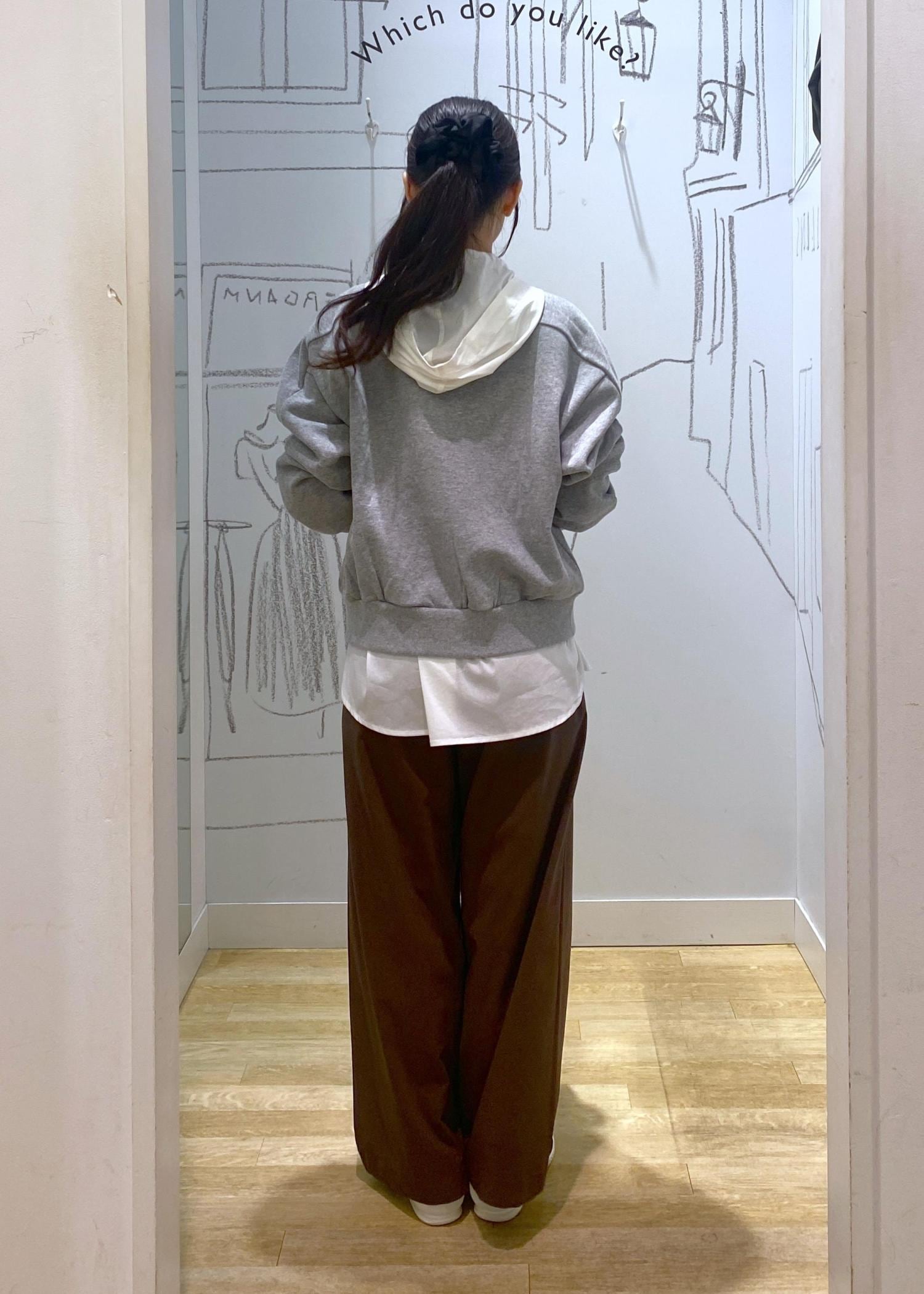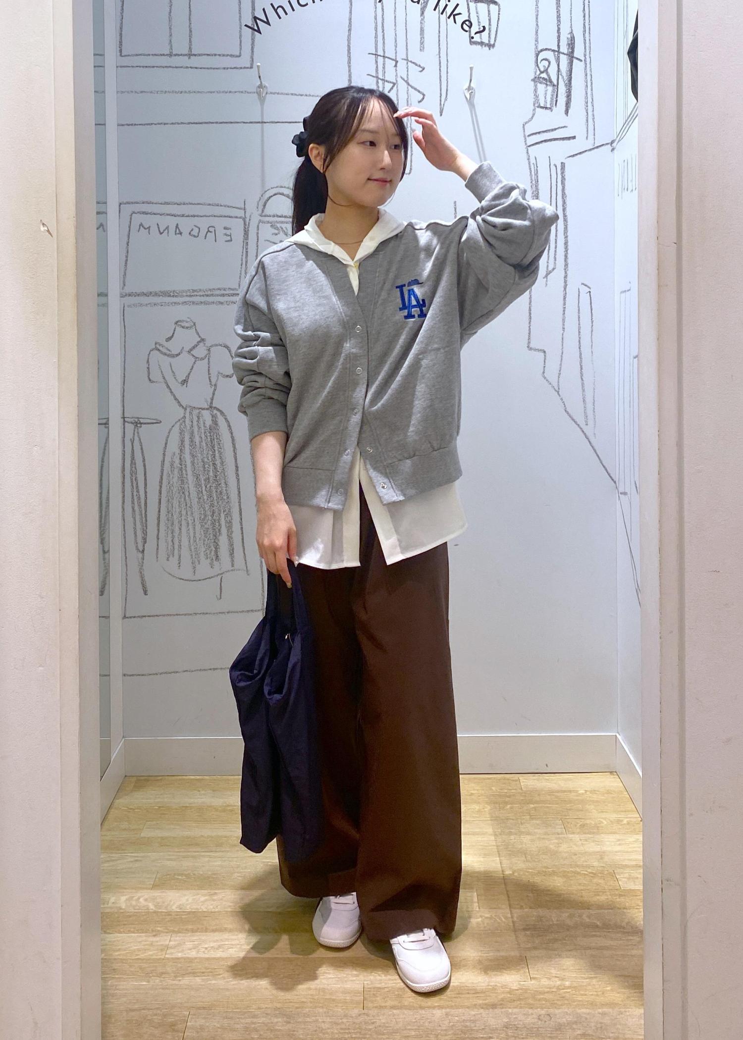 カーディガンにフードシャツをレイヤードすることでよりカジュアルなコーデにしました。