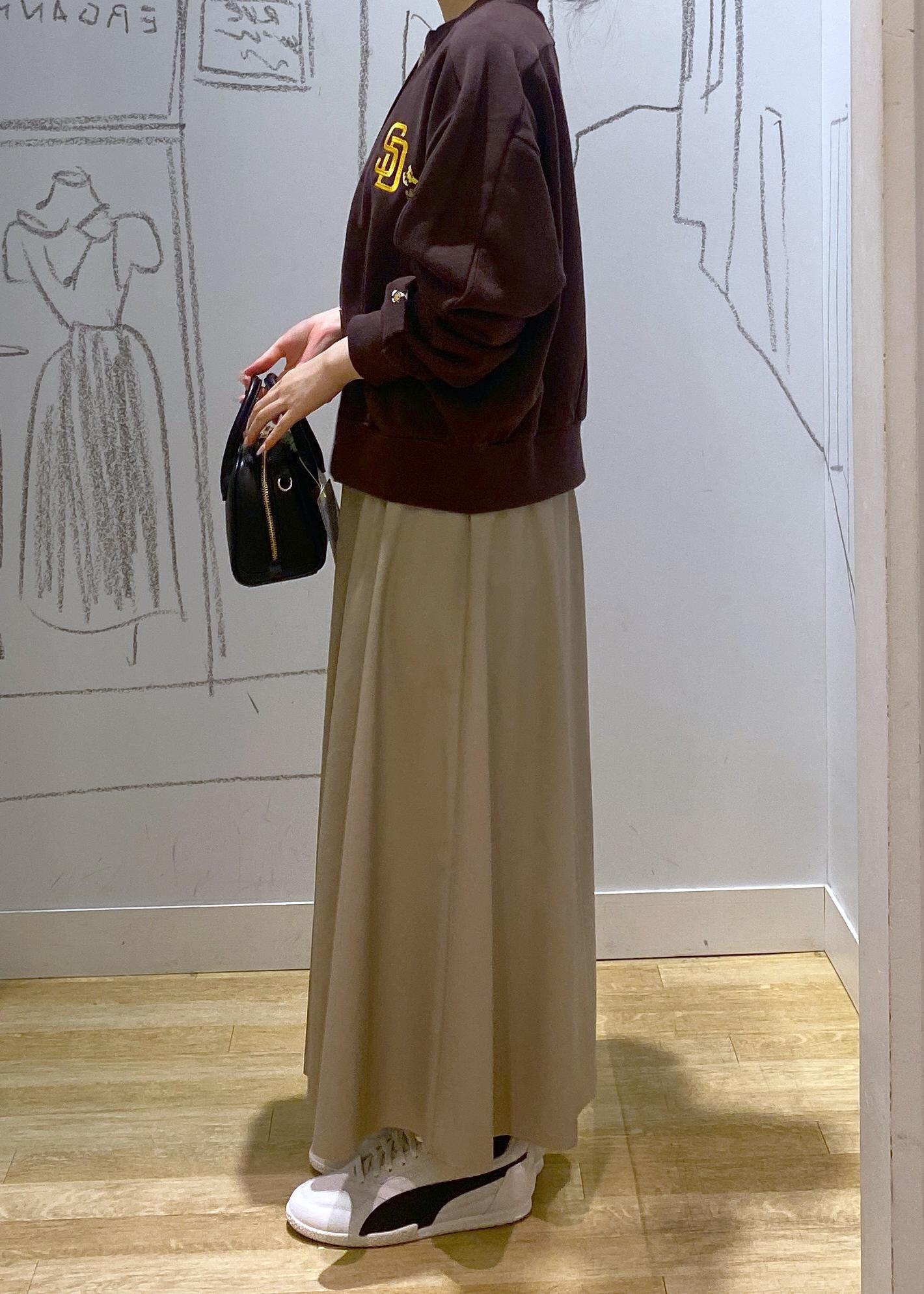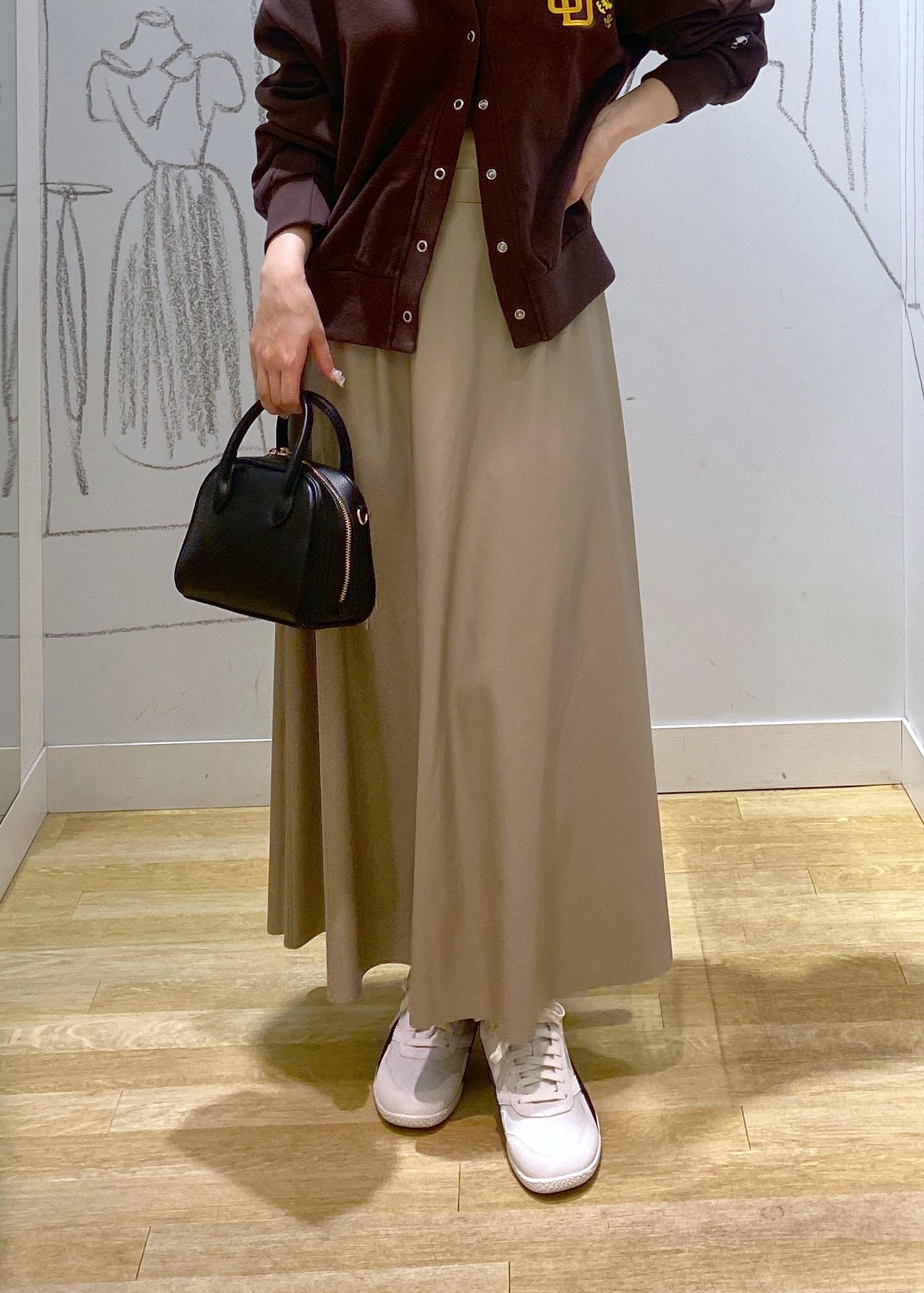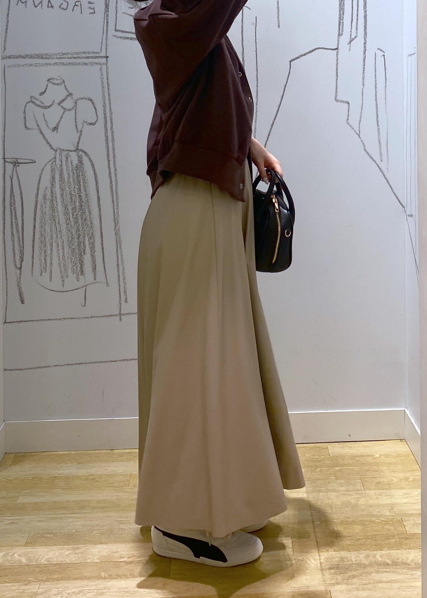 ROPÉ PICNICシンセティックレザーフレアロングスカートベージュ / S¥4,994レビュー153cmが着ると足首が隠れるくらいの丈感です。