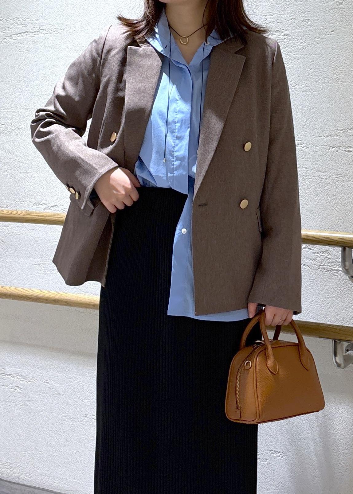 オンオフ問わずに着回しができる金ボタンジャケット。
