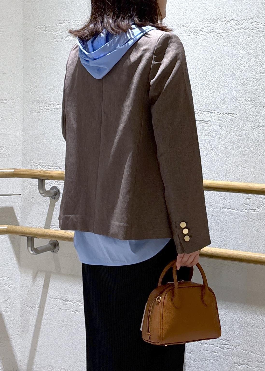 【レディハンサムシリーズ】ウールライク金ボタンジャケットを使ったカジュアルコーディネート。
