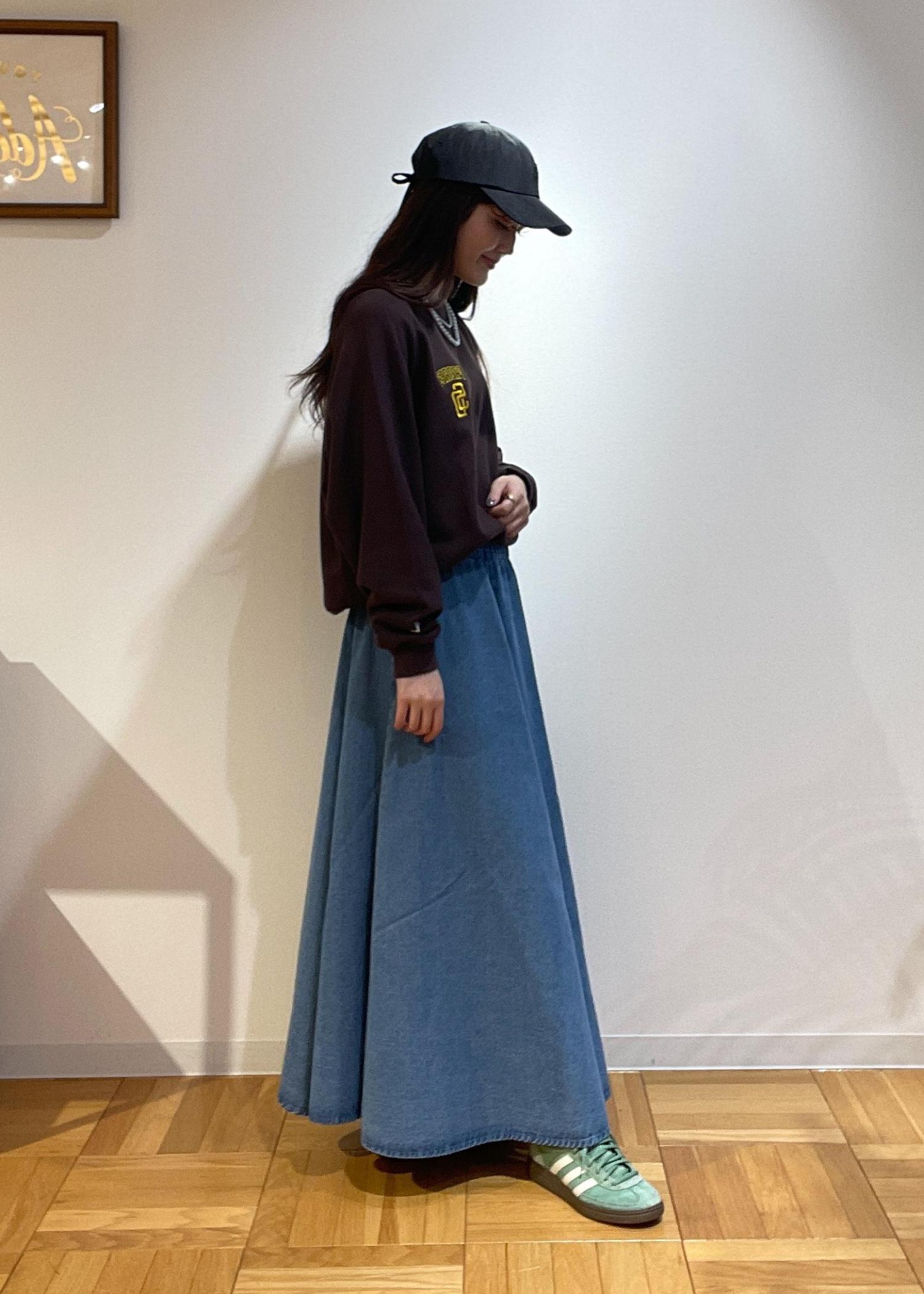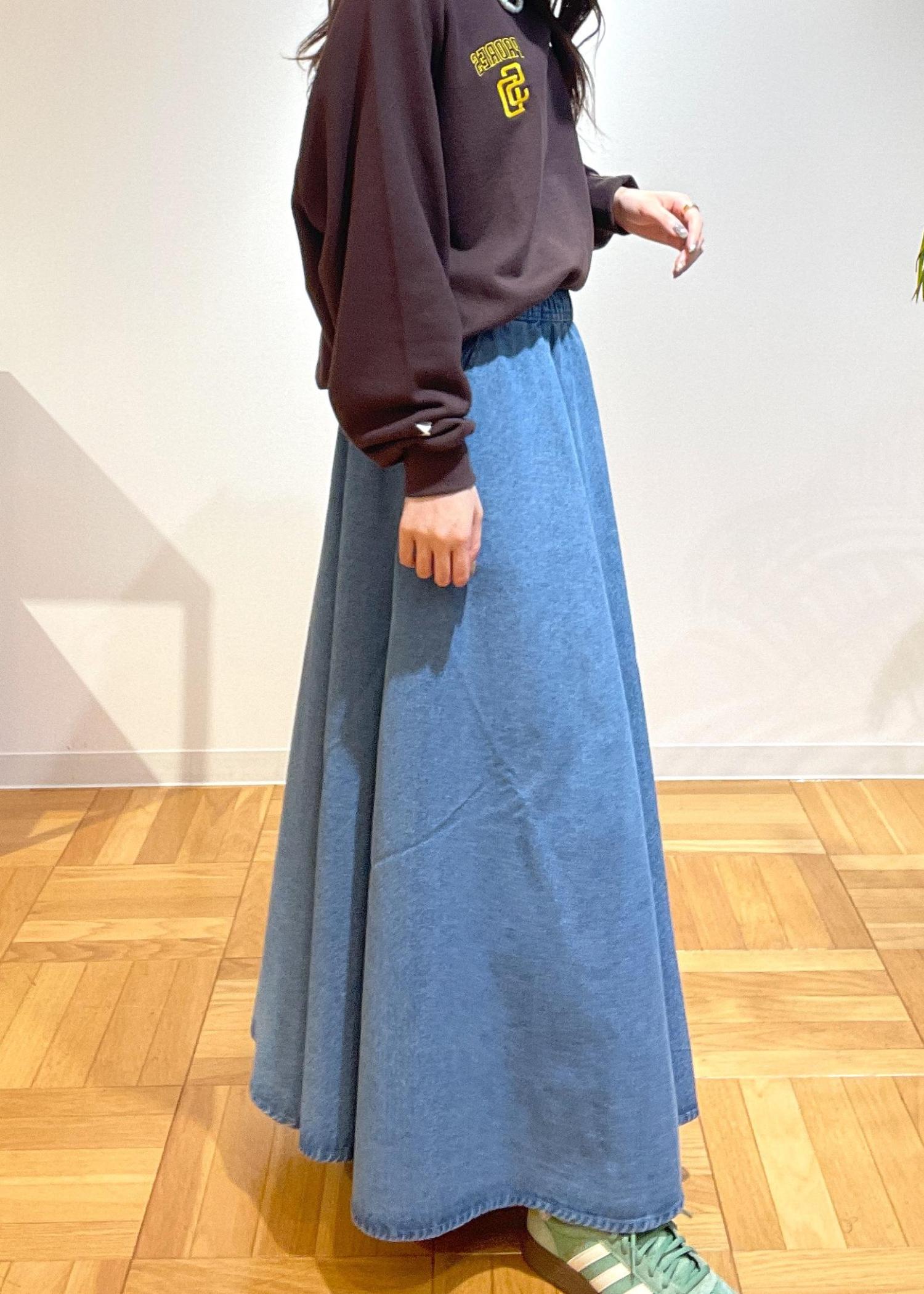 ディッキーズのデニムスカートはしっかりとしたボリュームのあるシルエットです。