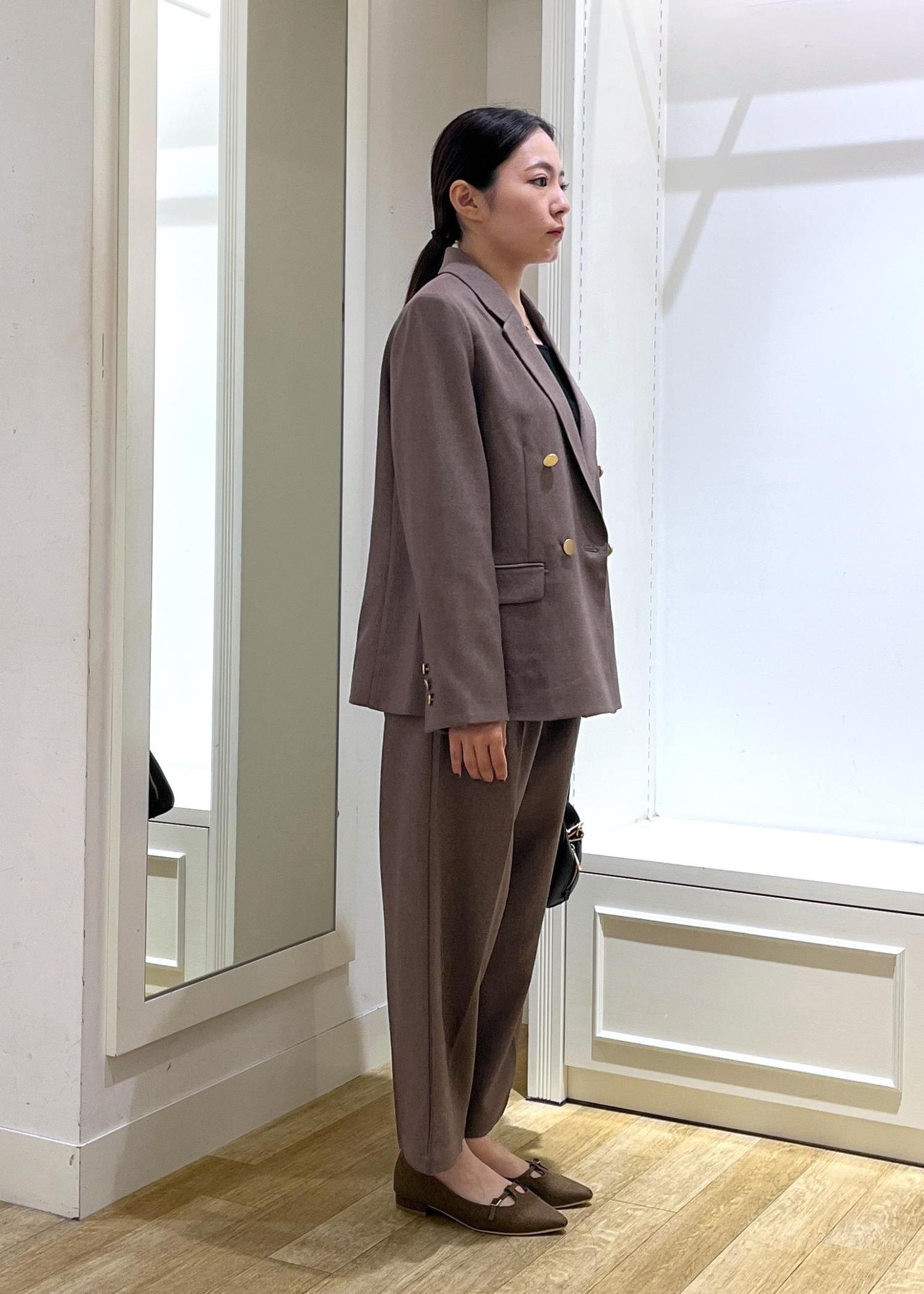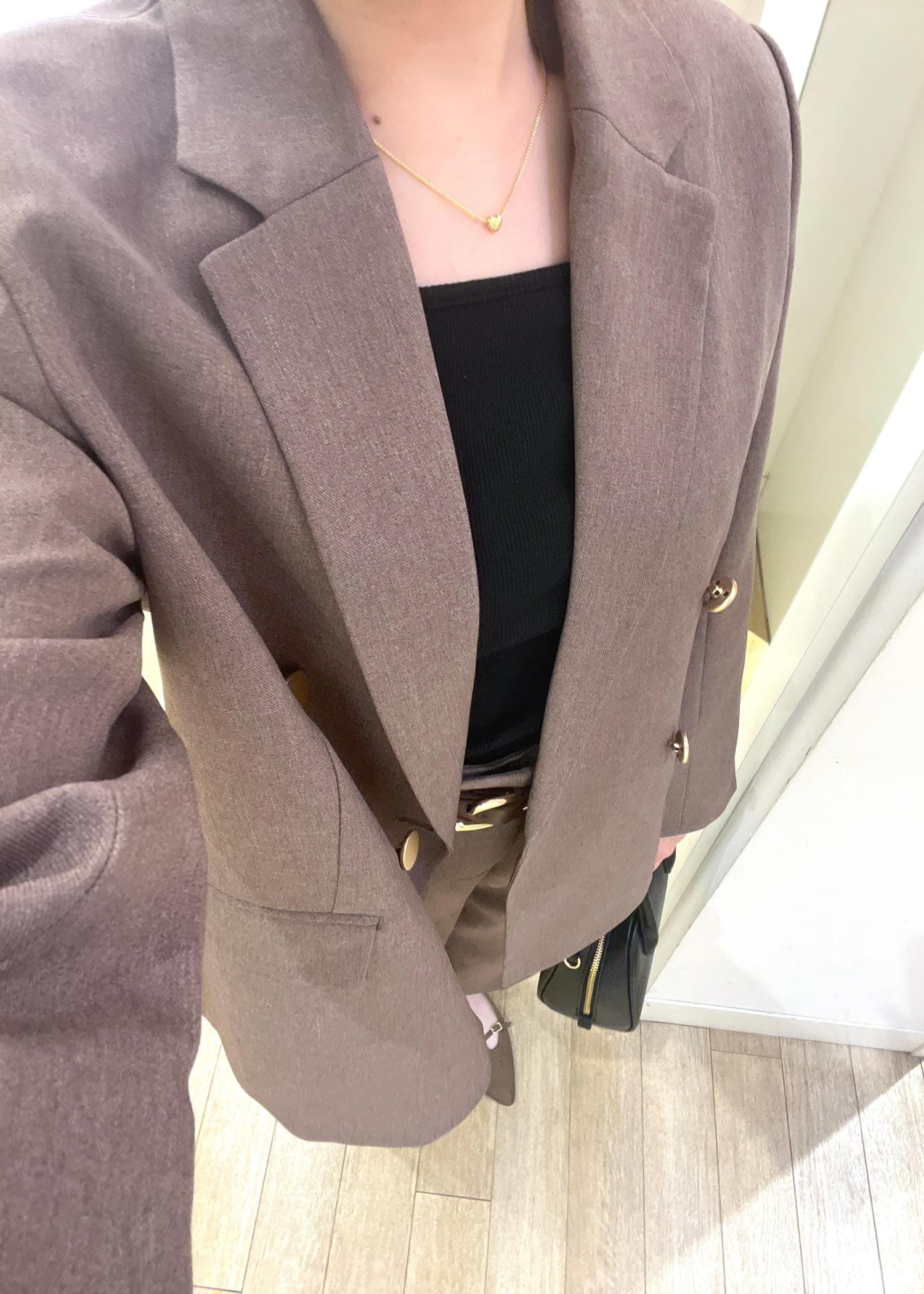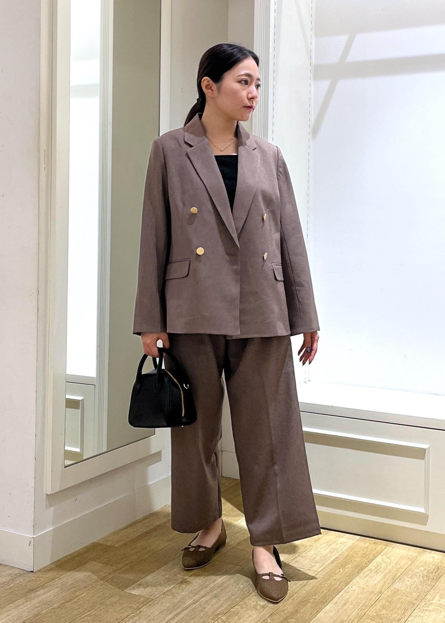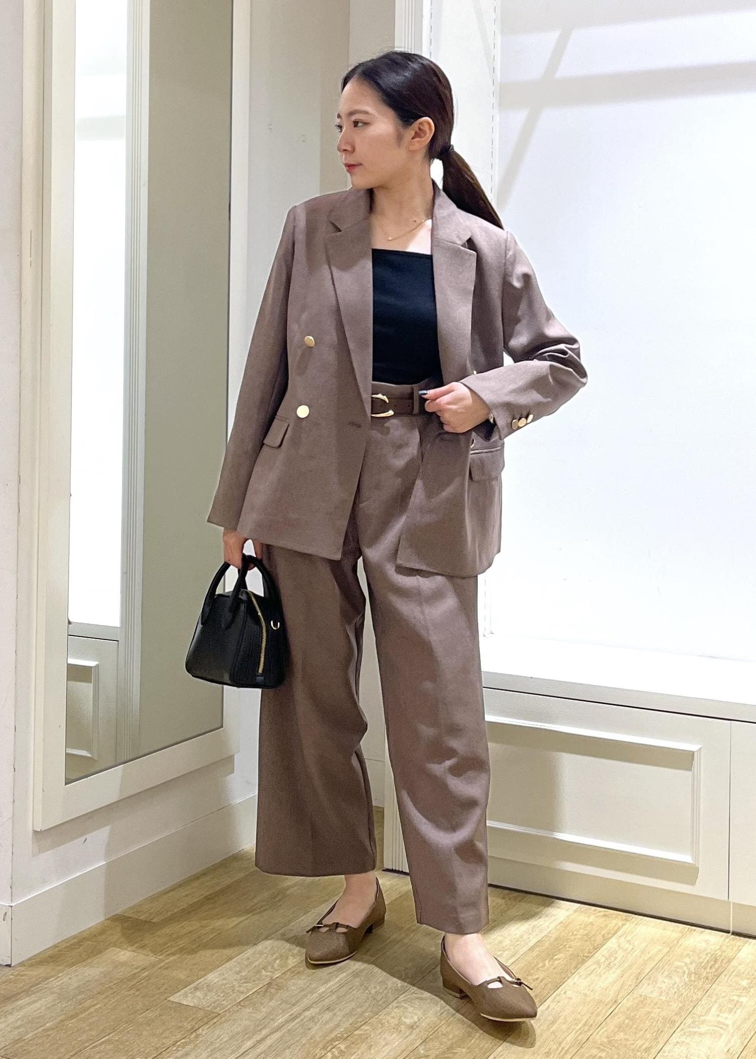 ブラウンメインでコーディネートし、バックやインナーで黒を使ってメリハリをつけました☺︎