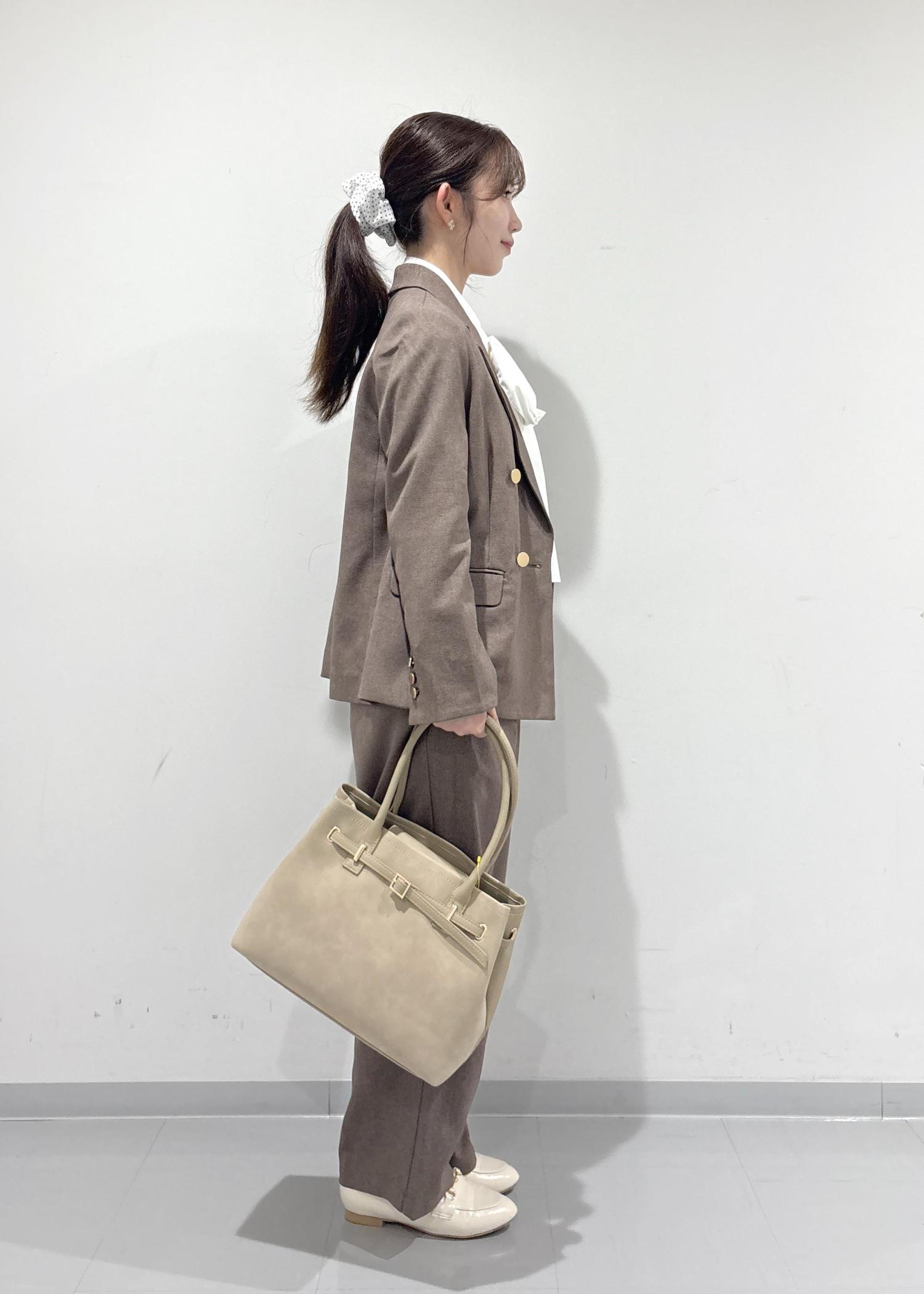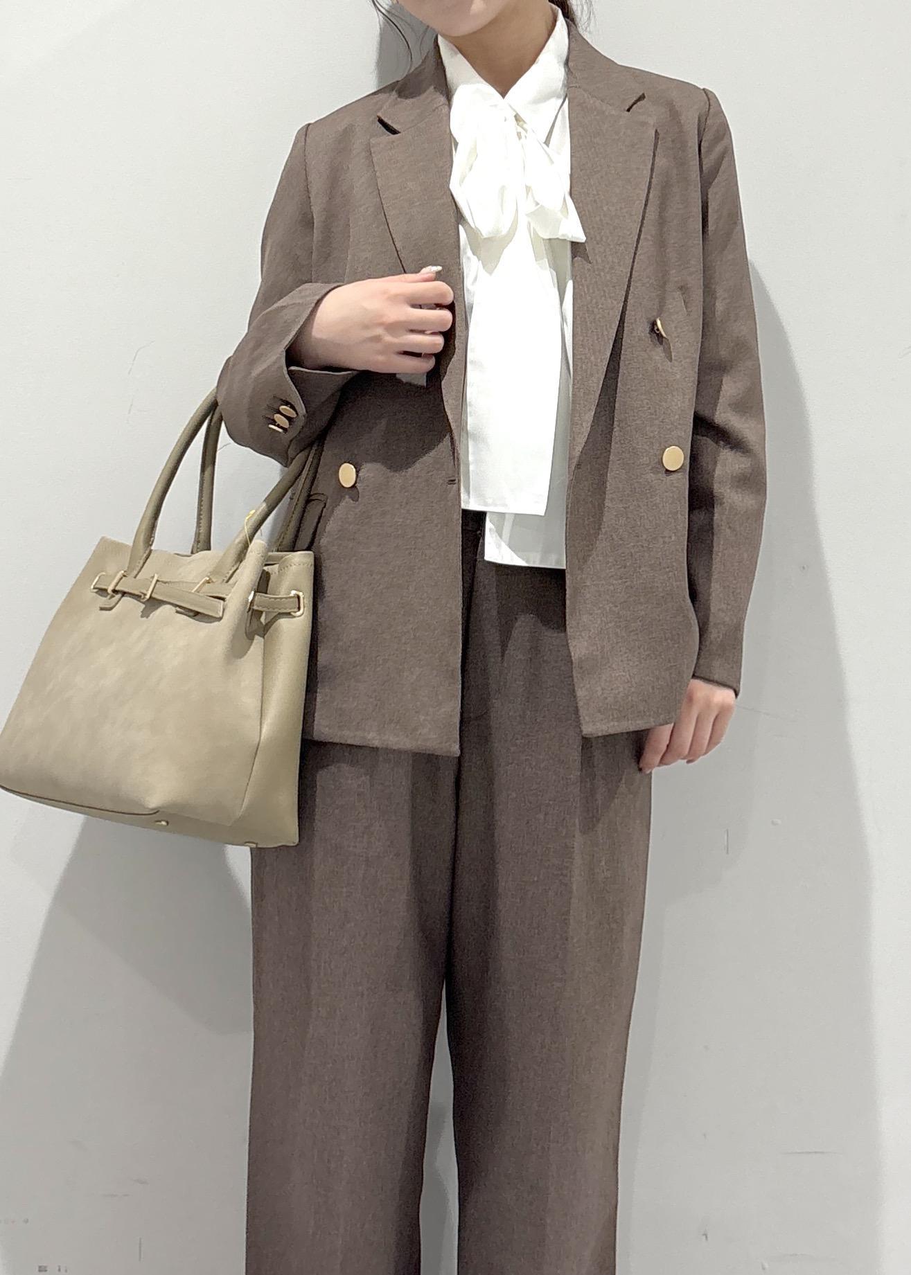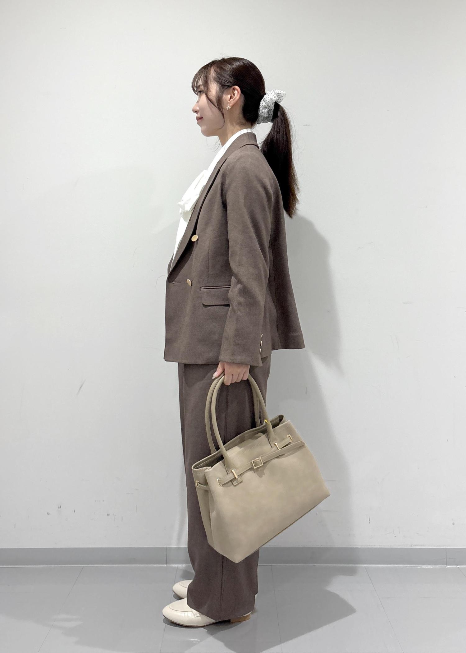 ブラウンのセットアップが秋感があってお洒落です!他とは被らない綺麗めコーデになっています!白のボウタイのシャツで少し可愛らしい印象を出して、ブラウンのバッグでセットアップとお揃いにしてみました!ボタンを閉めたらまたカッチリとしたカッコイイ印象になると思います!