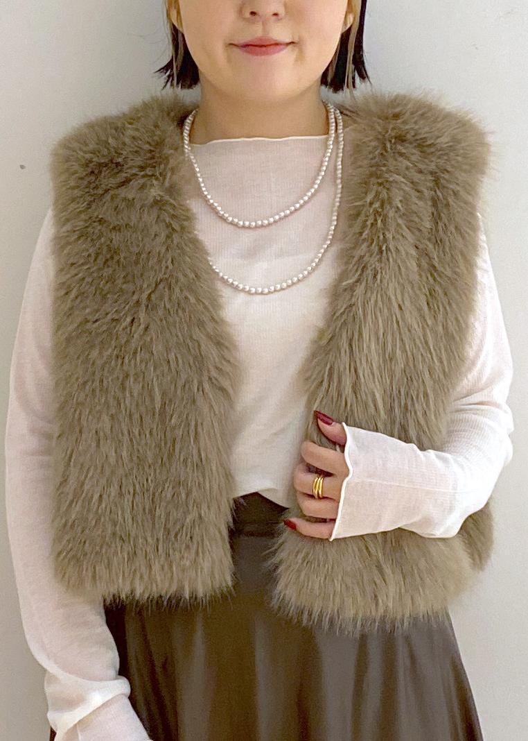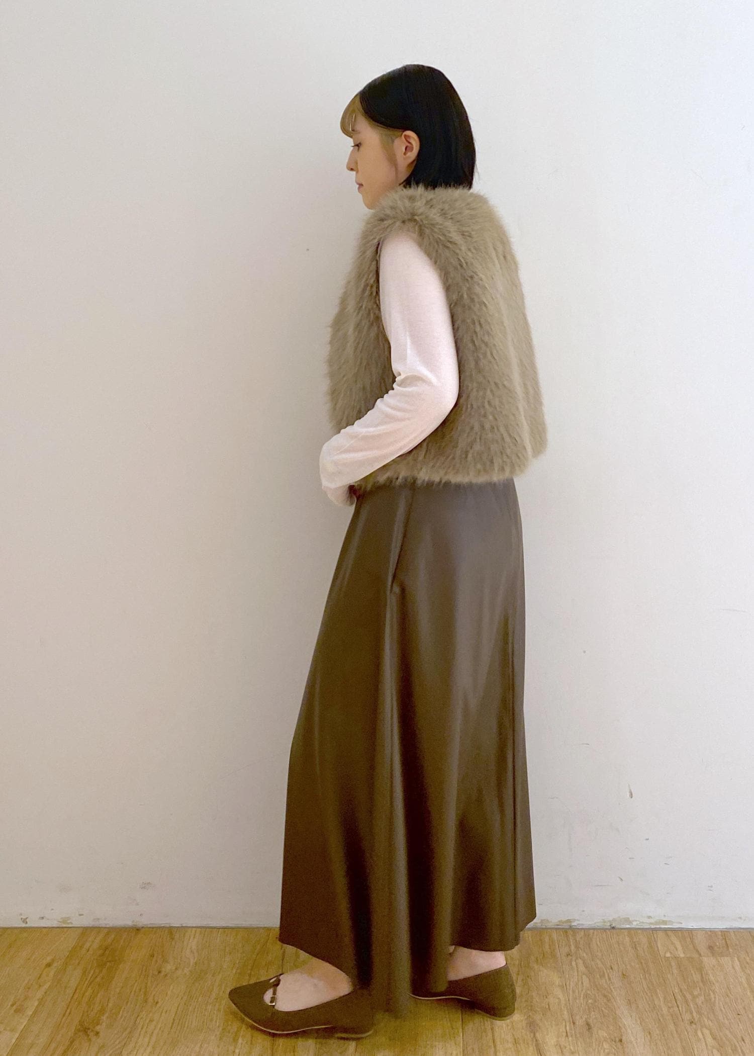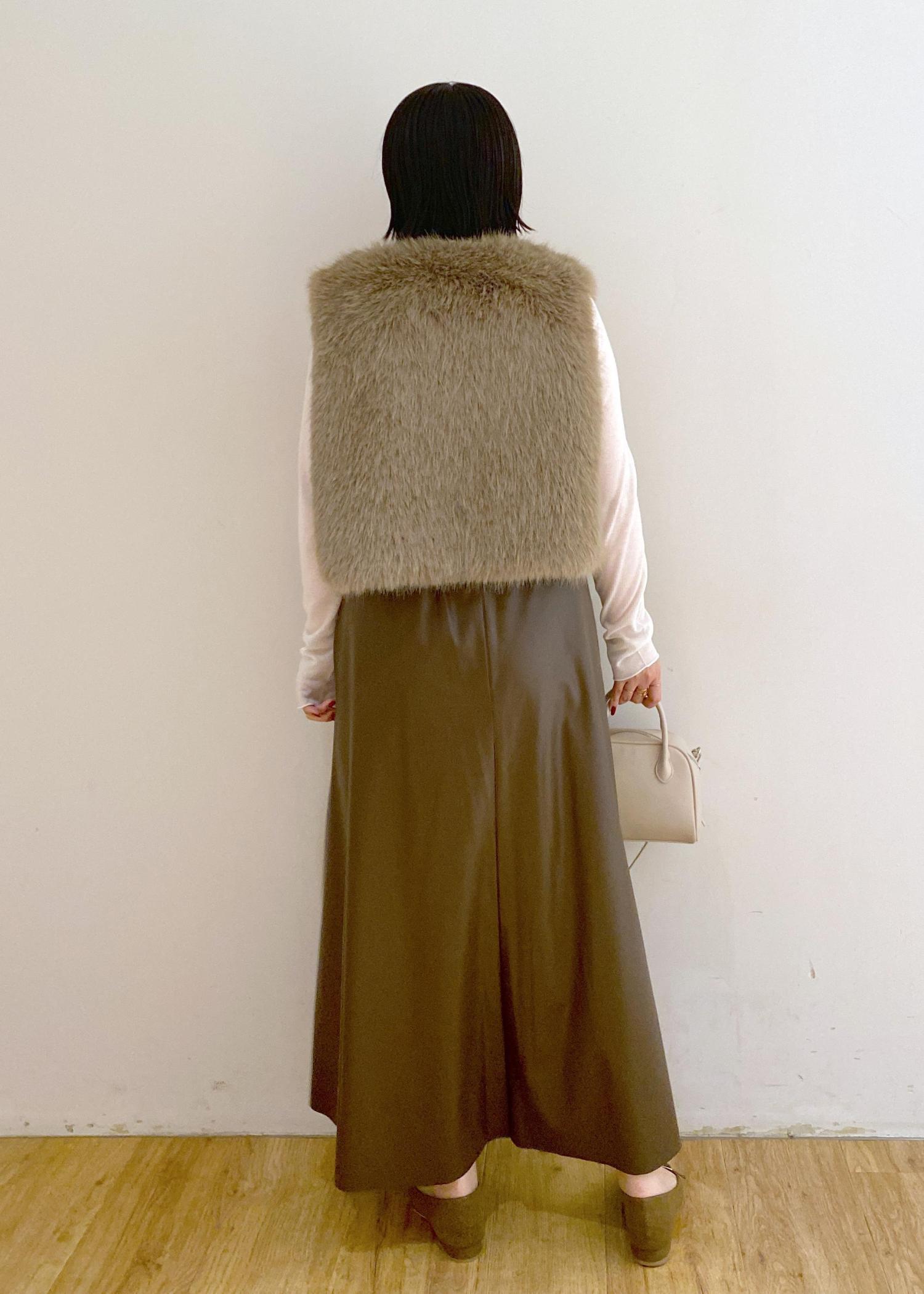 ROPÉ PICNICファーベストダークブラウン / F¥6,996レビュー156cmでヒップは見える丈感です。裏地付きなので秋から冬まで長く着用できそう◎ボリューム感が多少あるのでインナーは薄手が良さそう◎