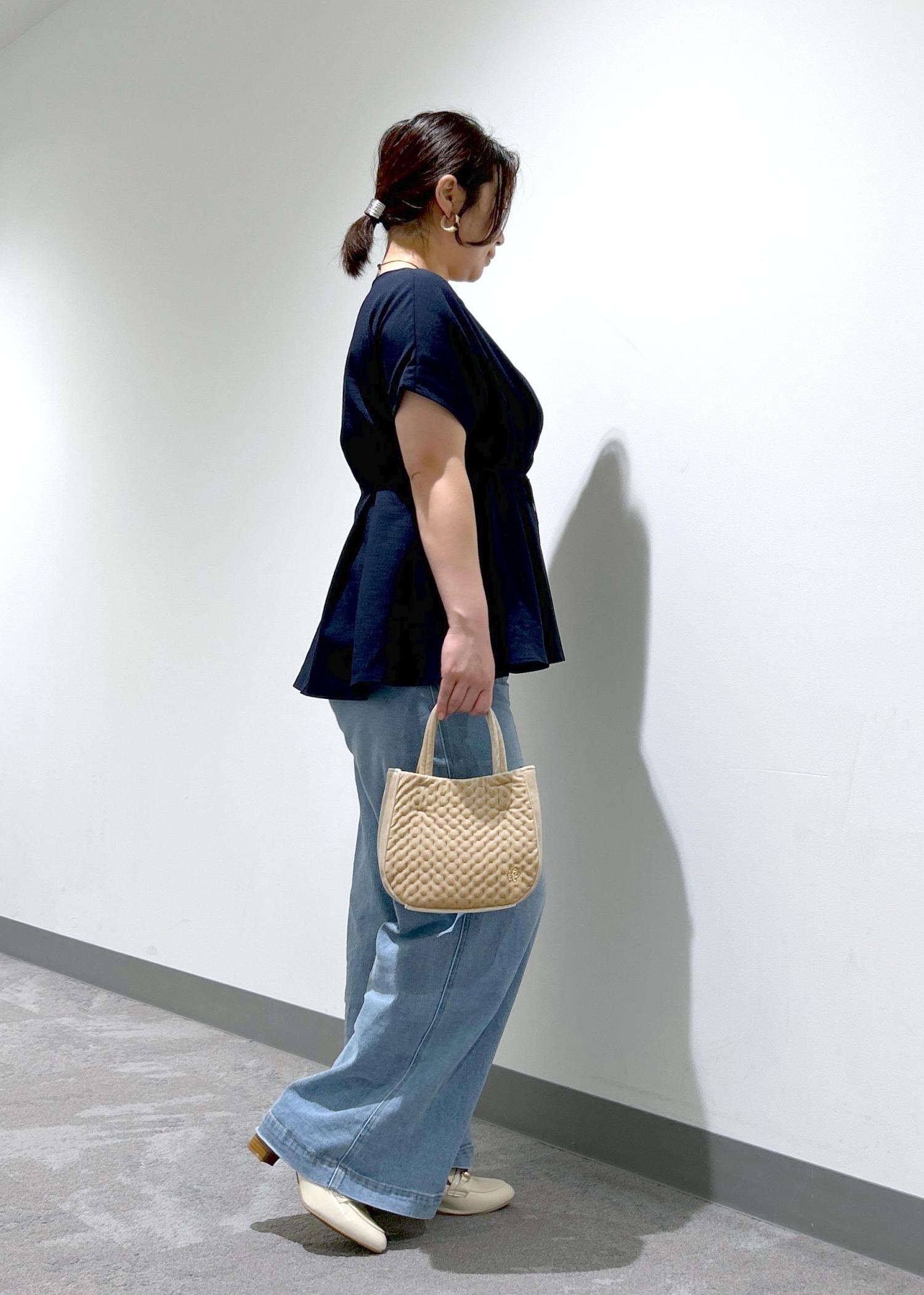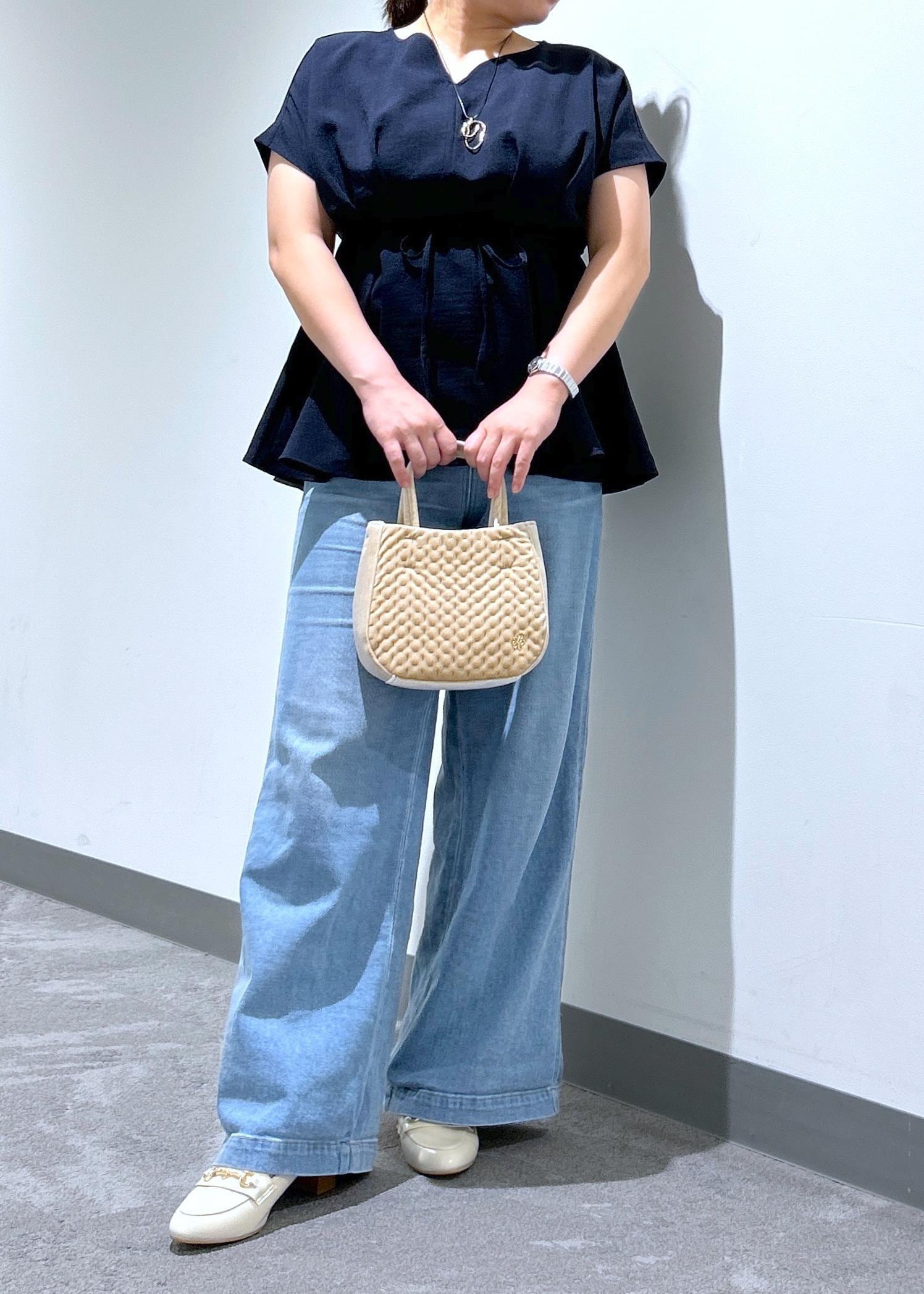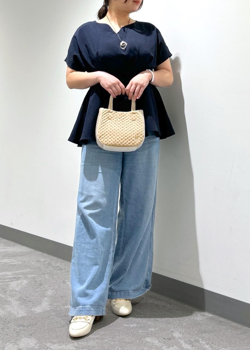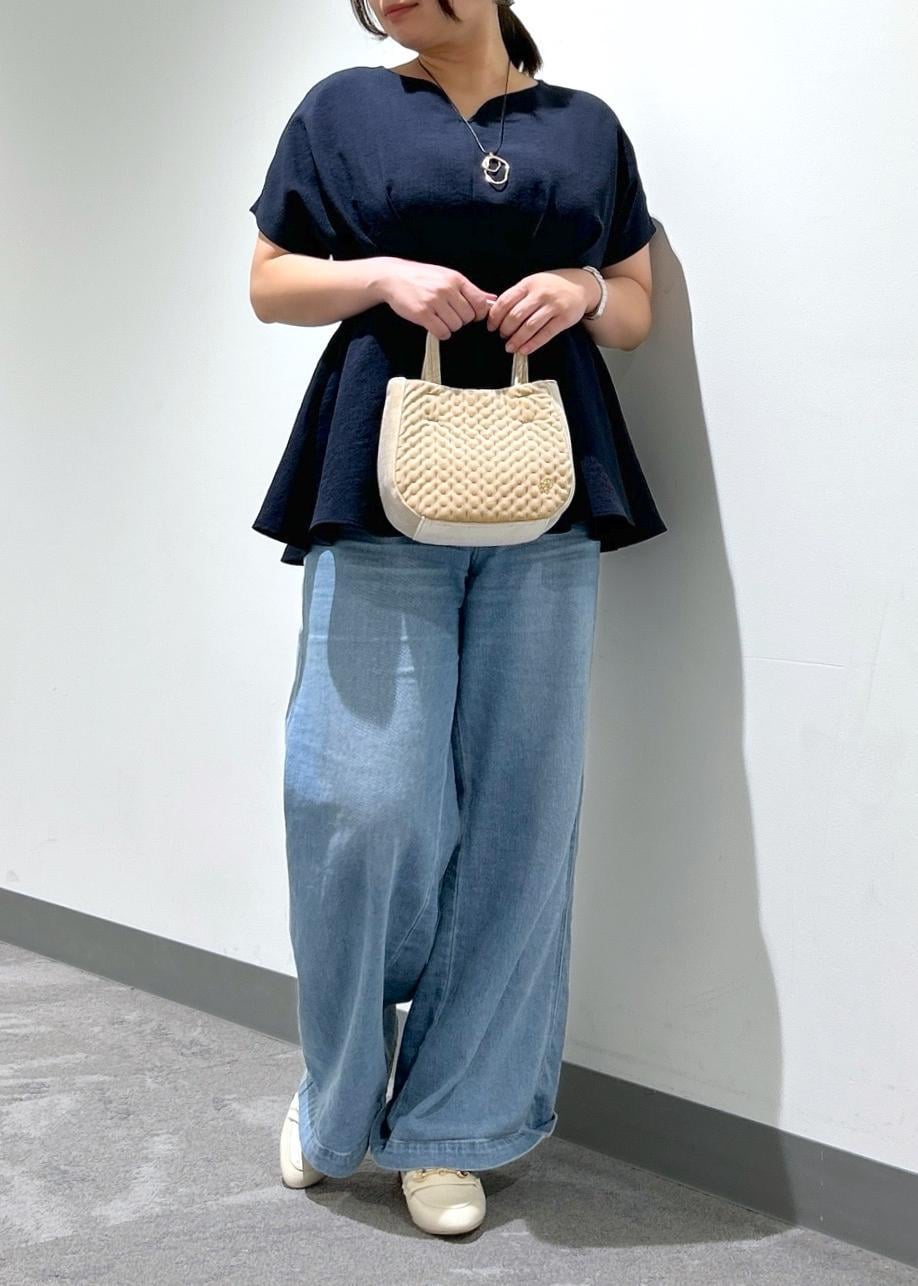 ハートネックペプラムブラウス× デニムワイドパンツ