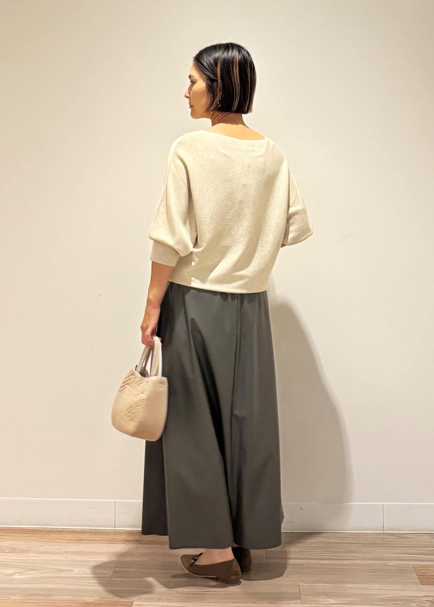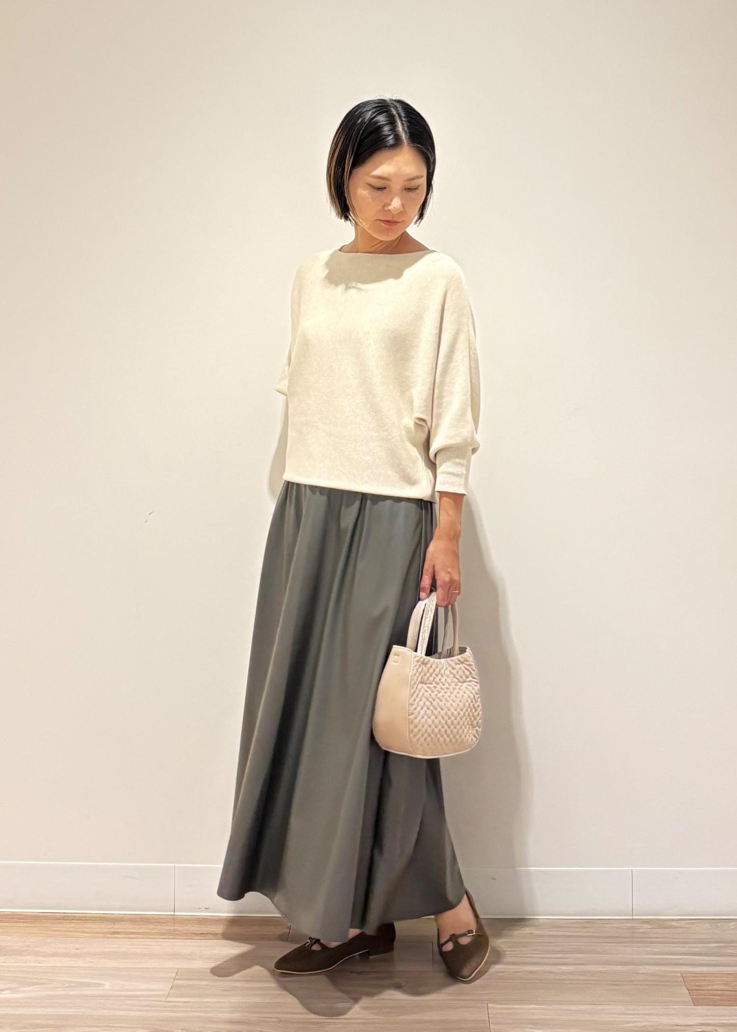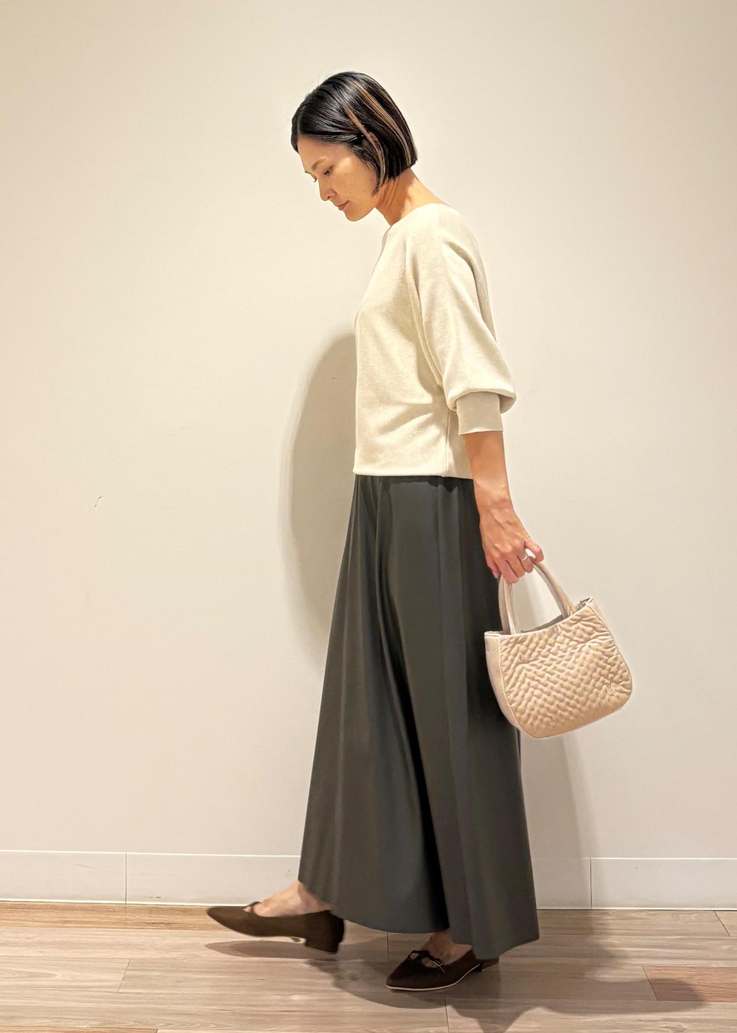 レザーロングスカートと合わせて、秋を感じられる装いにしてみました⭐︎