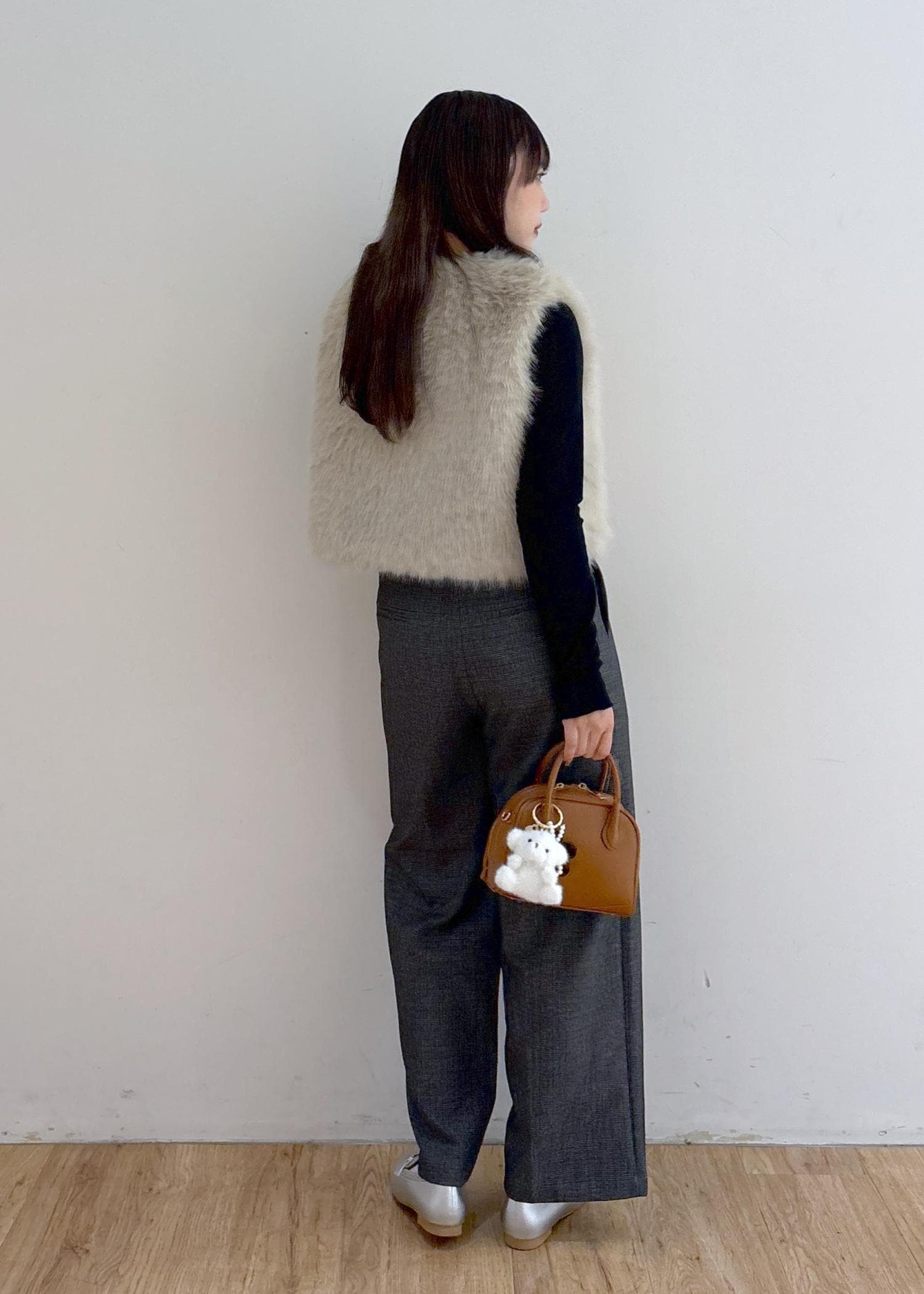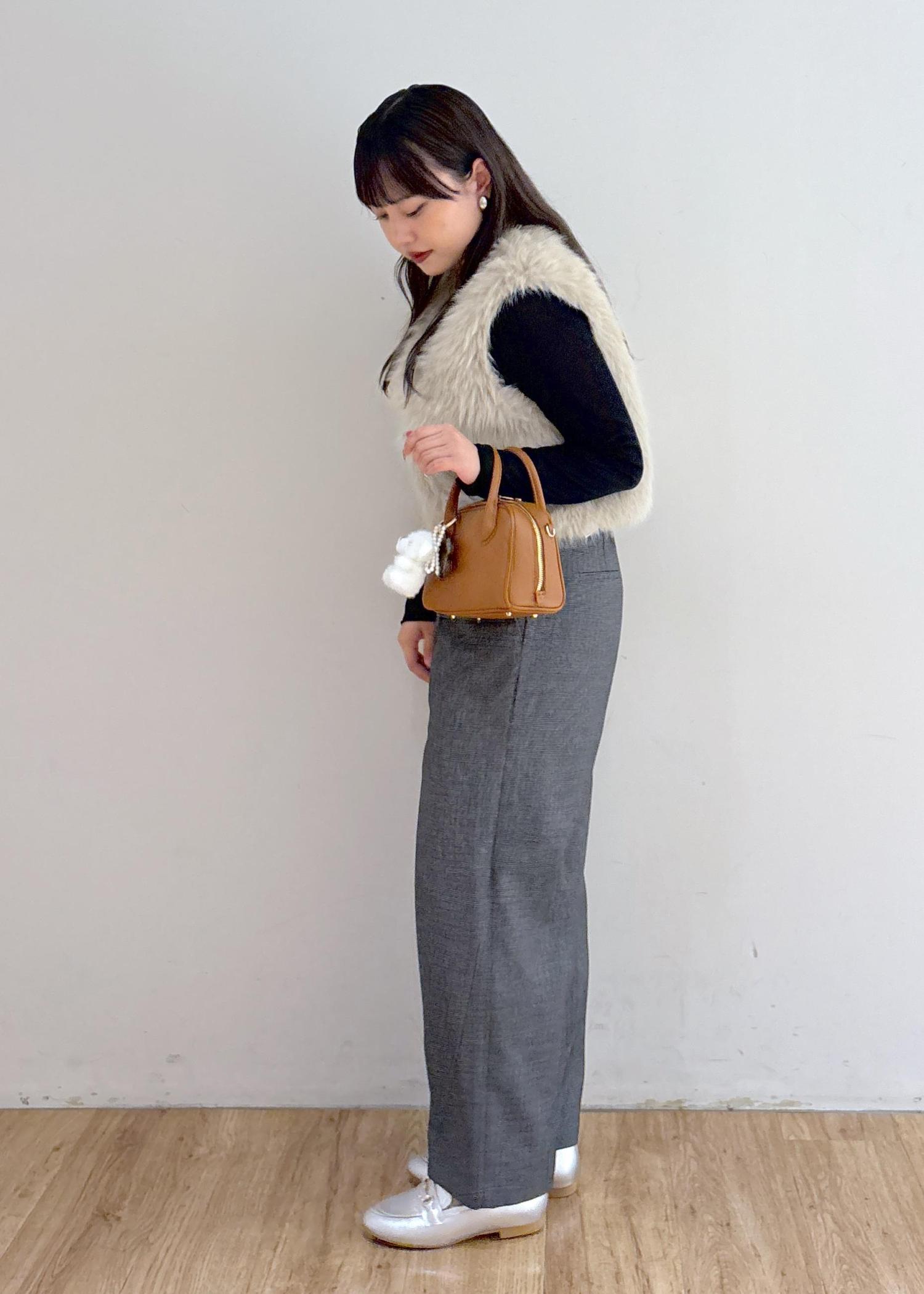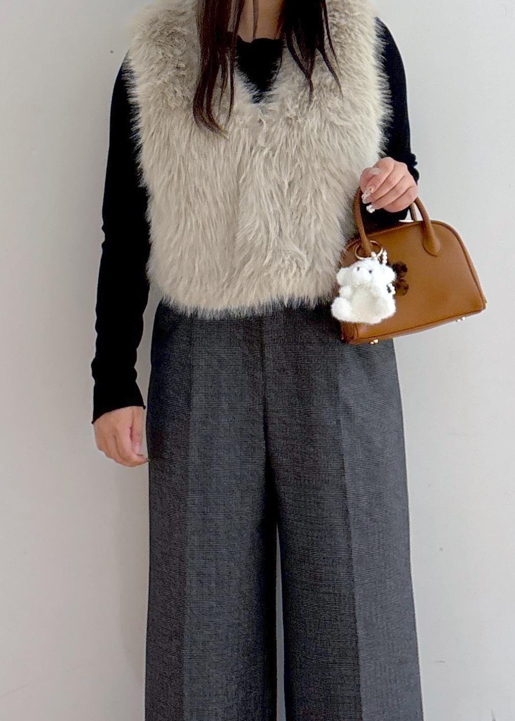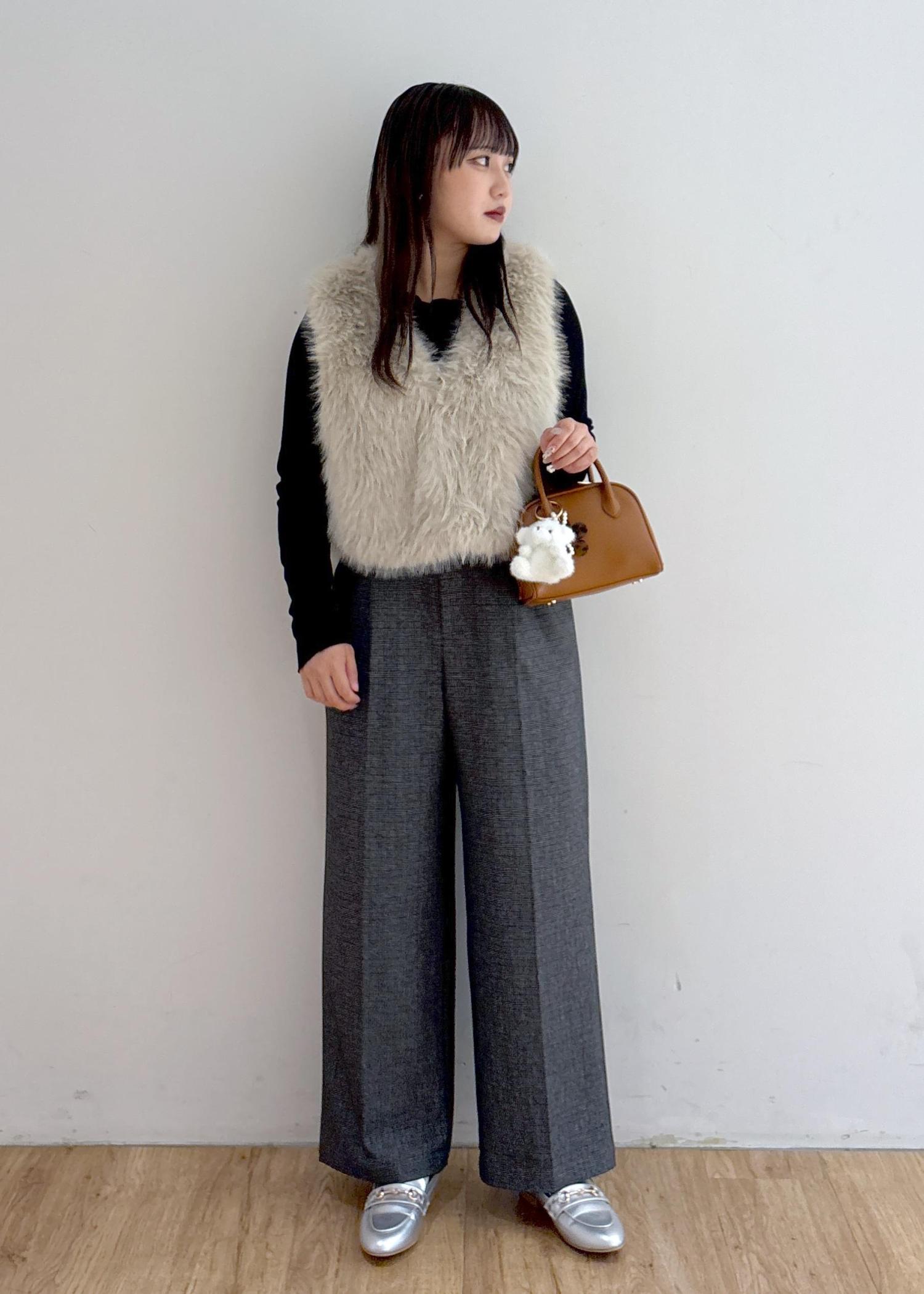 秋らしいブラウン、グレーカラーをメインにファーとチェックのアイテムでスタイリングを組みました! 羽織るだけでこなれ感出るファーベストがカワイイです◎