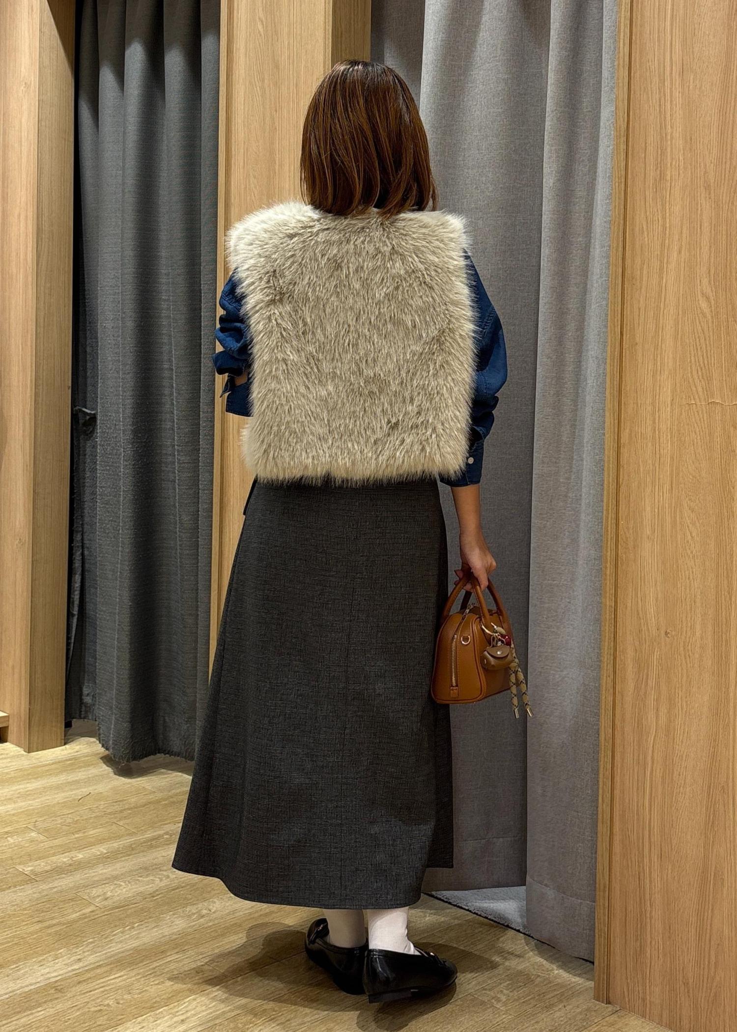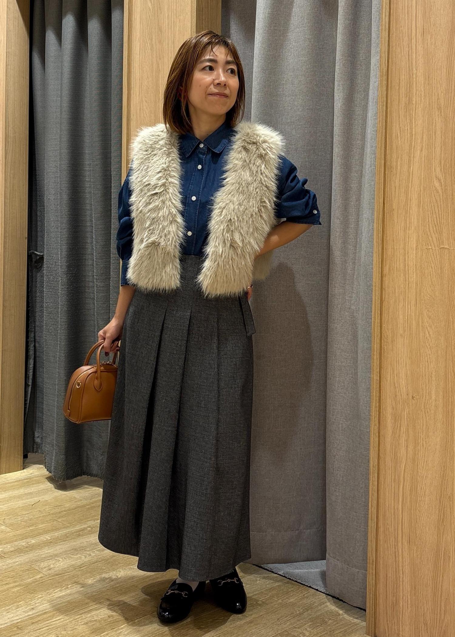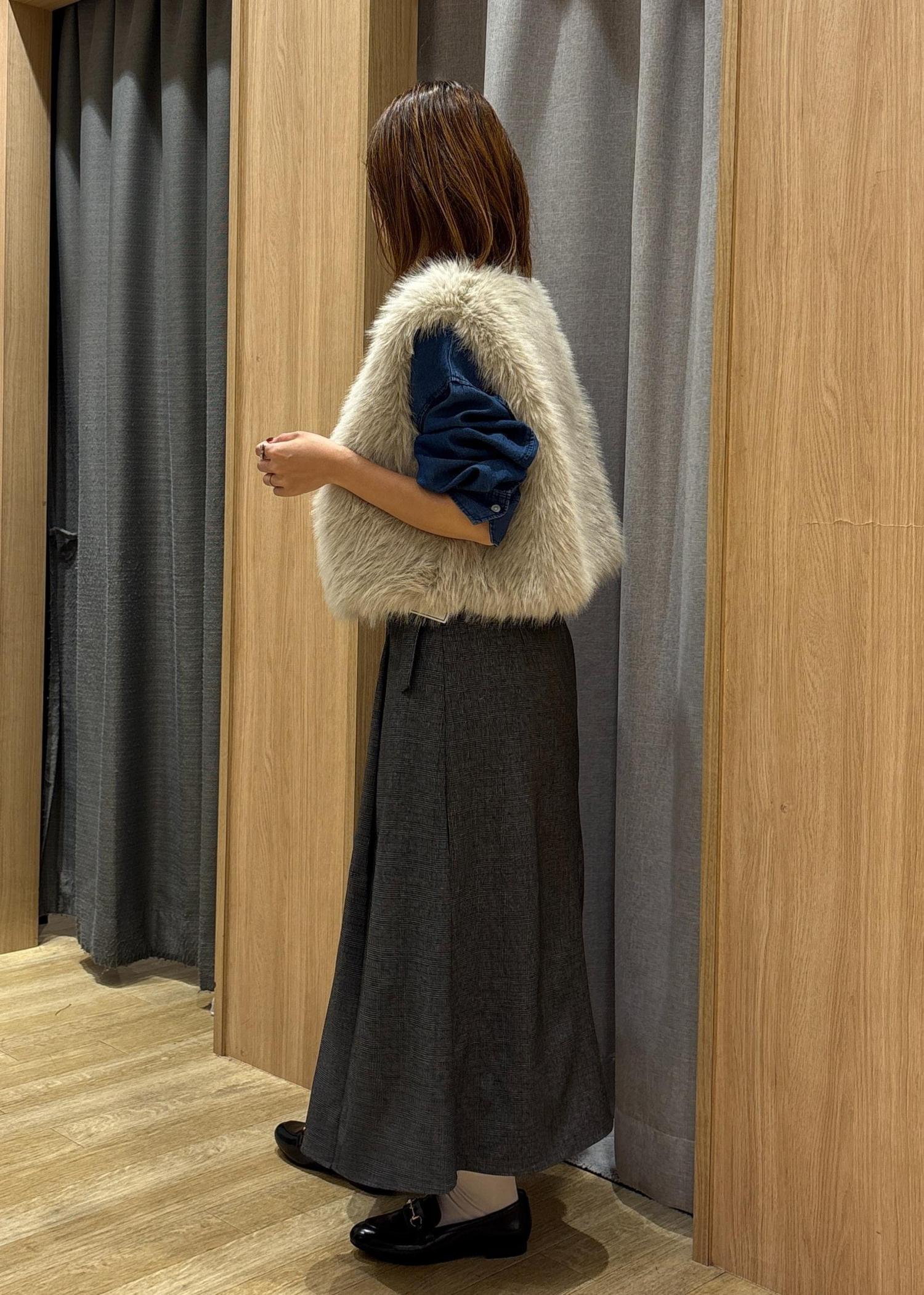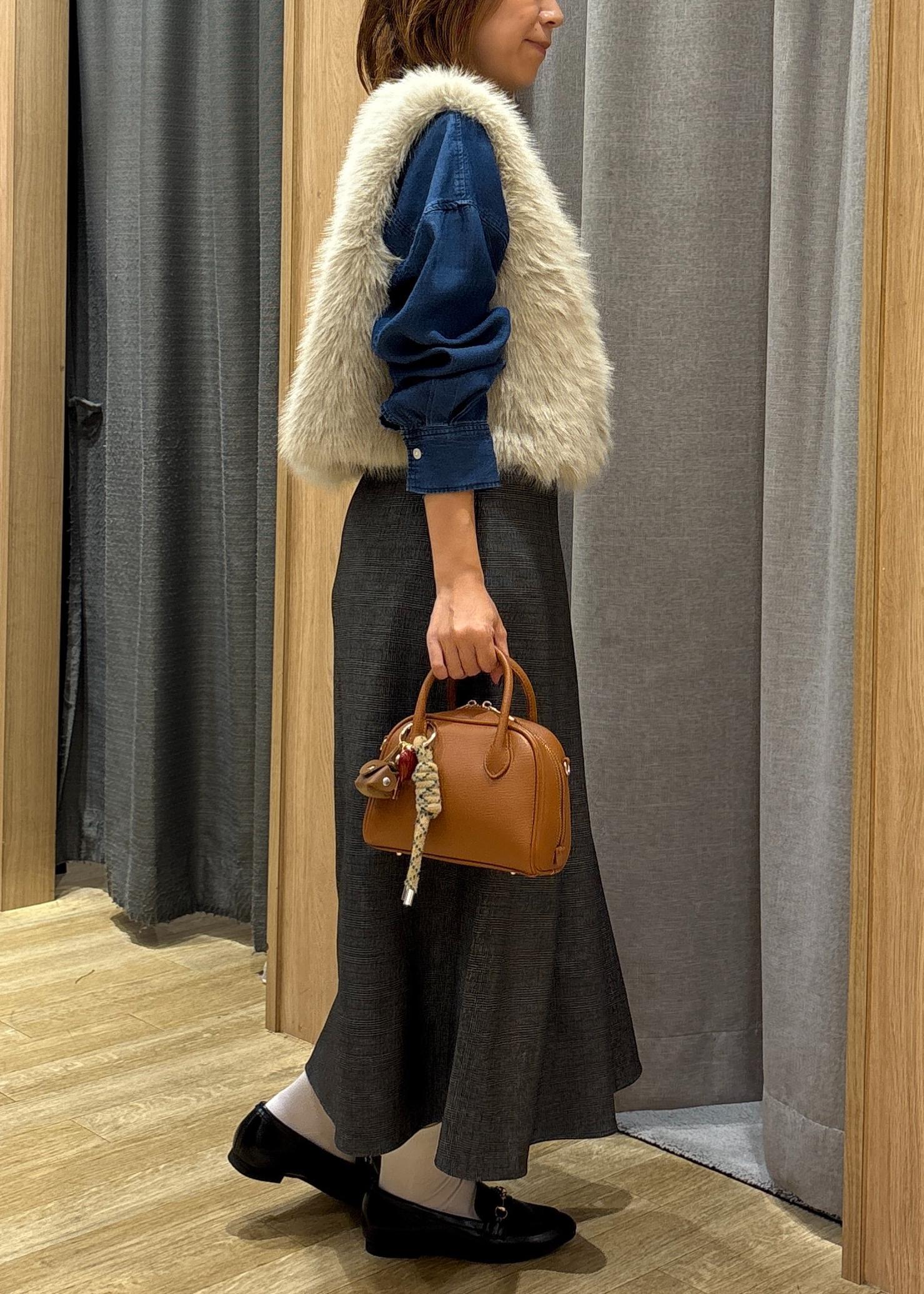 秋の先取り、今年キーワードにもなってる、ファーアイテムを使ったコーディネートにしました。