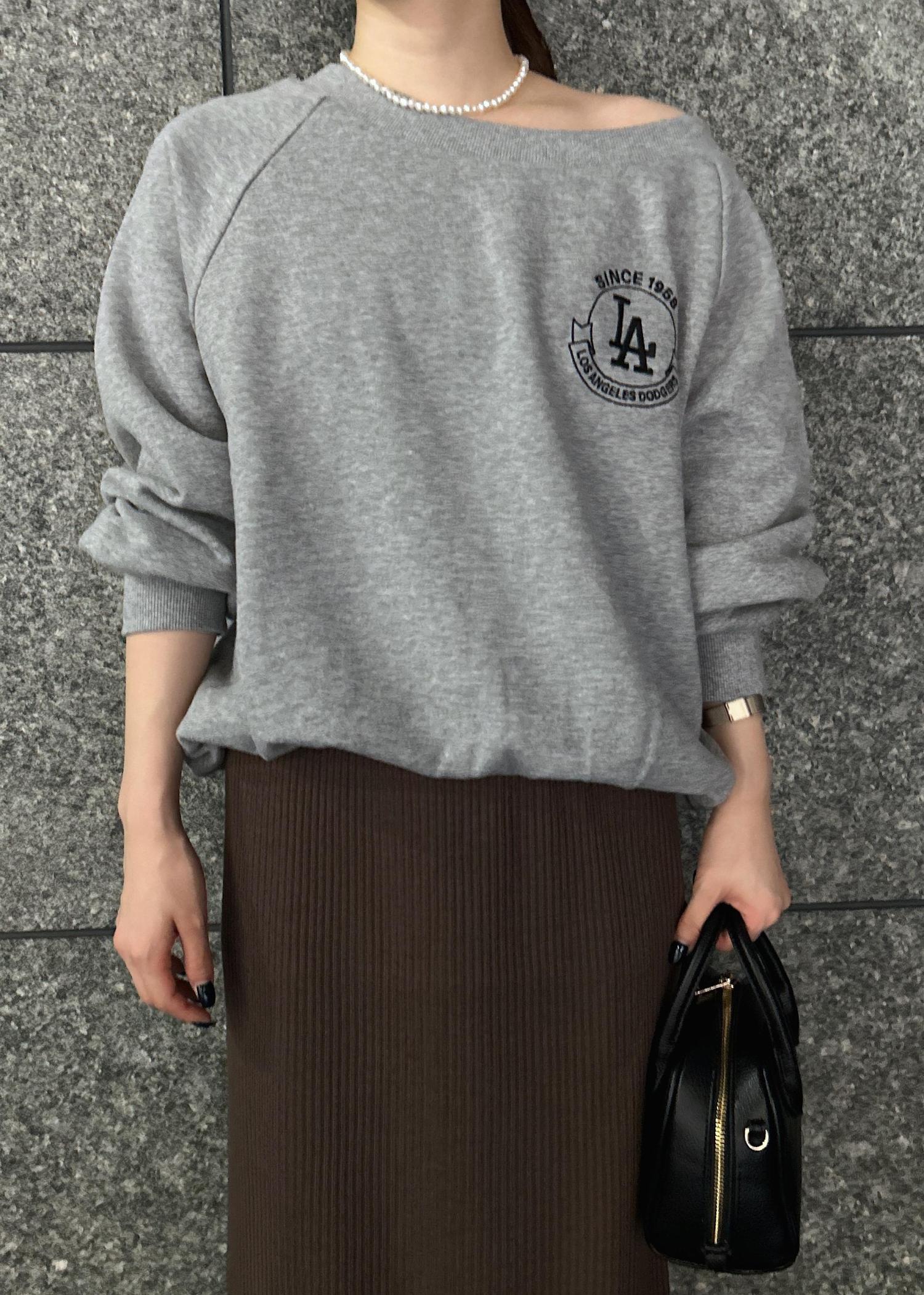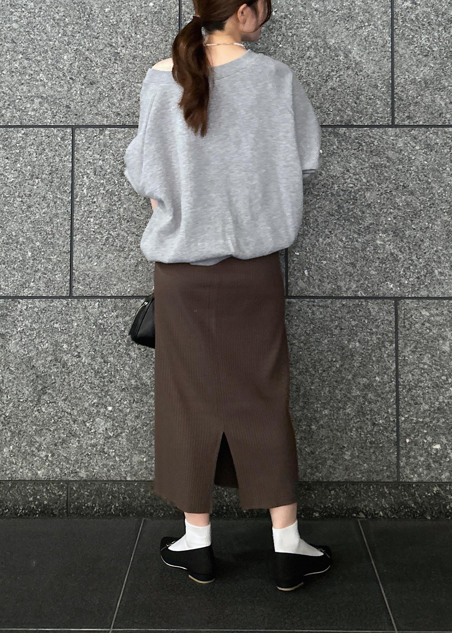 オフショルでも着られるスウェットでヘルシーな大人キレイめコーデ♪