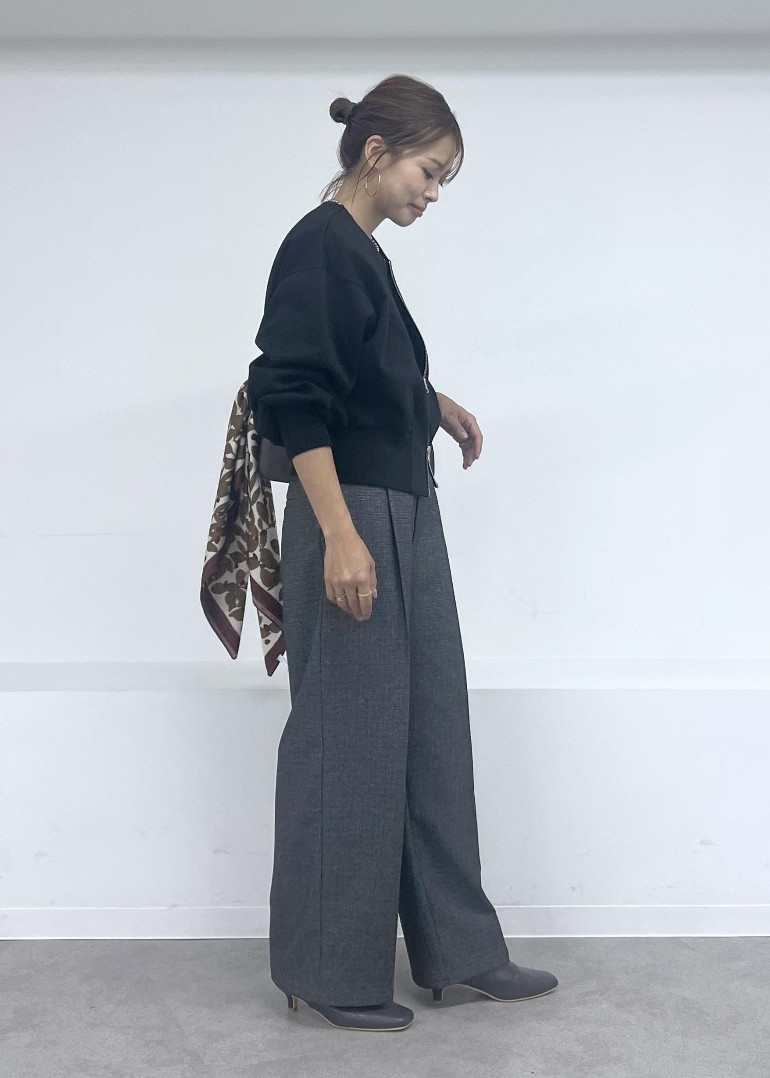 ツイードパンツと合わせて大人のモノトーンコーデにまとめました。