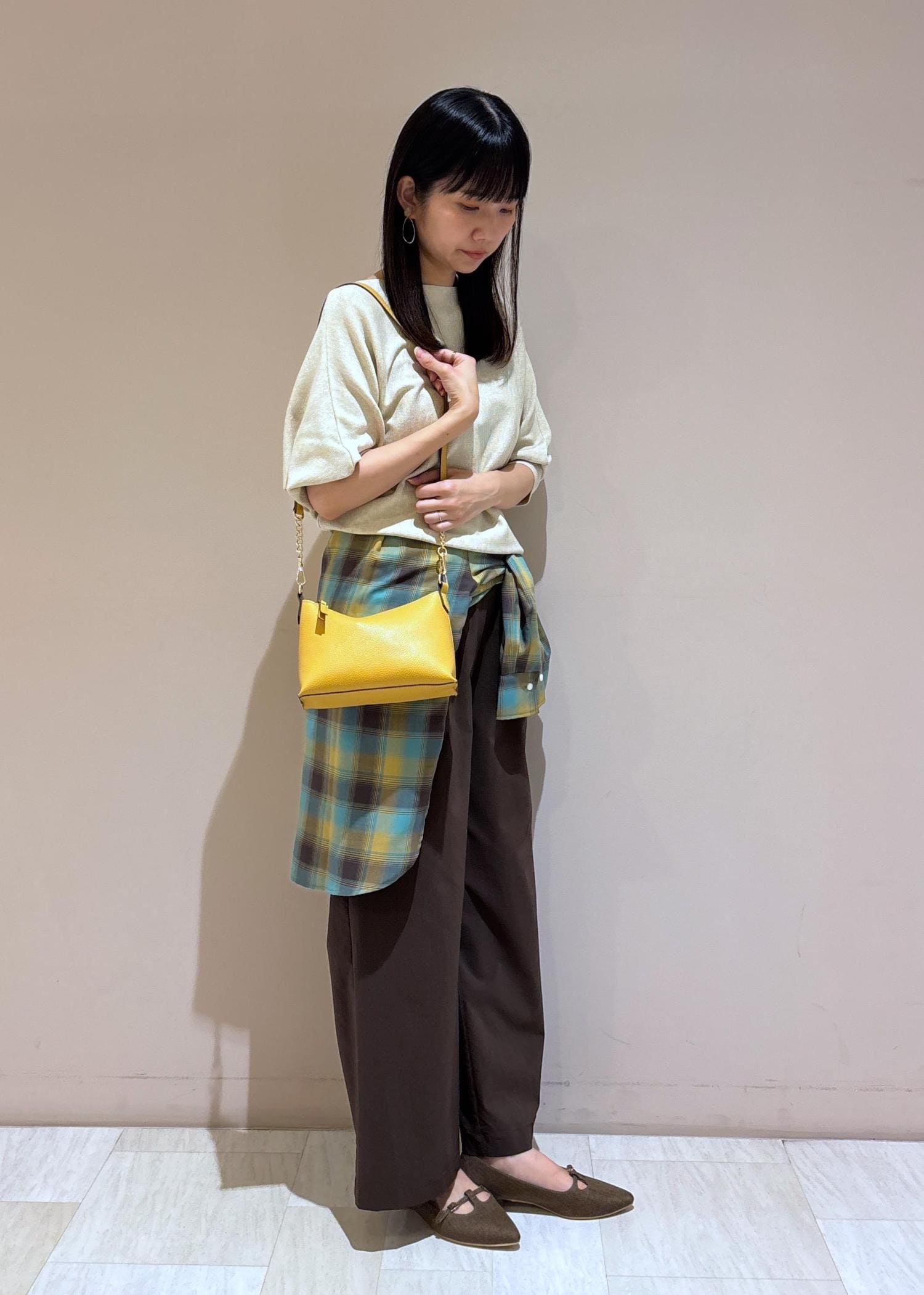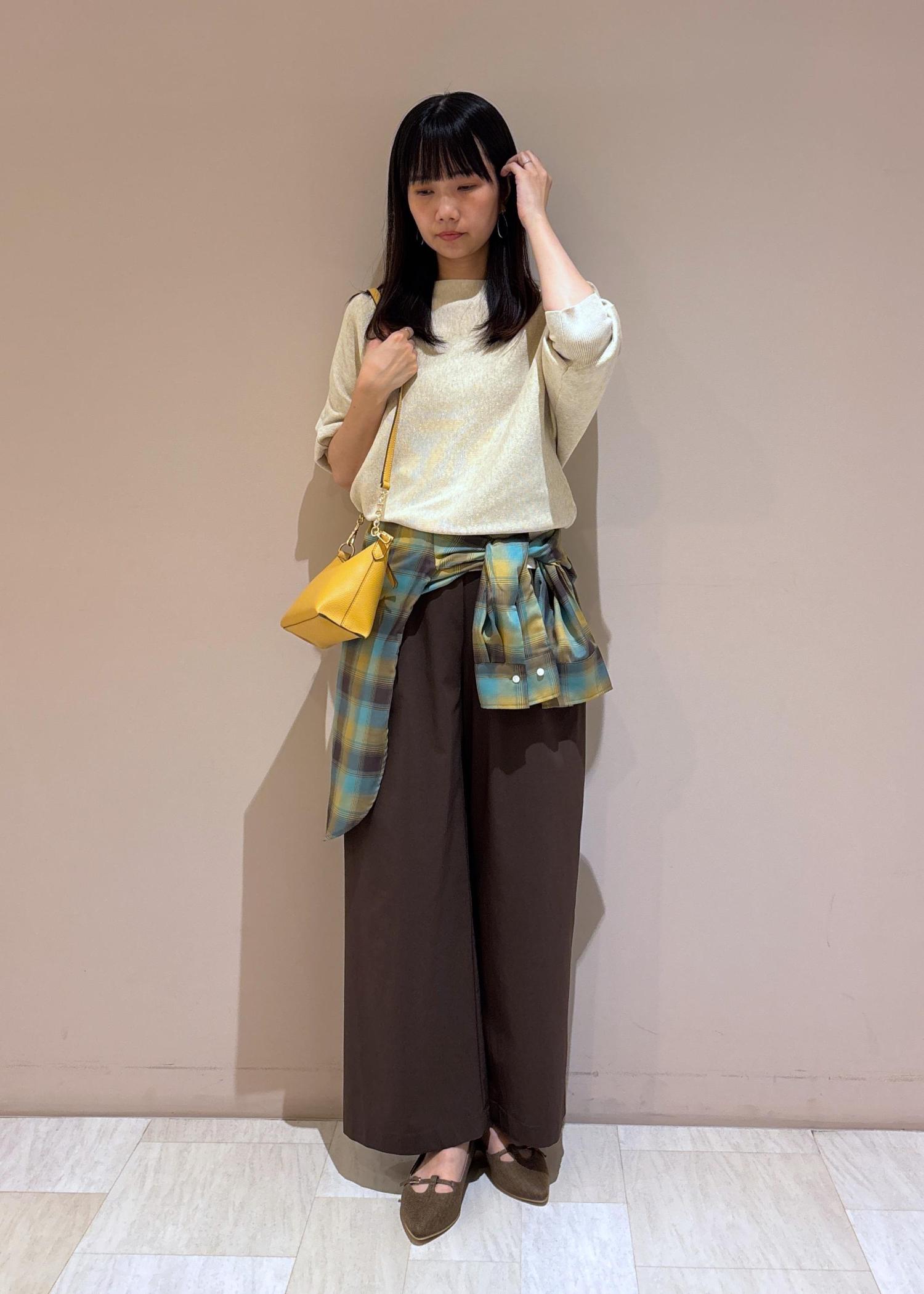 シンプルなドルマンニットとワイドパンツにチェックシャツを合わせて少しカジュアルなコーディネートにしてみました。