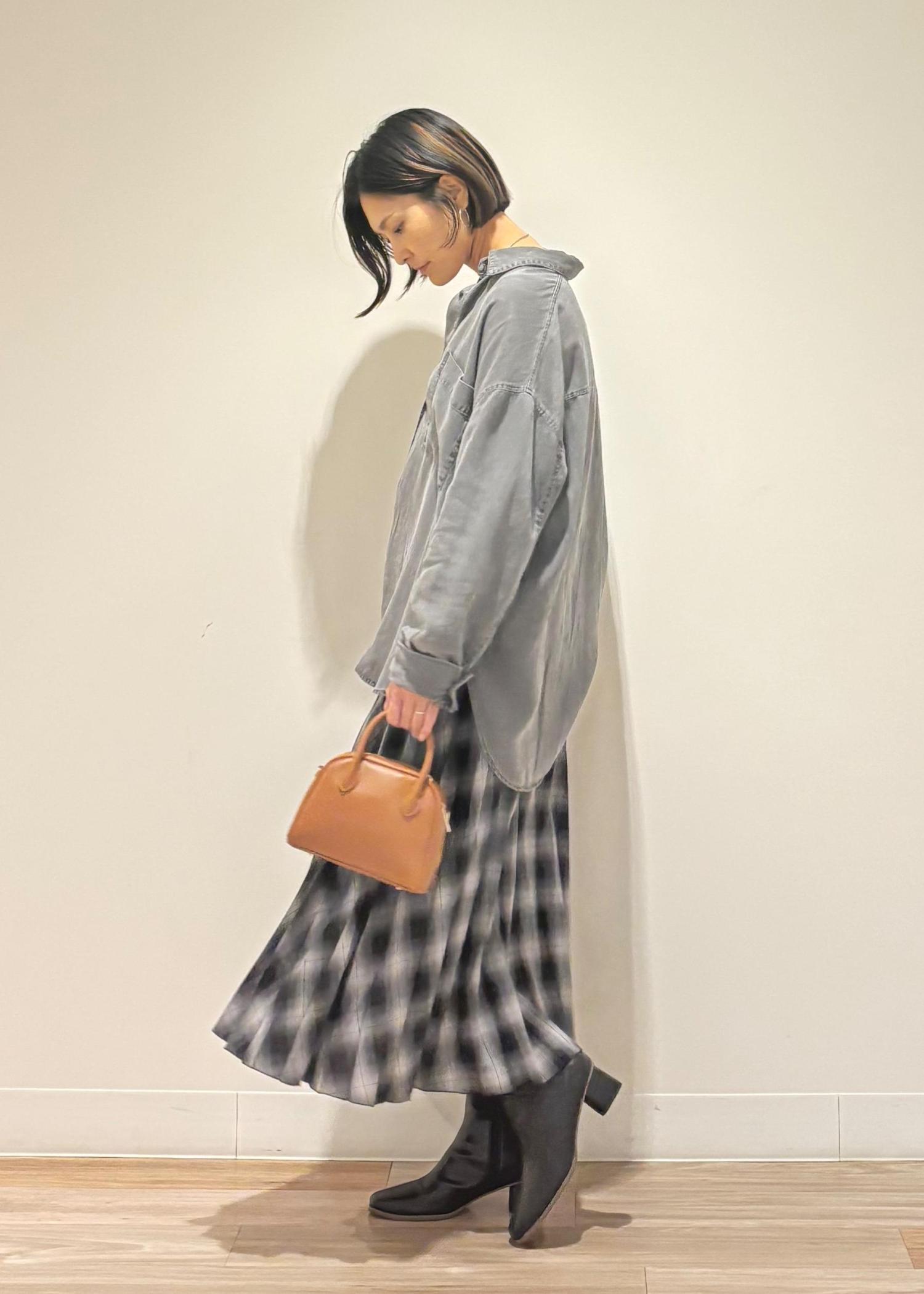 デニム調シャツにプリーツスカートを合わせて、可愛らしさをプラスしてみました⭐︎