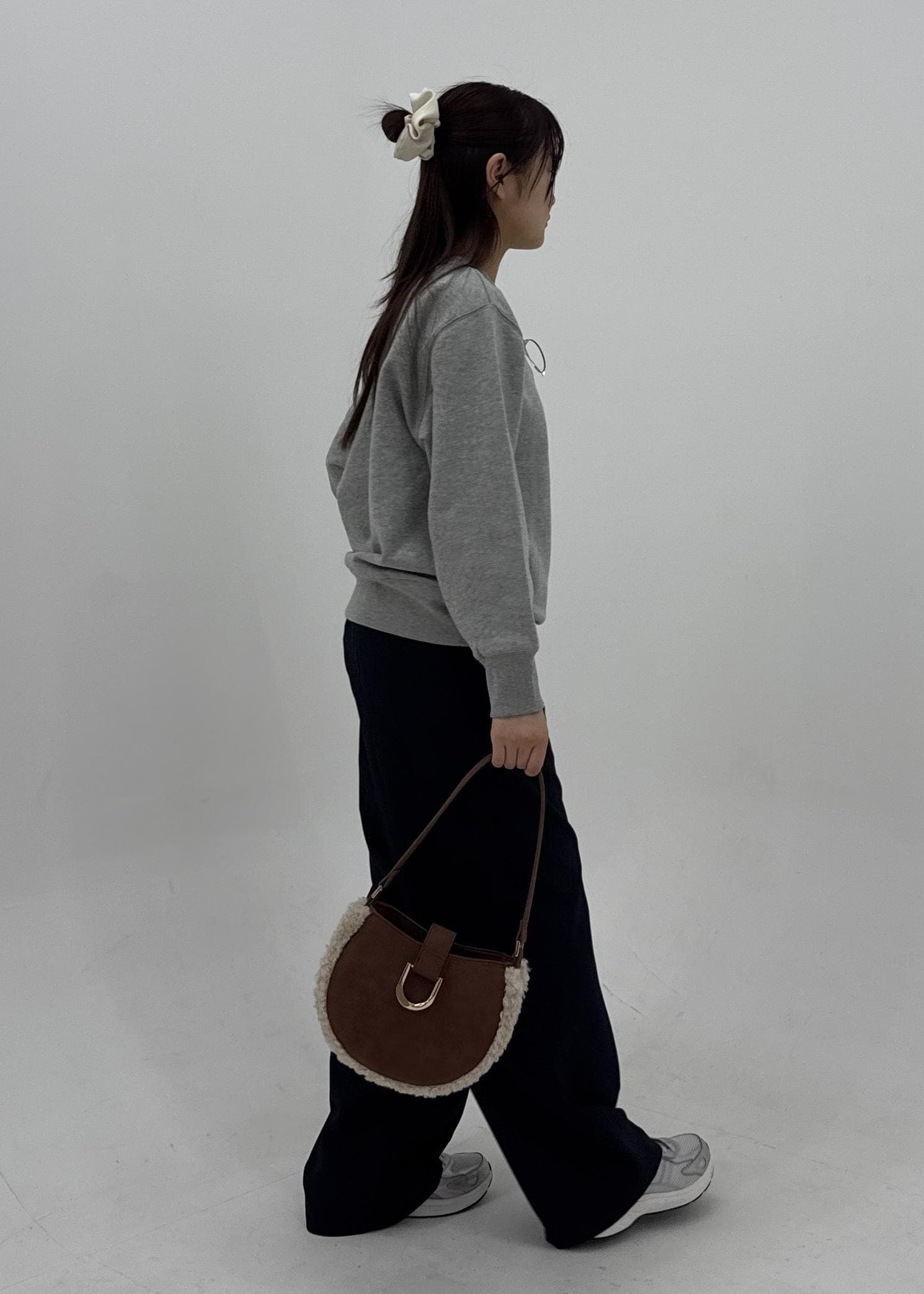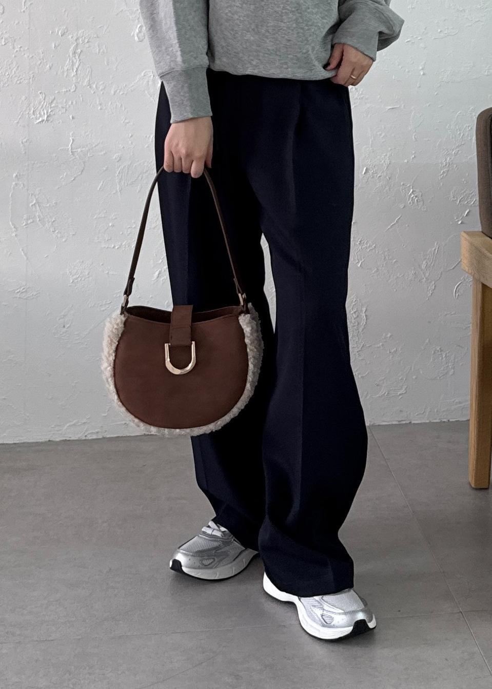 スエード調のバッグで季節感を取り入れているのがポイントです。