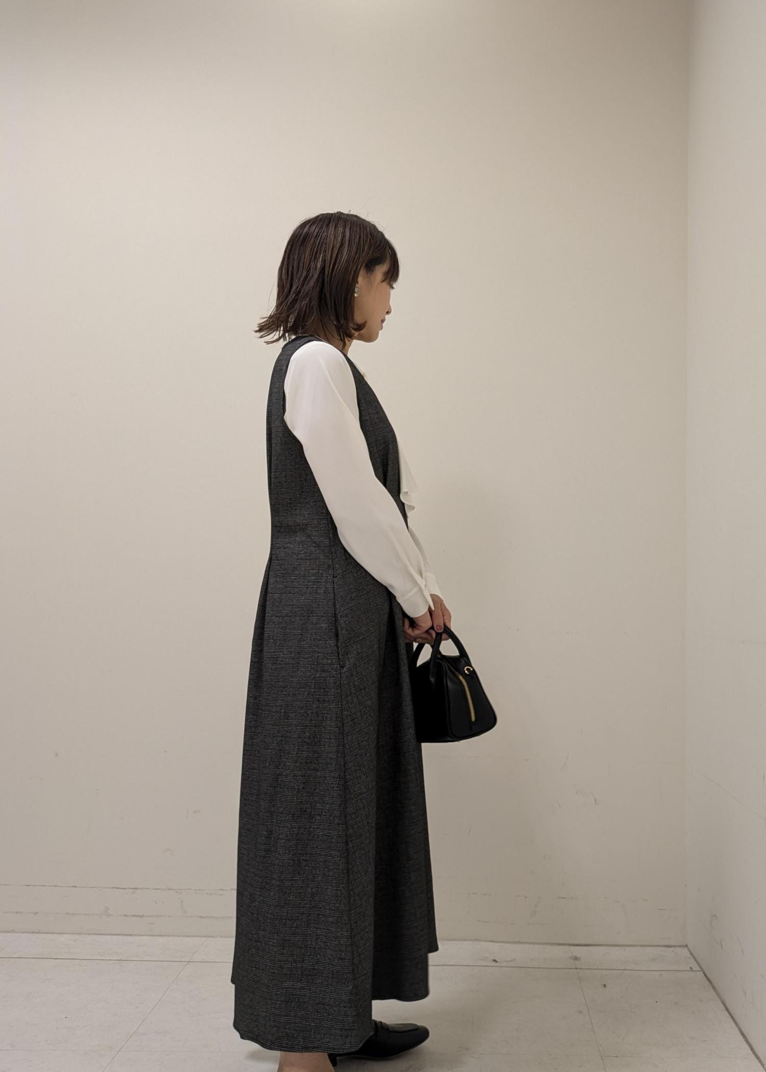 ROPÉ PICNICレディハンサムシリーズ ウールライクウエストタックジャンパースカート/セットアップ対応ライトグレー / F¥7,491レビュー生地もしっかりしており、透け感気にせず着て頂けます。身体のラインは拾いすぎずウエストが周りがスッキリと綺麗なシルエットです。