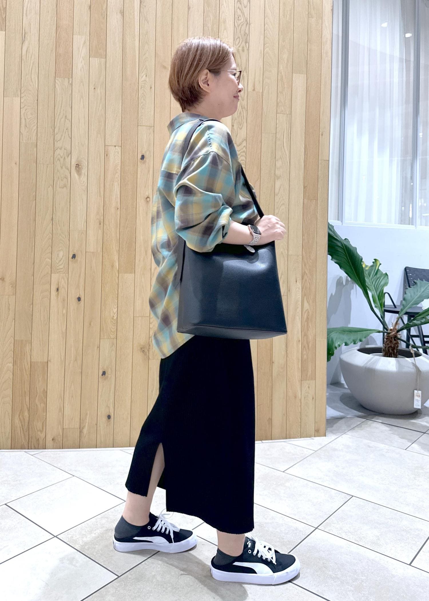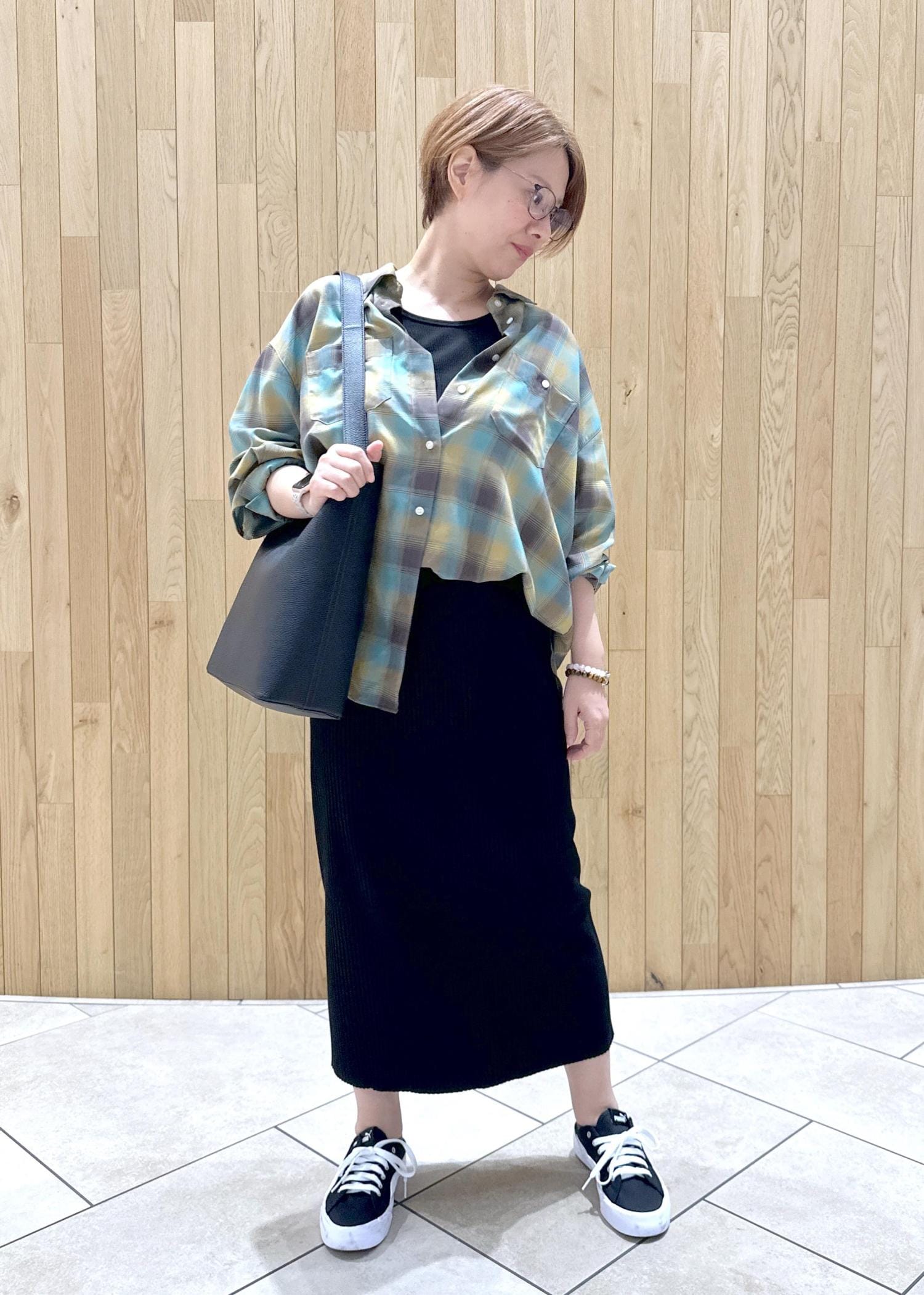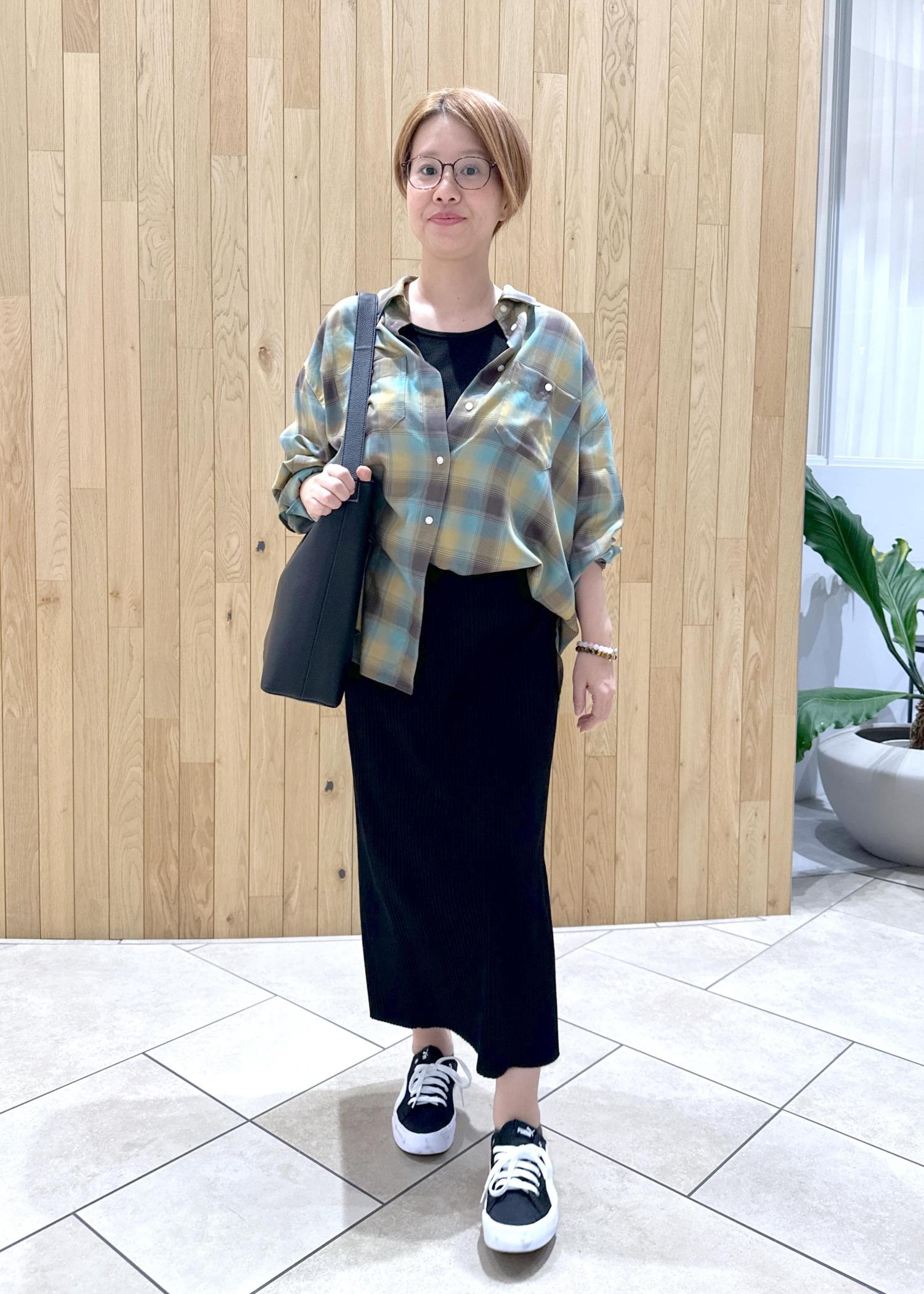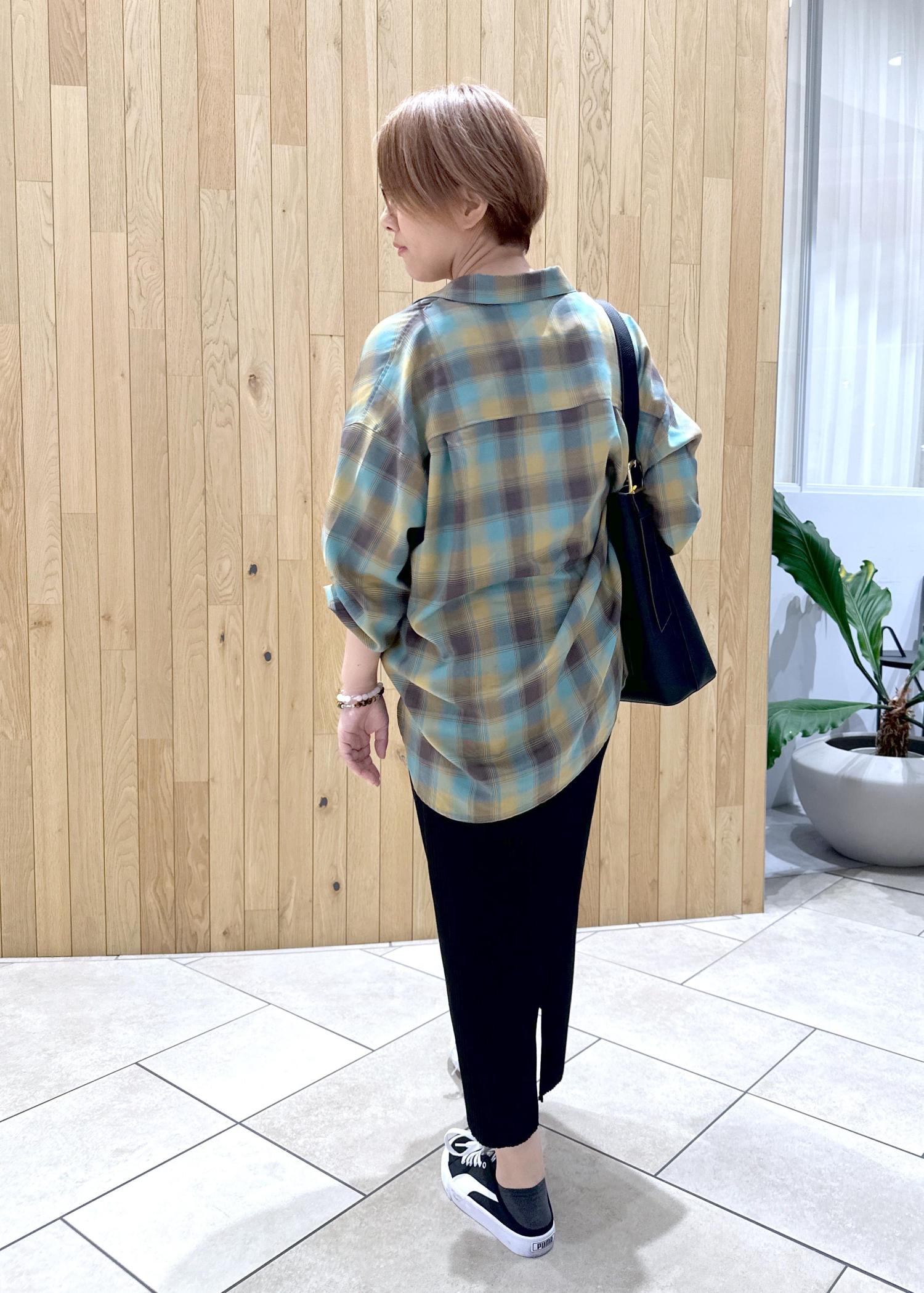まだまだ暑い日が続きますがUV機能付きのチェックシャツで秋を取り入れてみました。