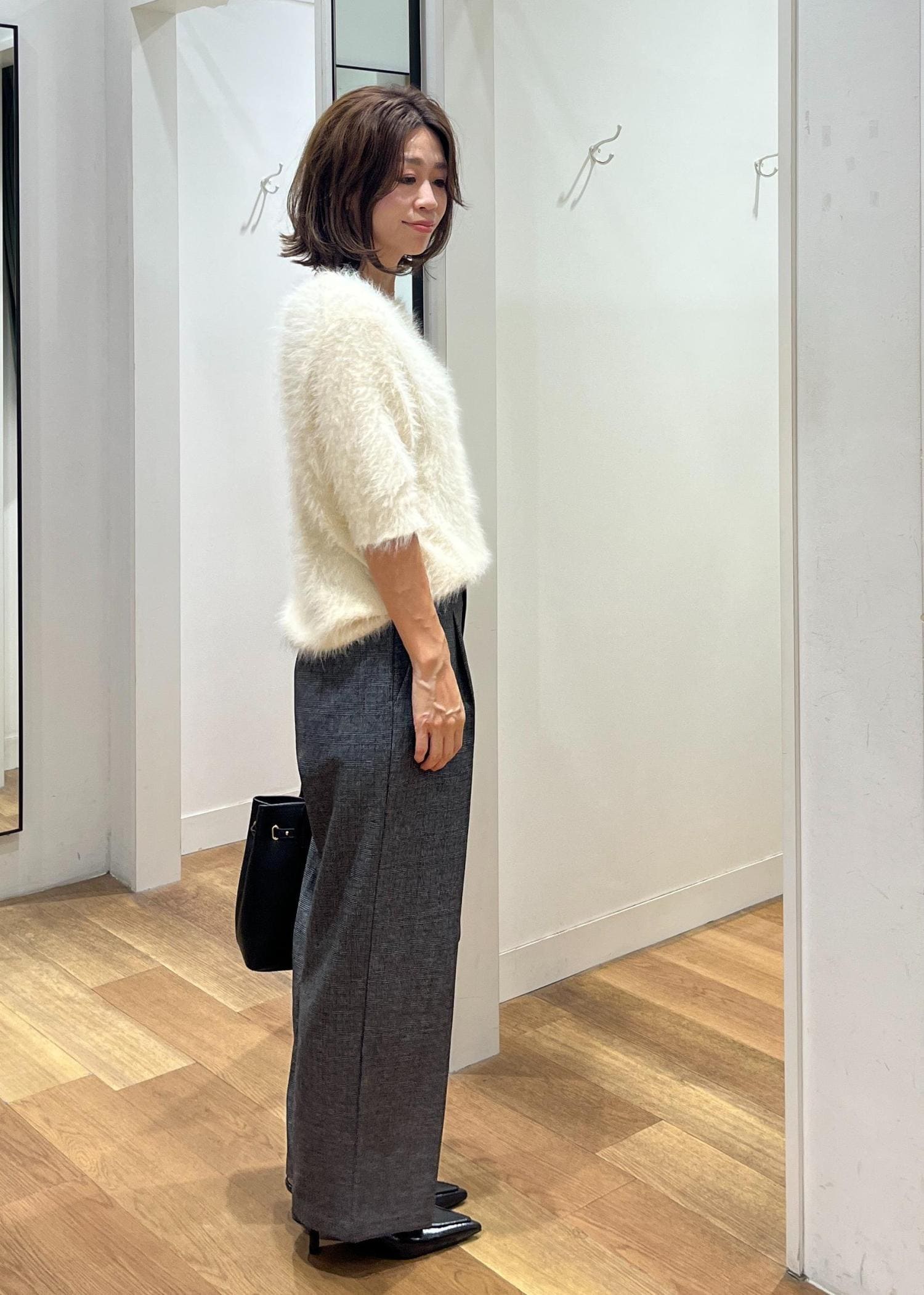 レディハンサムシリーズ ウールライクウエストタックセミワイドパンツ/セットアップ対応