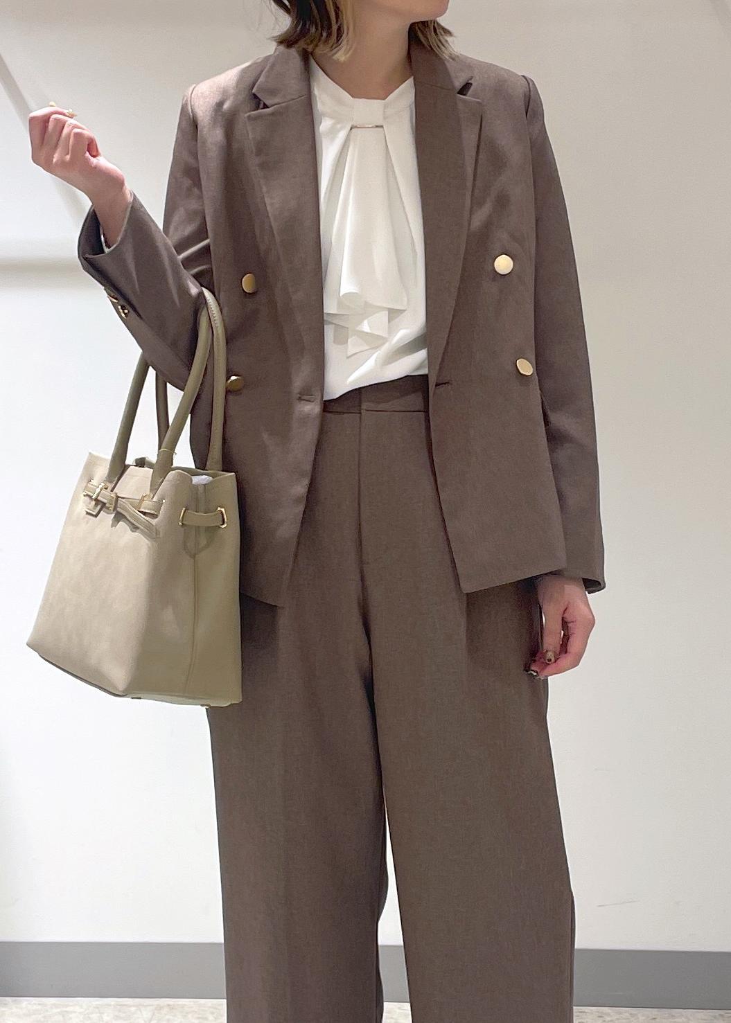 今回は、人気のレディハンサムシリーズをセットアップで着用して秋冬のお仕事スタイルにしました♩