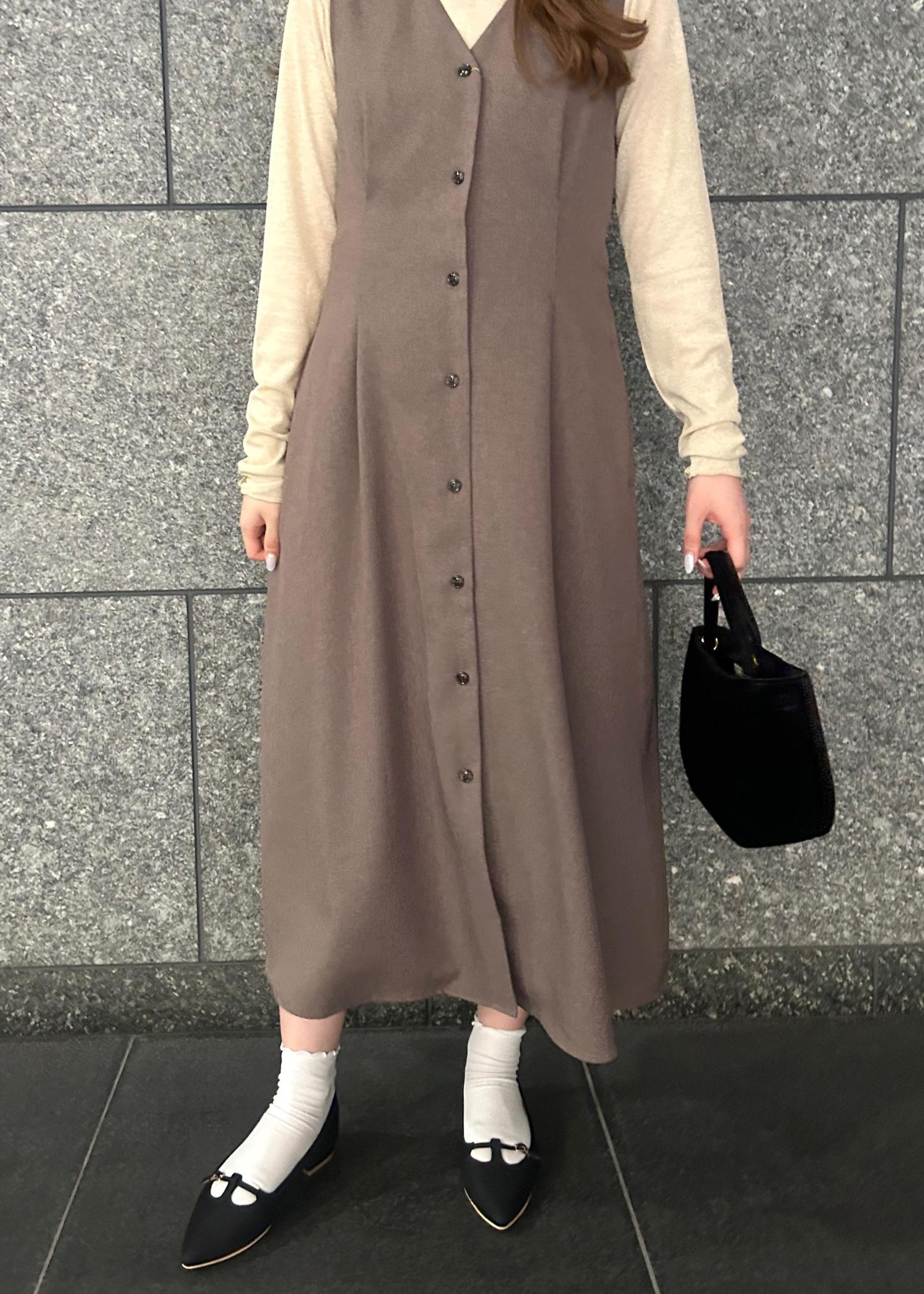 ROPÉ PICNICレディハンサムシリーズ ウールライクウエストタックジャンパースカート/セットアップ対応ベージュ系 / F¥7,491レビューAラインシルエットなので、体のラインを拾わず、気軽に着れます!