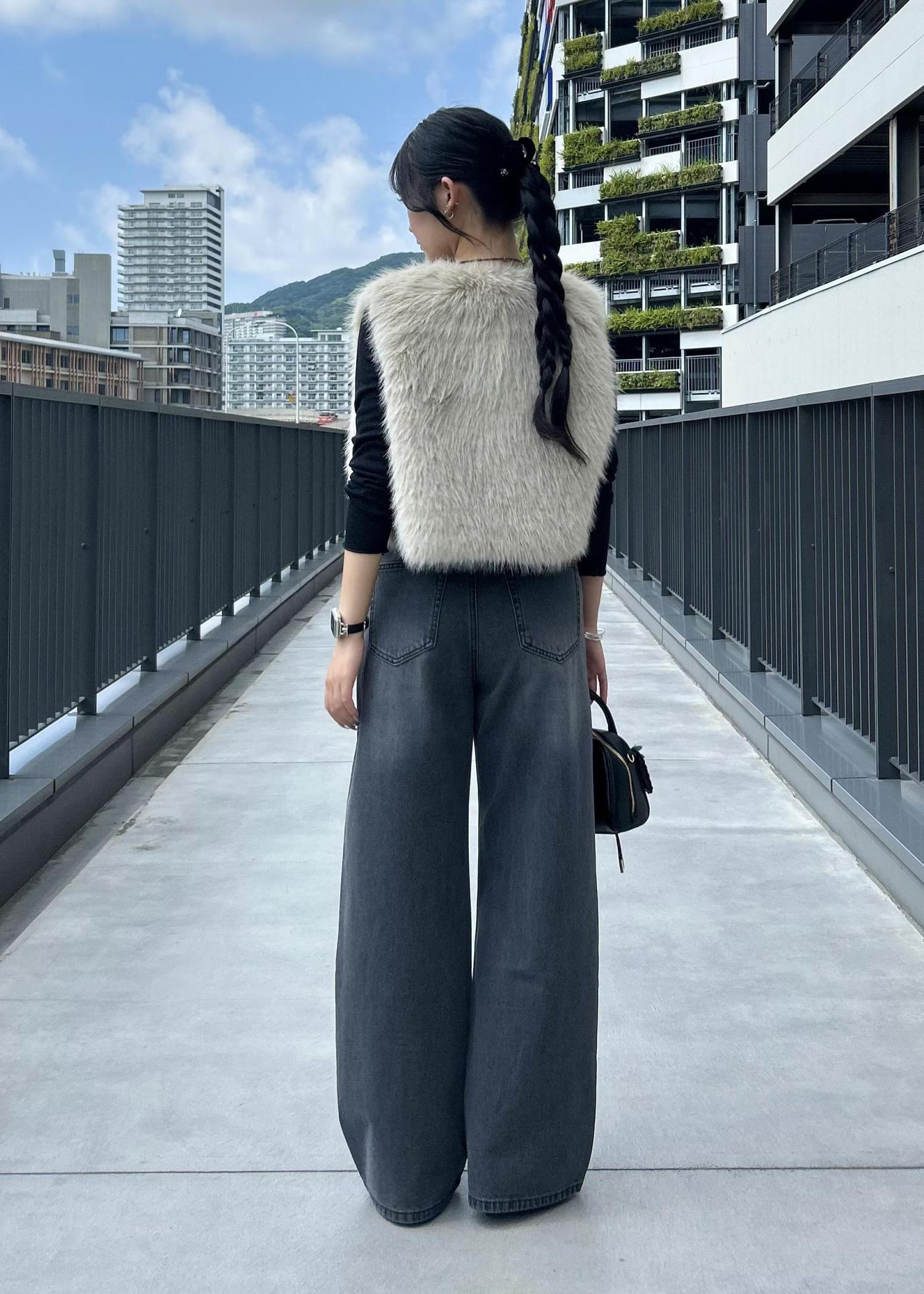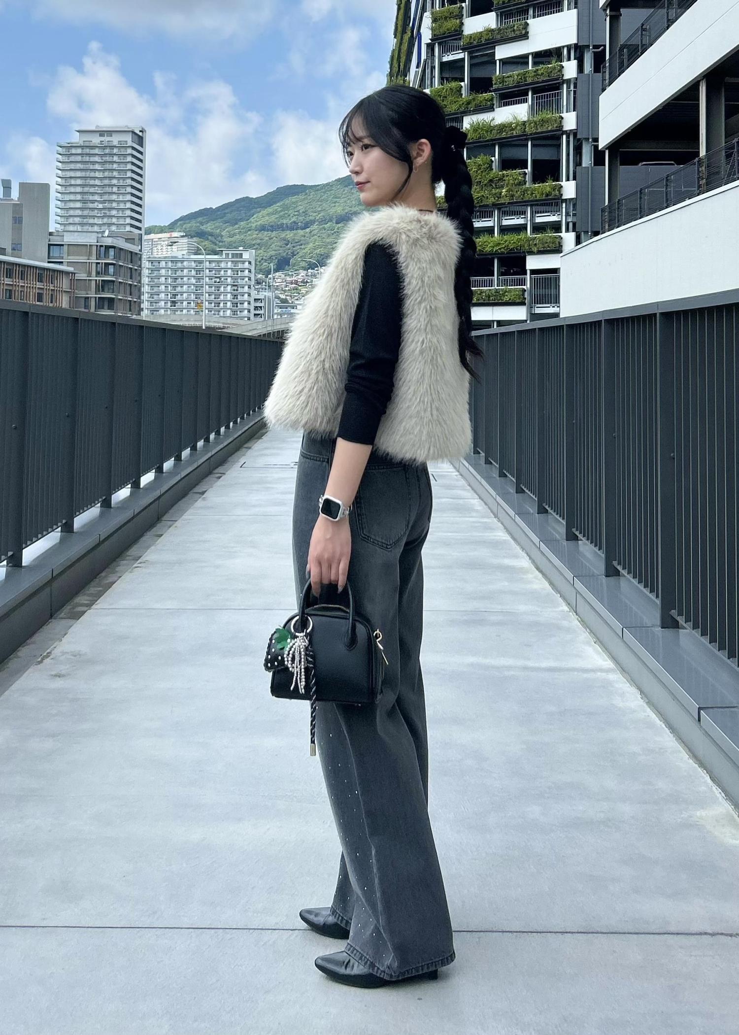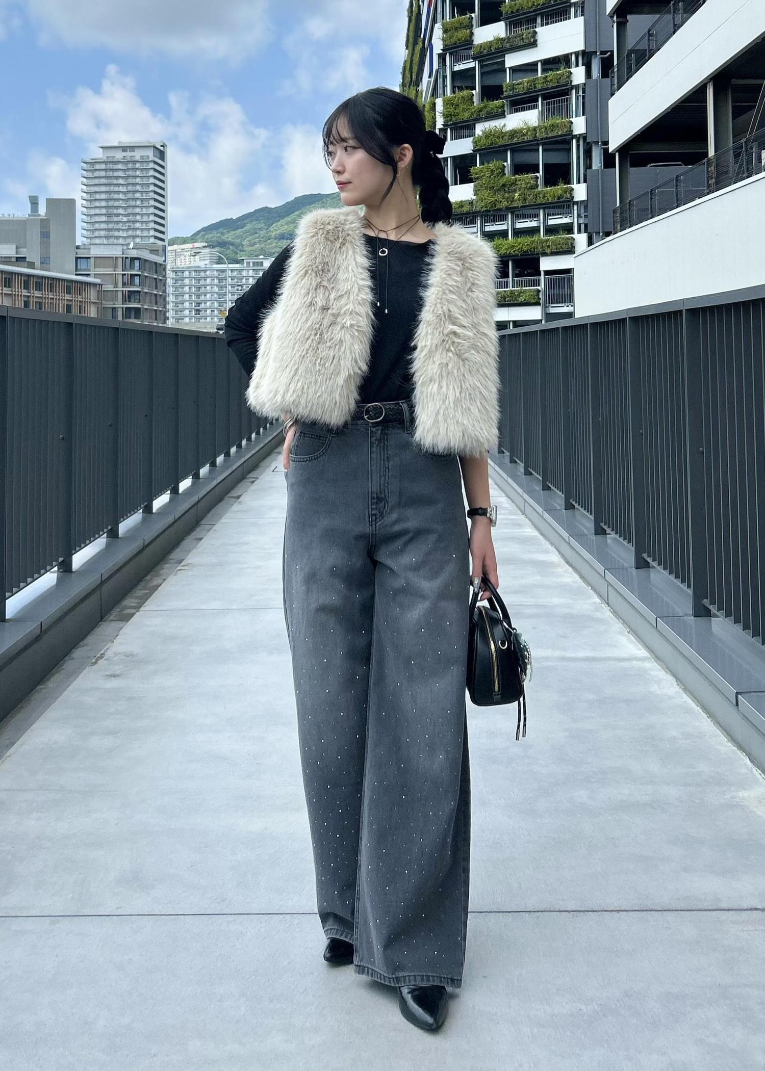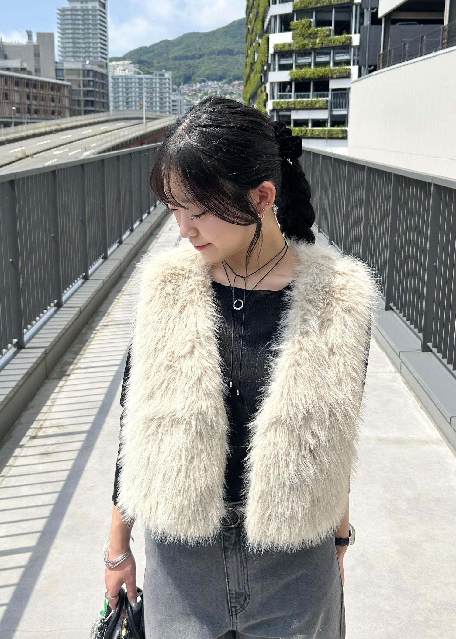 ブラックを基調にしつつ、ふわふわのファーベストをプラスしてシーズン感を出しました。