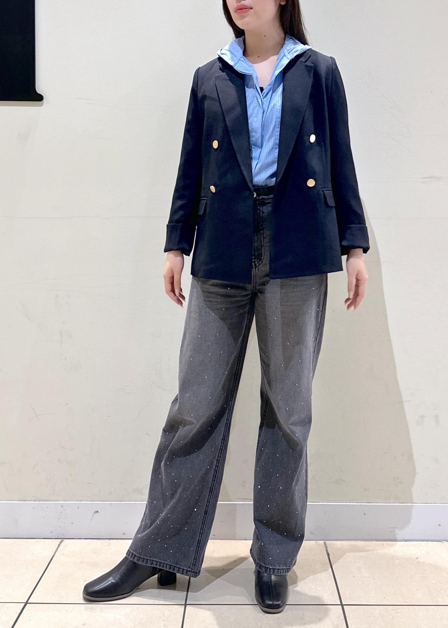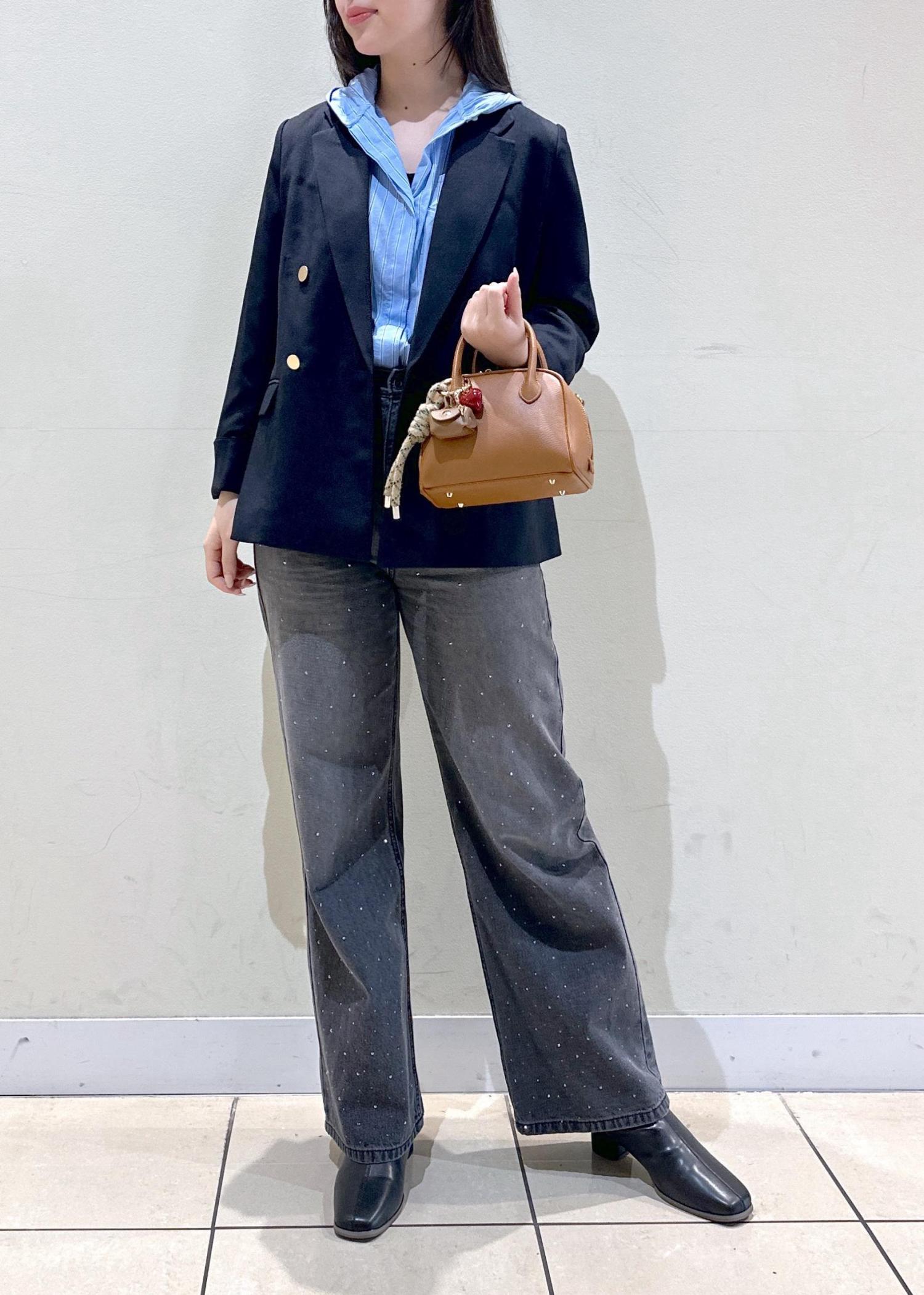 デニムパンツを主役に、落ち着いた秋カラーのジャケットを合わせてみました!シンプルな中にも、バッグのチャームがいいアクセントになって、華やかさをプラスしています。ブーツのシンプルさが全体を引き締めて、バランスよくまとめてみました⋆⁺₊⋆