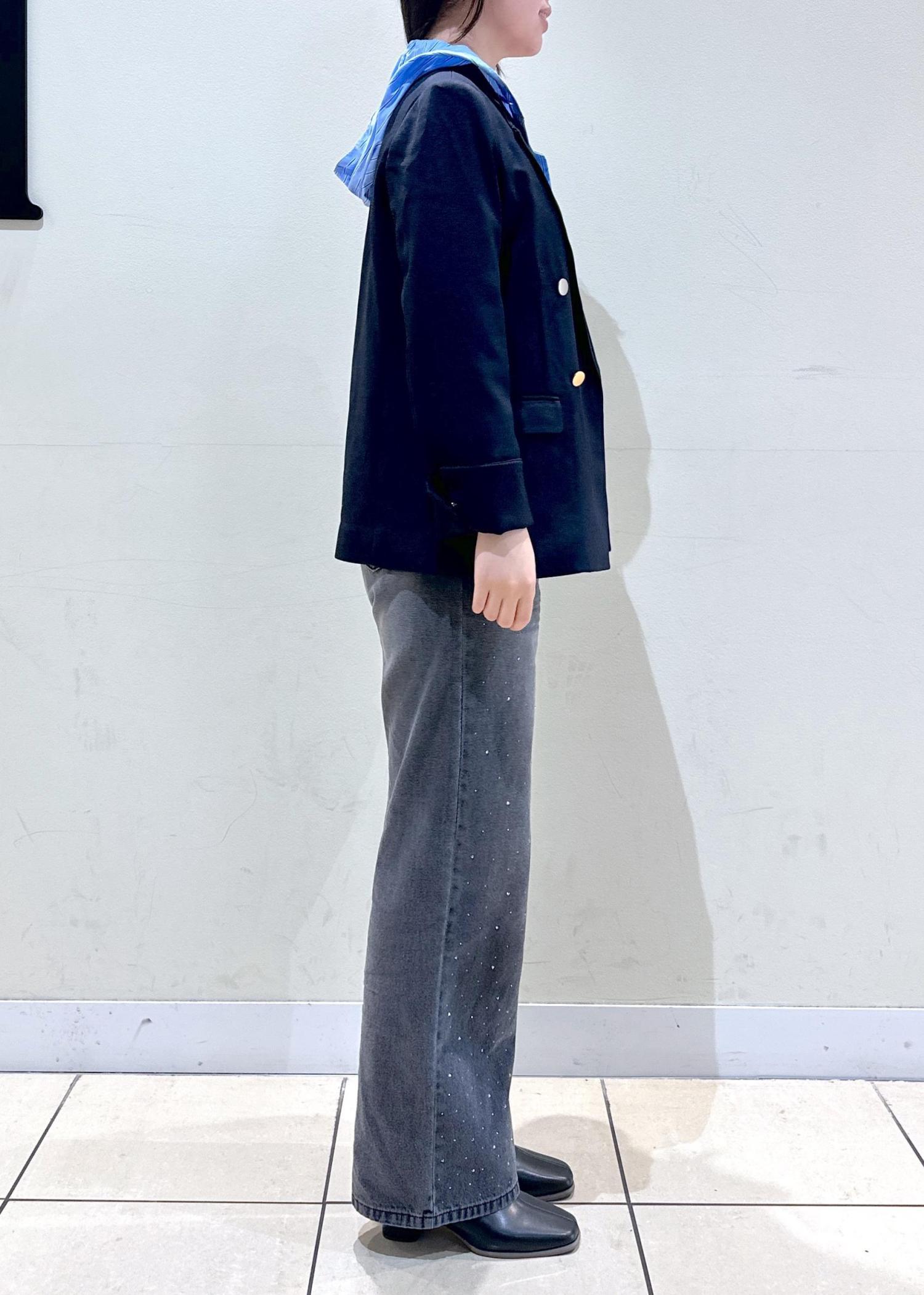 着心地:162cmで38のサイズ着用しています、ウエスト周りは余裕がありますが、丈感や足回りはばっちりです★!シルエットも目立ちにくい履きやすいデニムですが、ビジューが細かくついており、動くたびにキラキラして着用するだけでアクセントになり、気分もあがります◡̈ -