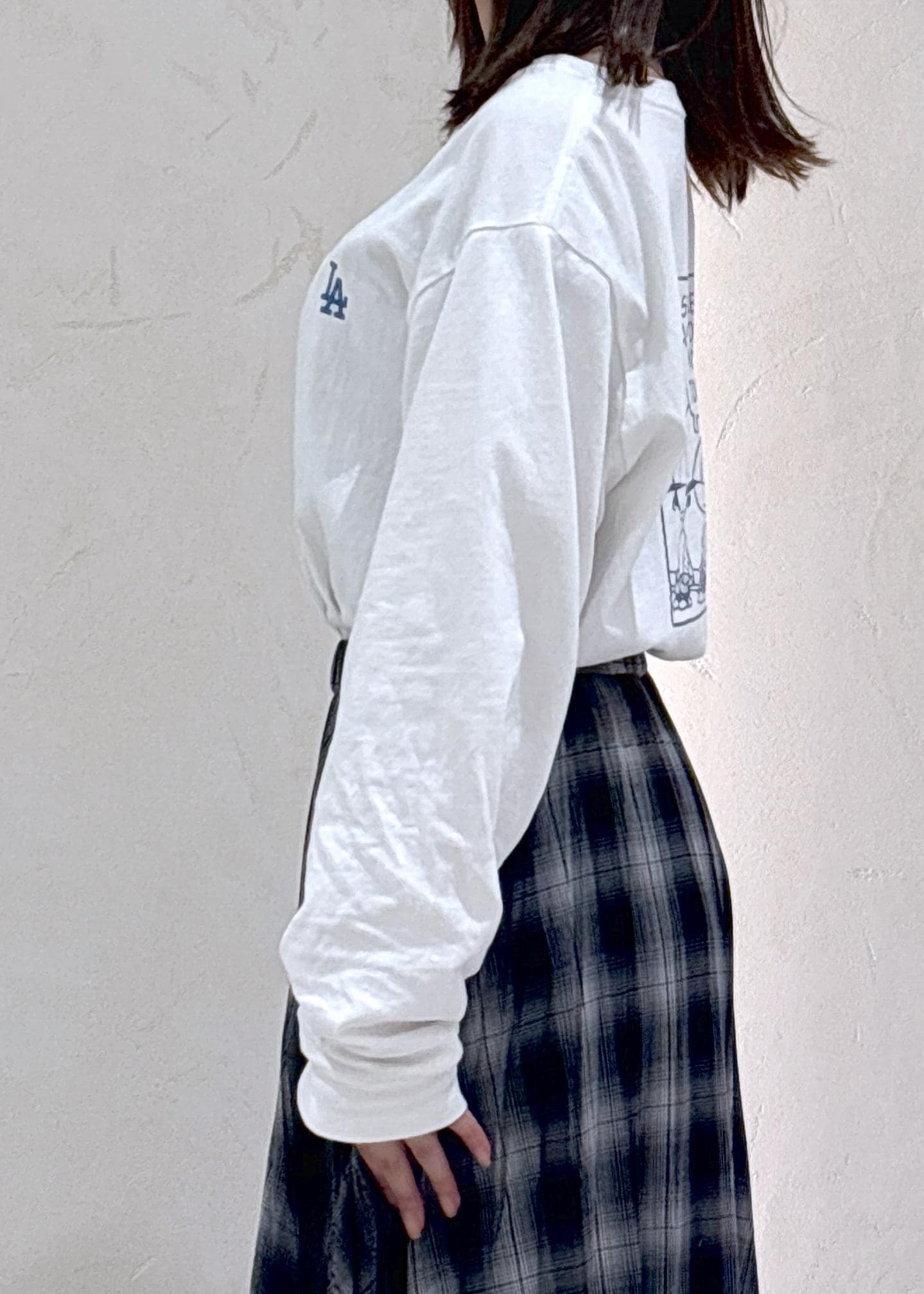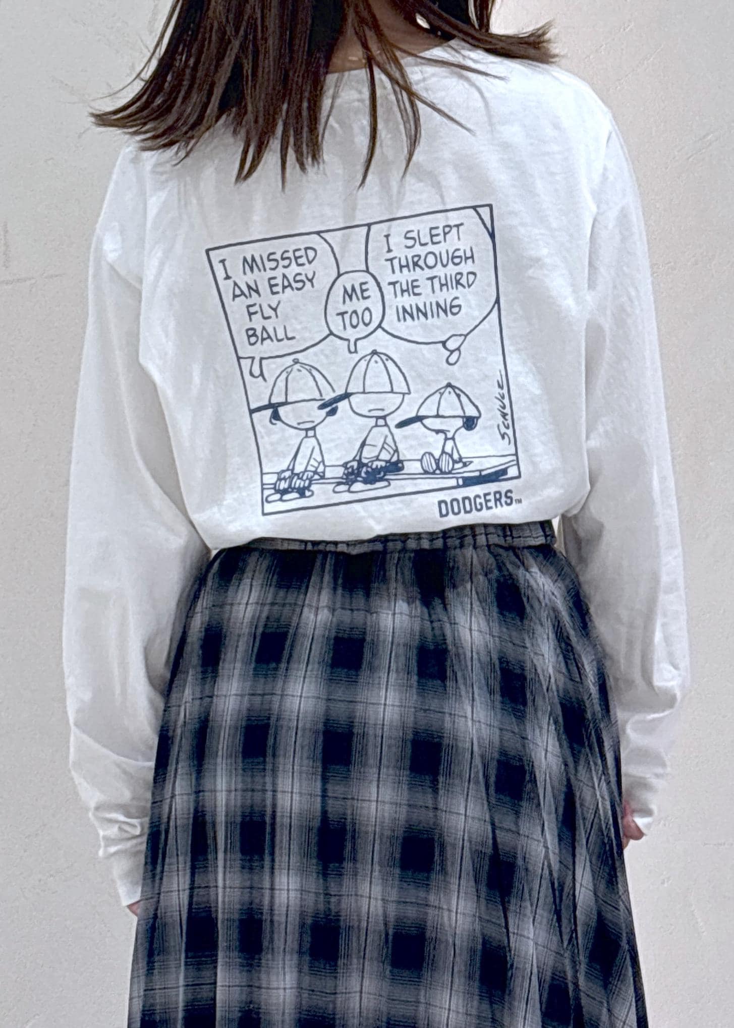 ROPÉ PICNIC【PEANUTS×MLB COLLECTION by ROPE' PICNIC】ロングスリーブTeeホワイト / F¥3,993レビュー154cm着用で、袖丈は手の甲まで隠れて、着丈はおしりが隠れるくらいです!