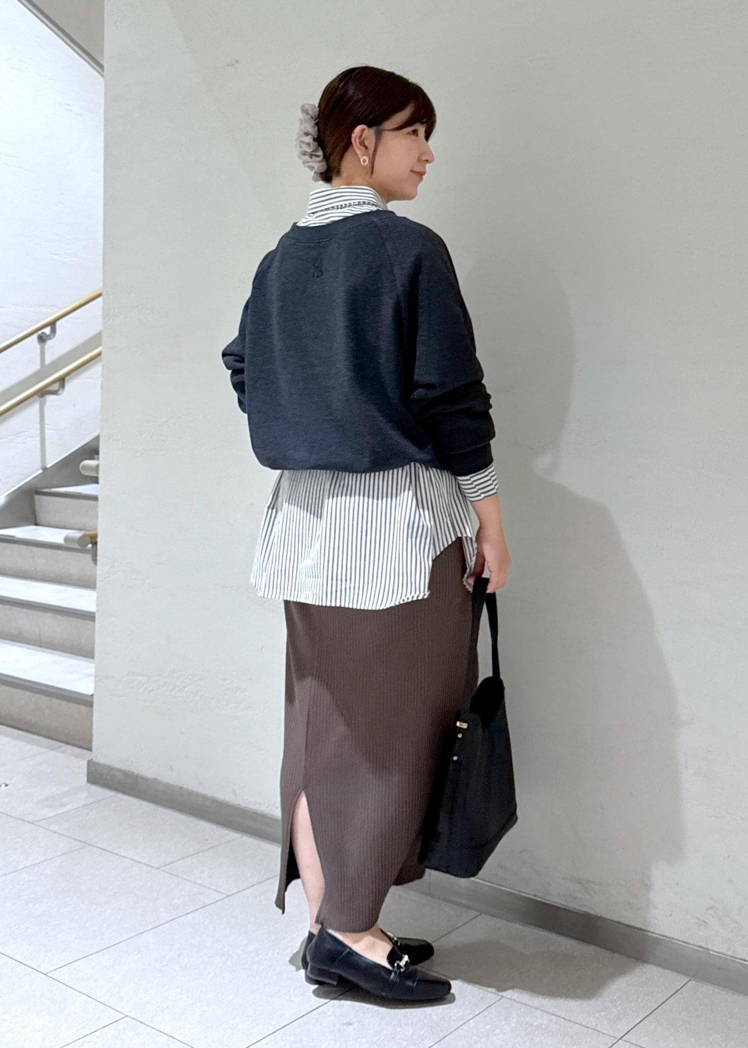 裾のリブのおかげでメリハリが作れるので、着るだけで着痩せが叶います。