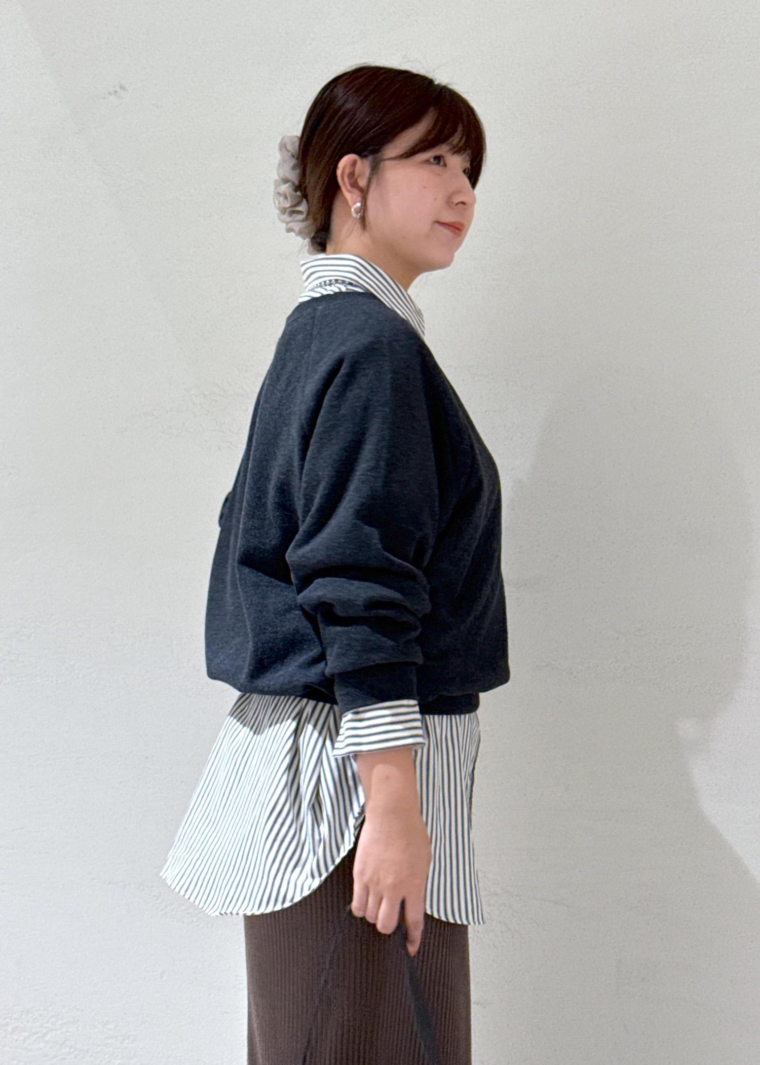 羽織スタイルやボタンを外して抜け感を出したりニットやスウェットとのレイヤードもオススメです。