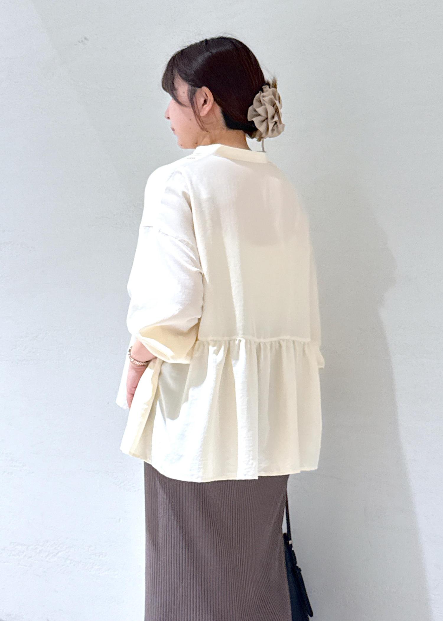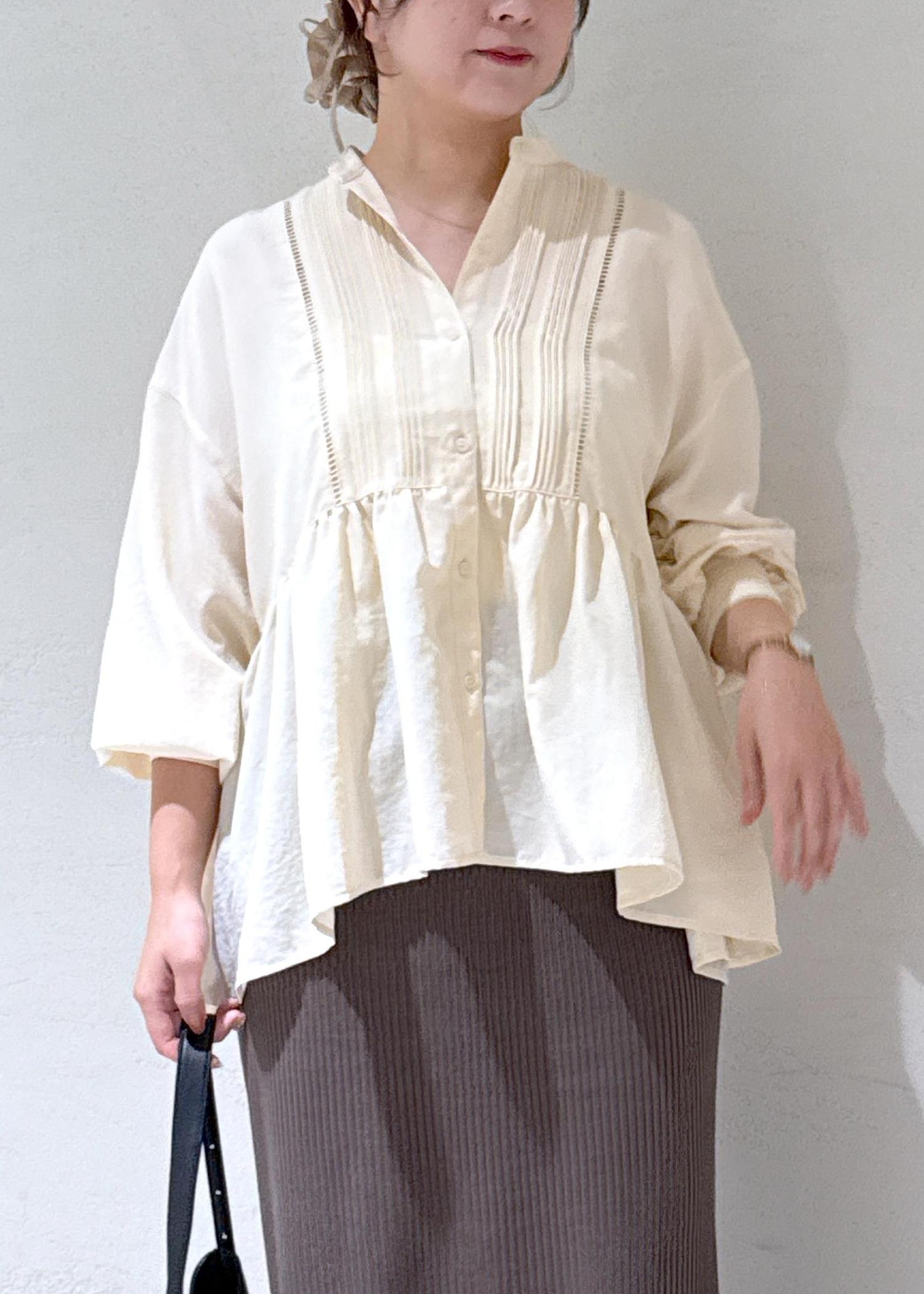 ROPÉ PICNIC【UVケア・防シワ】羽織れるピンタックデザインペプラムシャツクリーム / M¥3,993レビューピンタックデザインが顔周りを華やかに、また縦のラインでスッキリ見せてくれます。