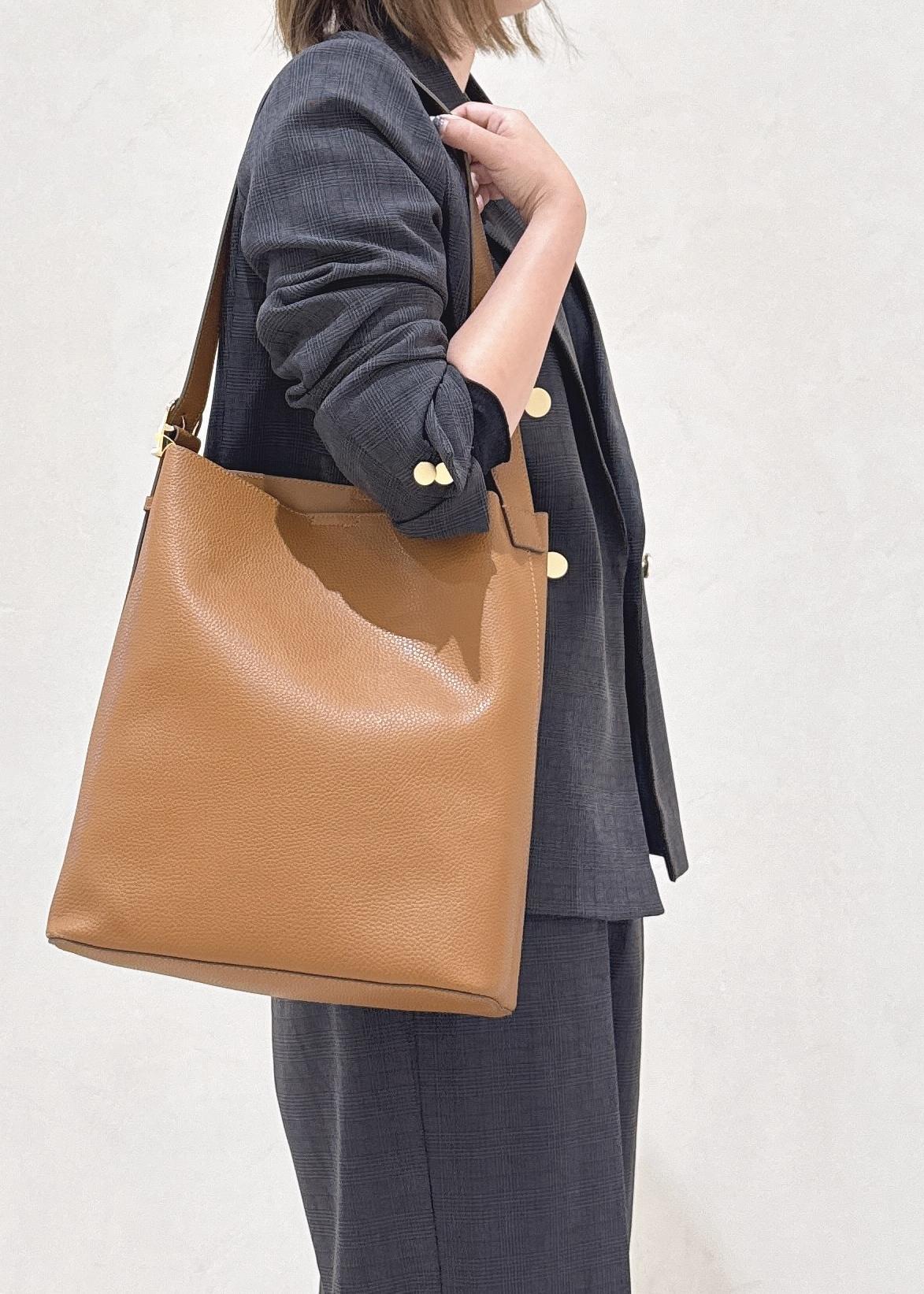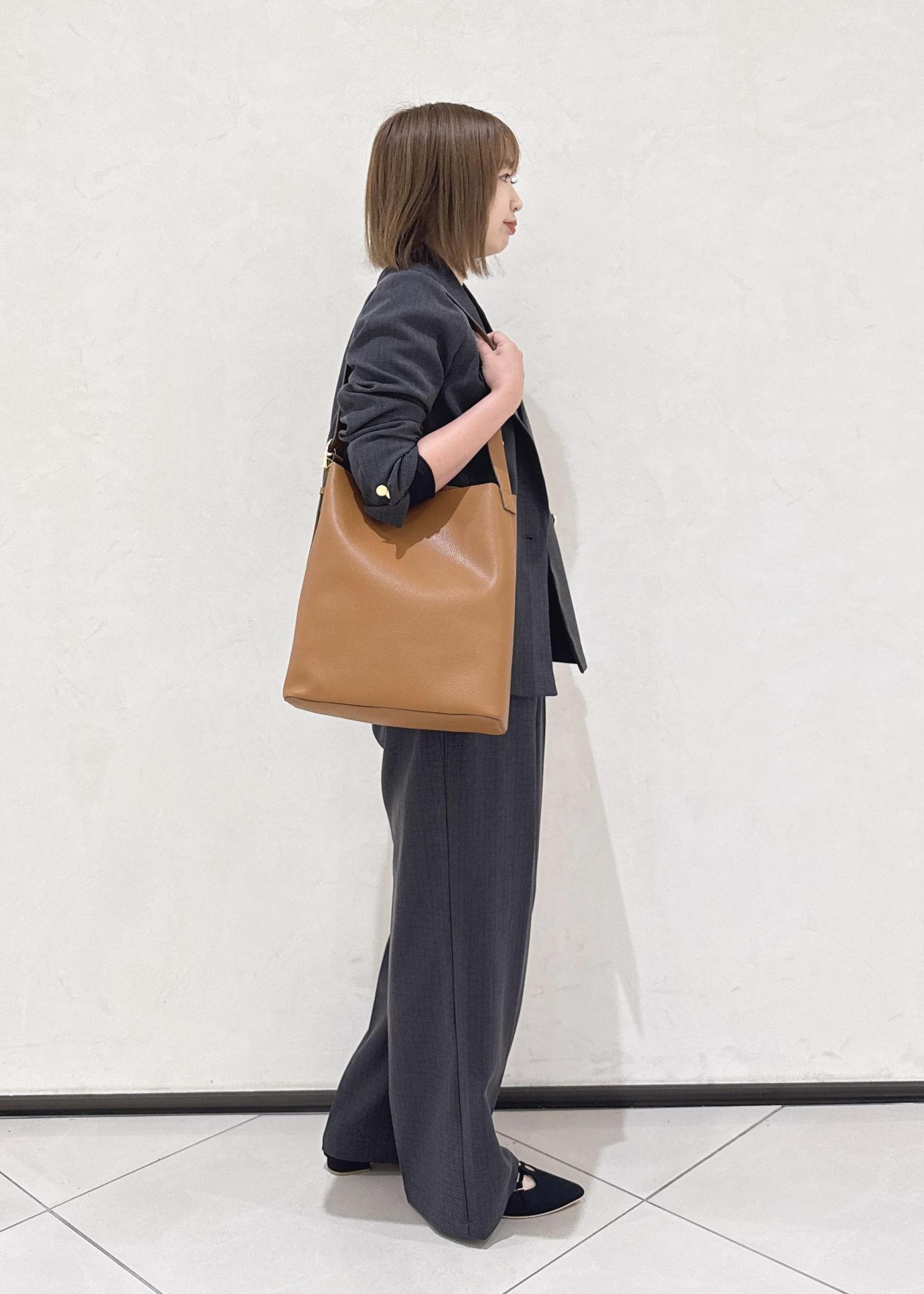 A4サイズが入る大きさなので通勤にも使いやすいです。ショルダーが長めにので肩に掛けやすくボリューム感がないので身体にフィットして持ちやすいです。