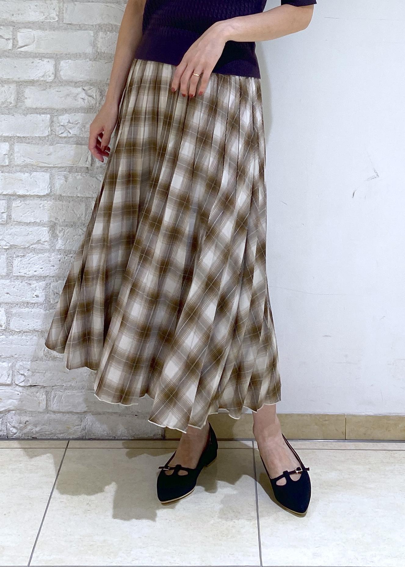 細めのプリーツなので広がり感を抑えて履くことができました。