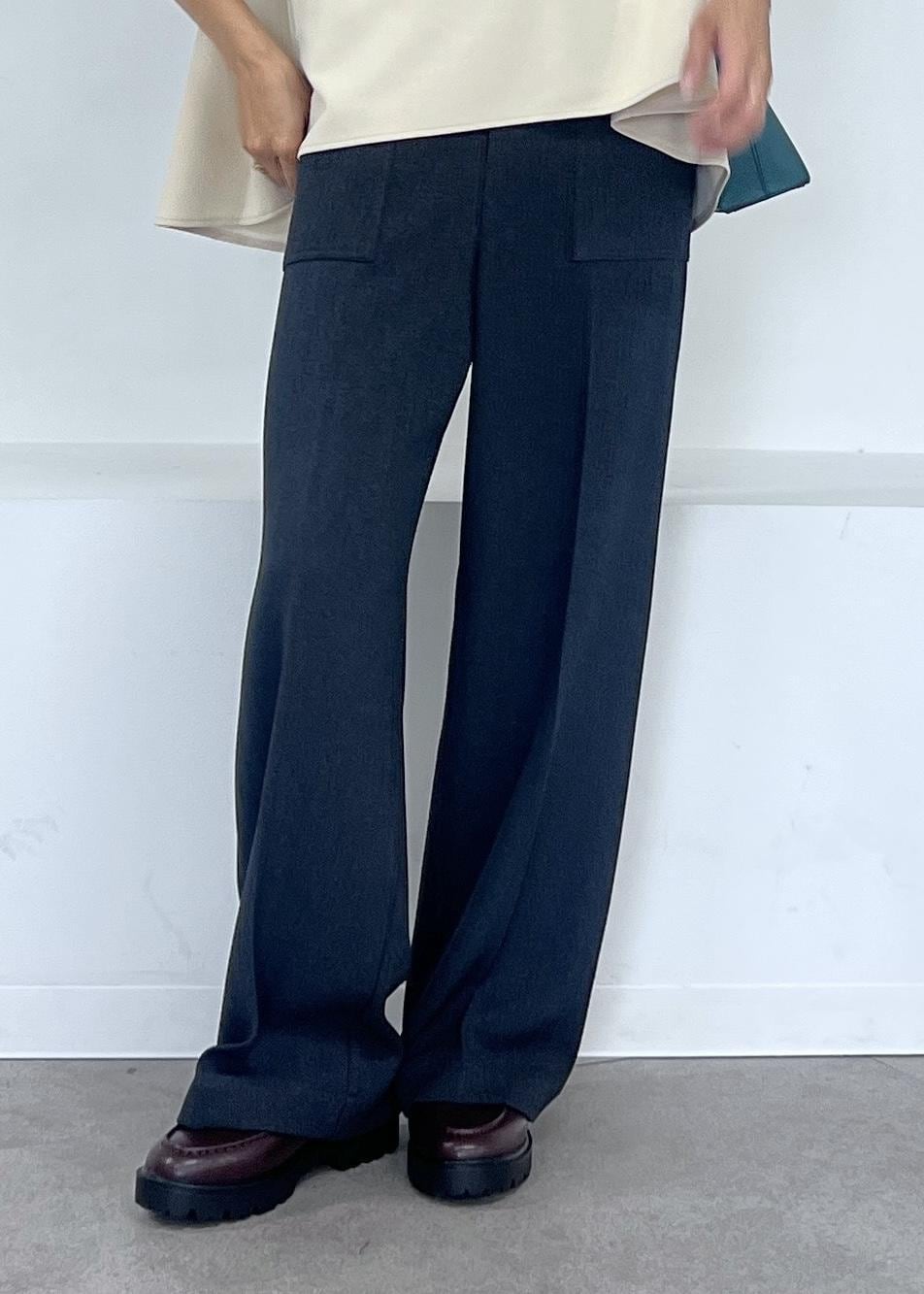 脚のラインを拾わずスッキリ感のあるワイドシルエットですが、センタープレス入りでオンオフ両方で履けるデザイン。