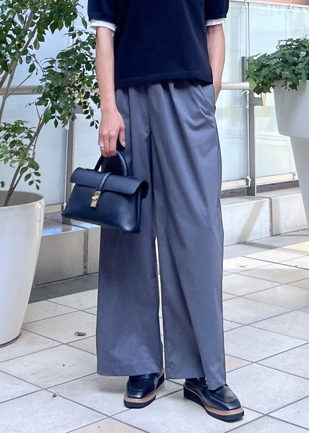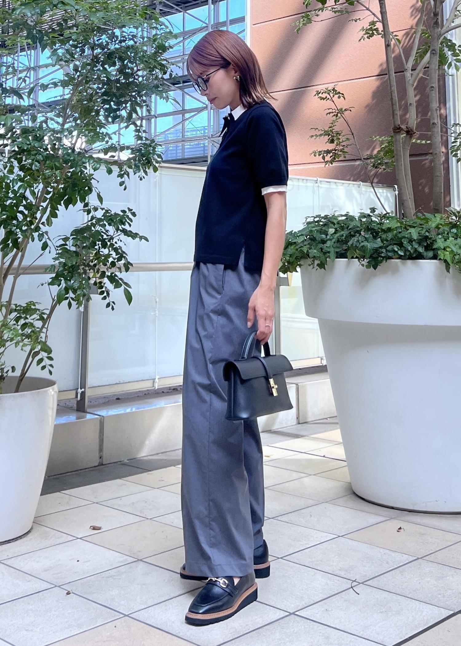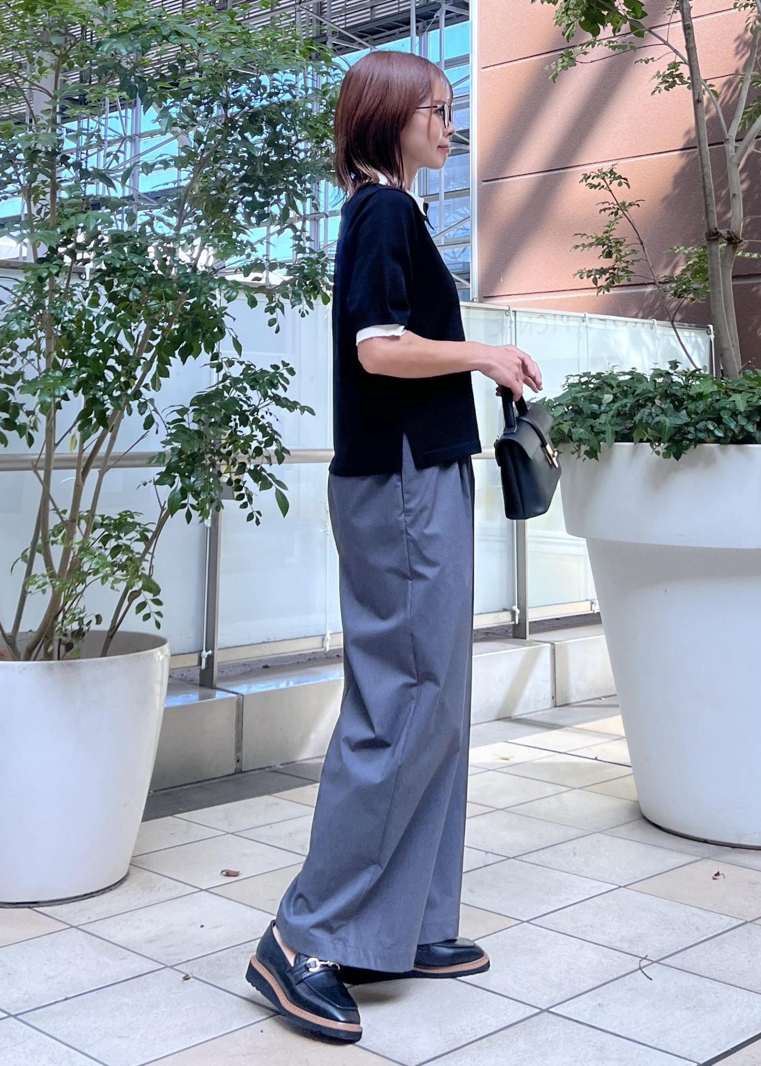ワイドパンツでリラックス感のあるコーデですが、小物はかっちり感のあるものでまとめれば綺麗めカジュアルなスタイリングに◎。
