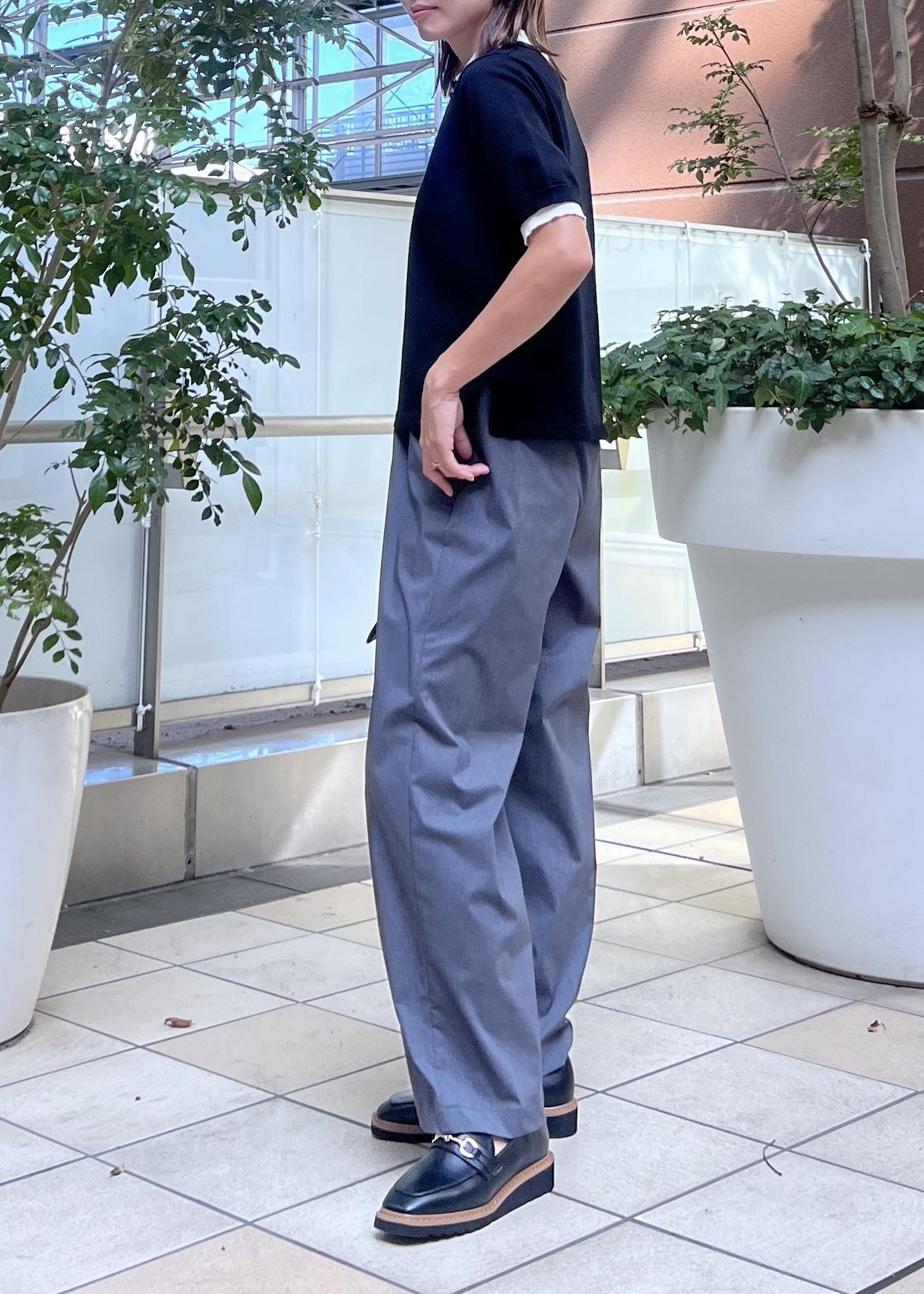 ウエスト総ゴムで締め付け感なく着やすいサイズ感。
