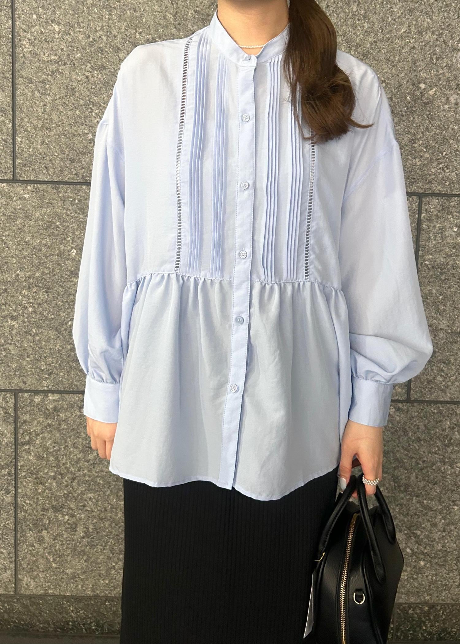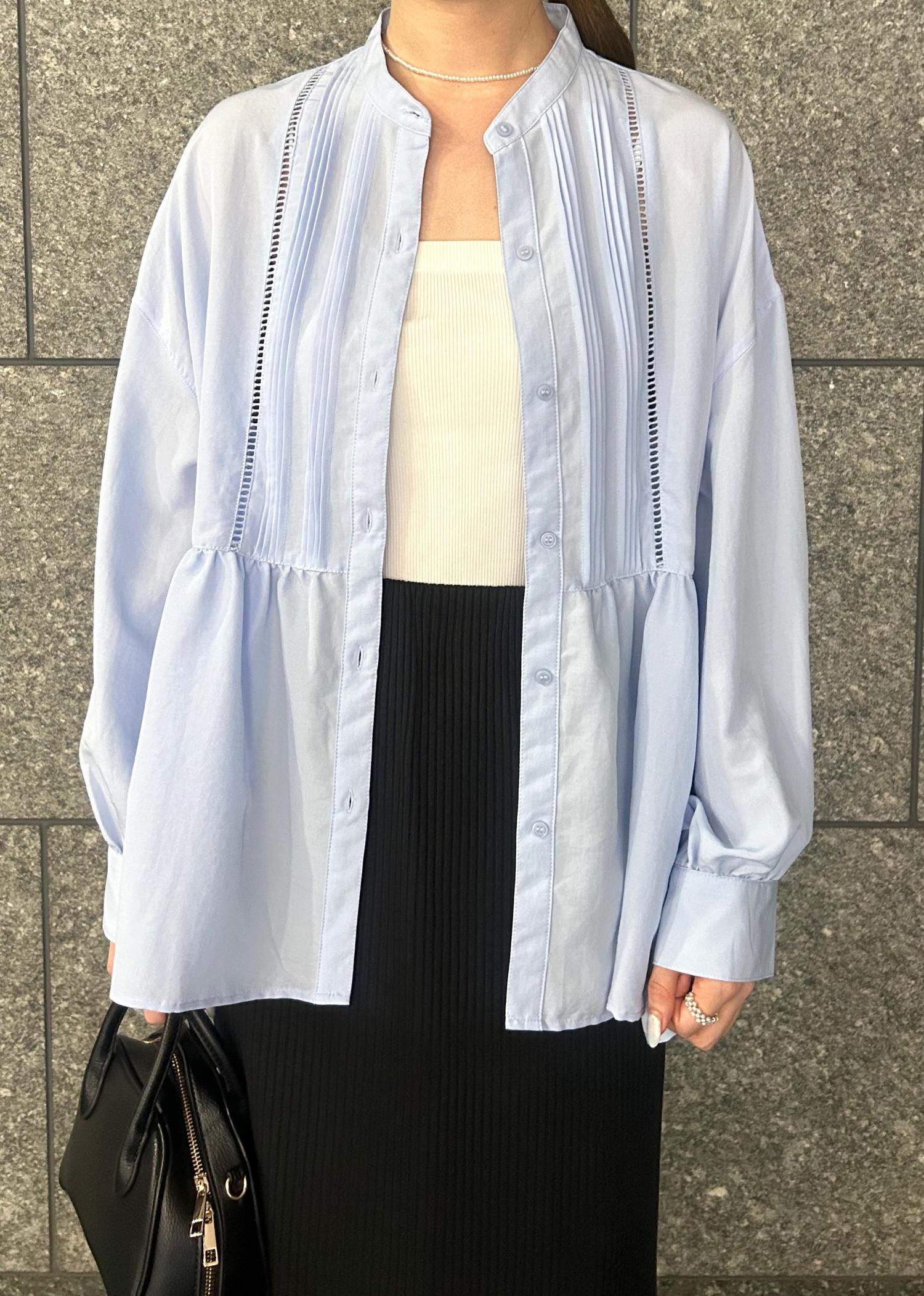 【UVケア・防シワ】羽織れるピンタックデザインペプラムシャツ